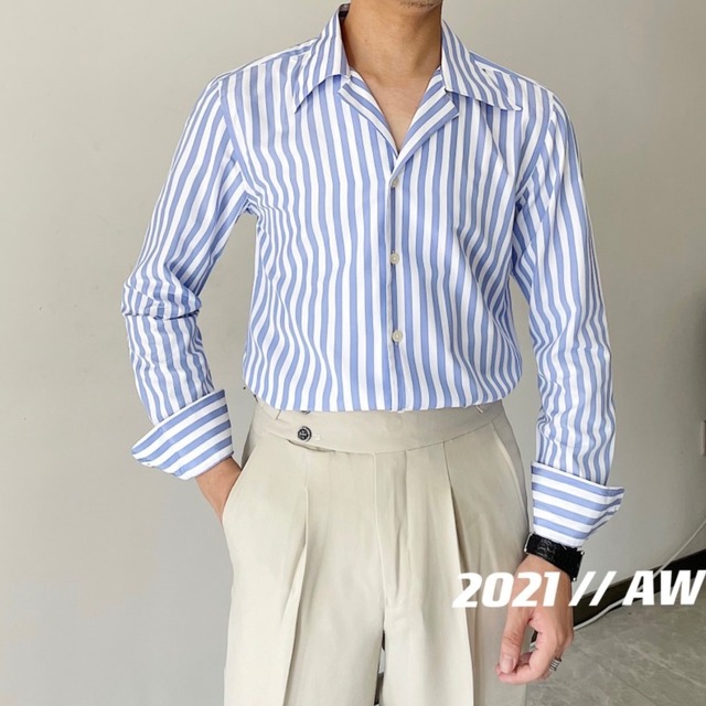 <春夏新作>キューバカラーストライプシャツ 3色展開