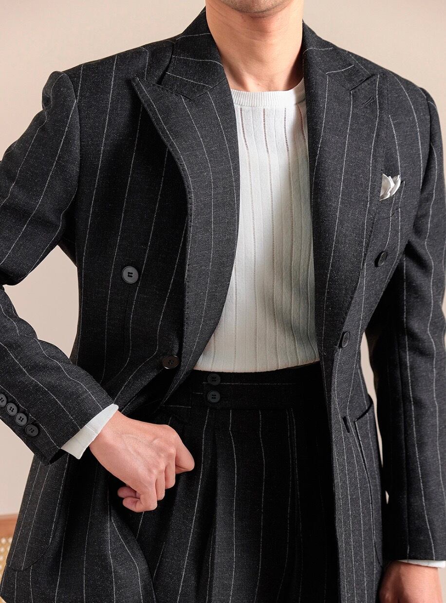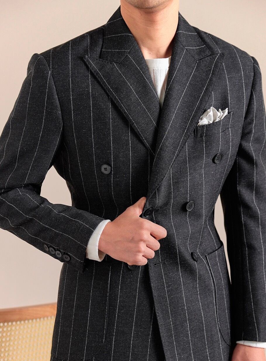 【通常定価37800円】ボールドピッチグレーストライプダブルブレストスーツ