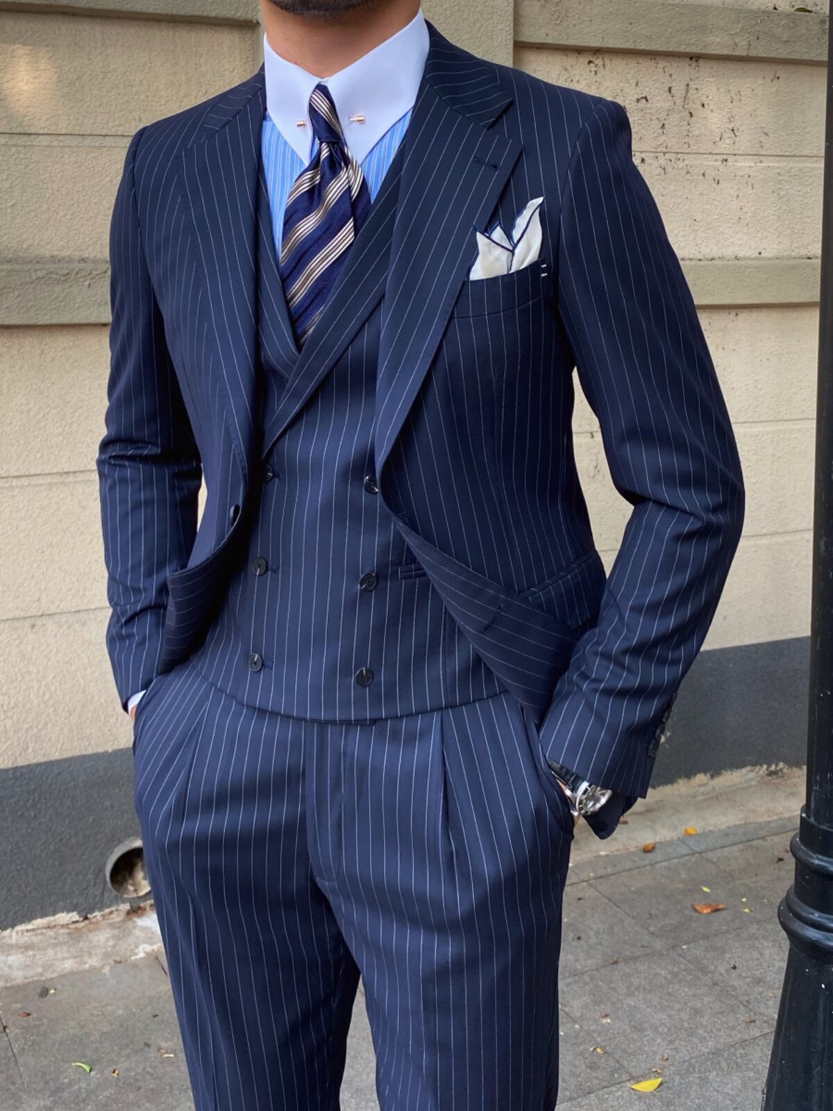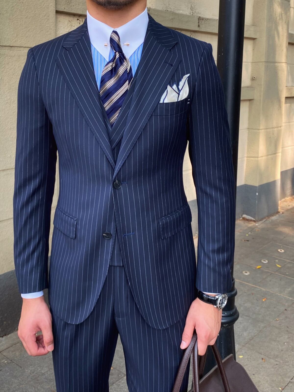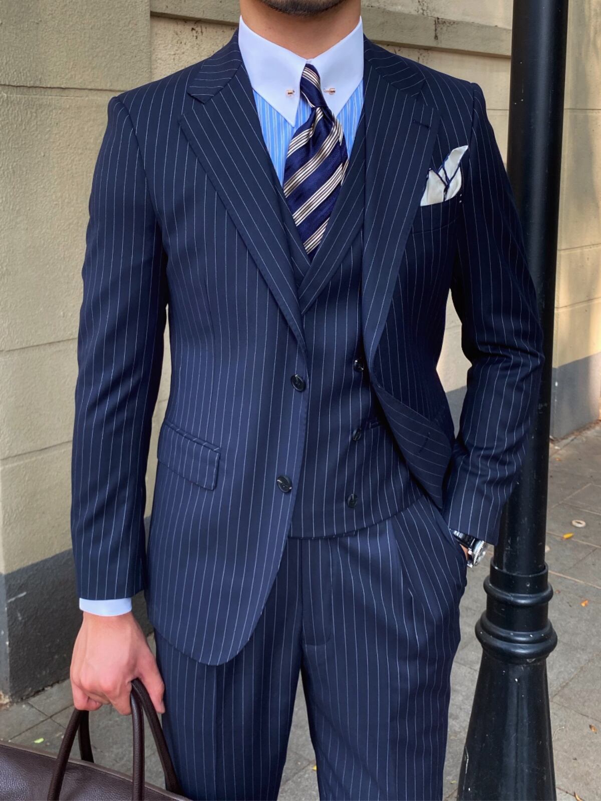 【通常定価37800円】イタリアンスタイルストライプ3Pスーツ