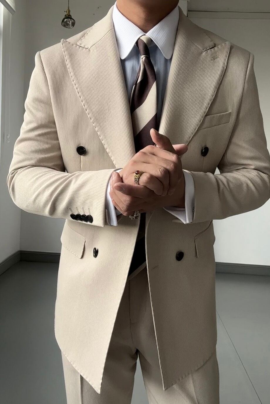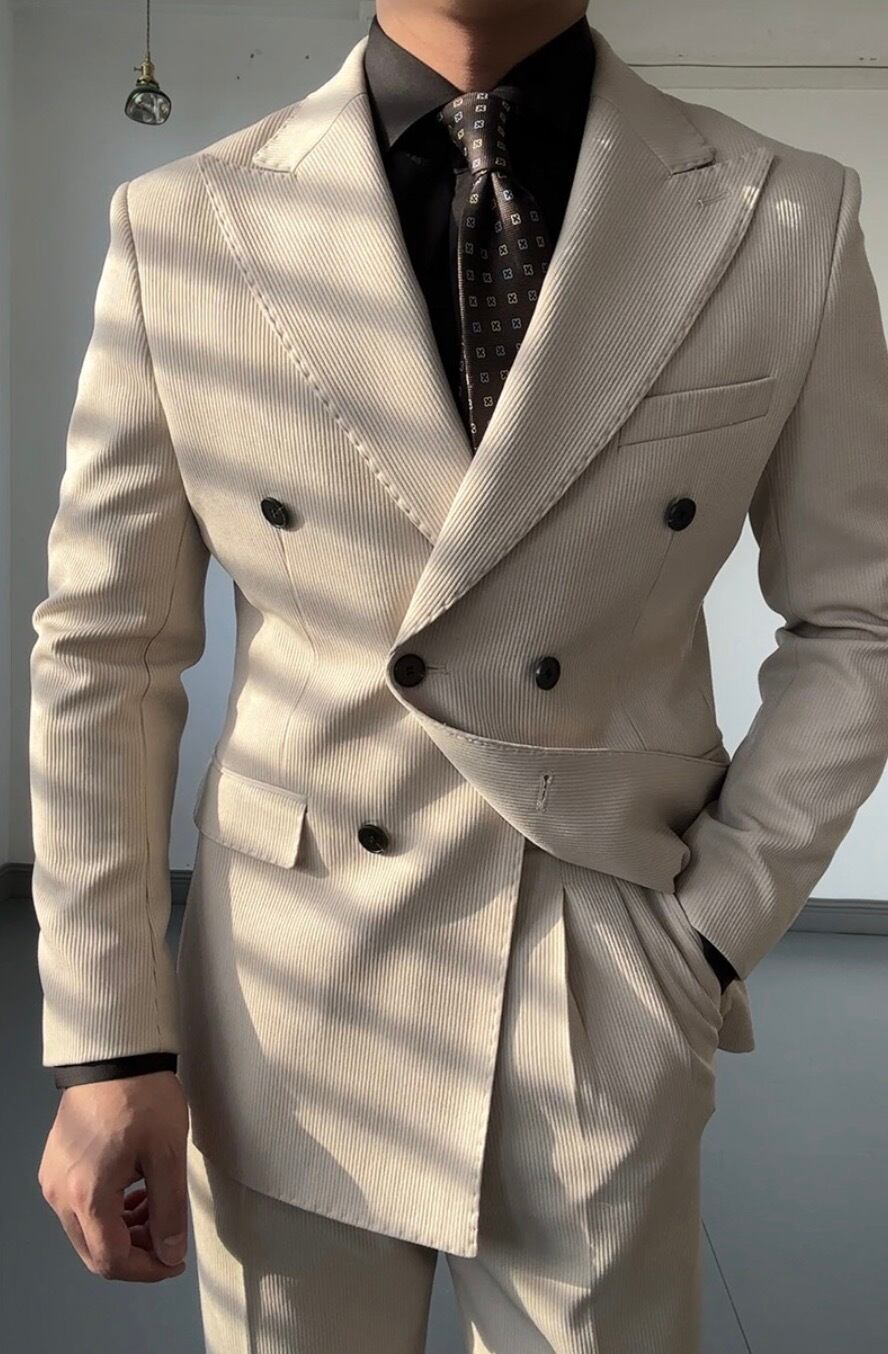 【通常定価39800円】ベージュコーデュロイダブルスーツ