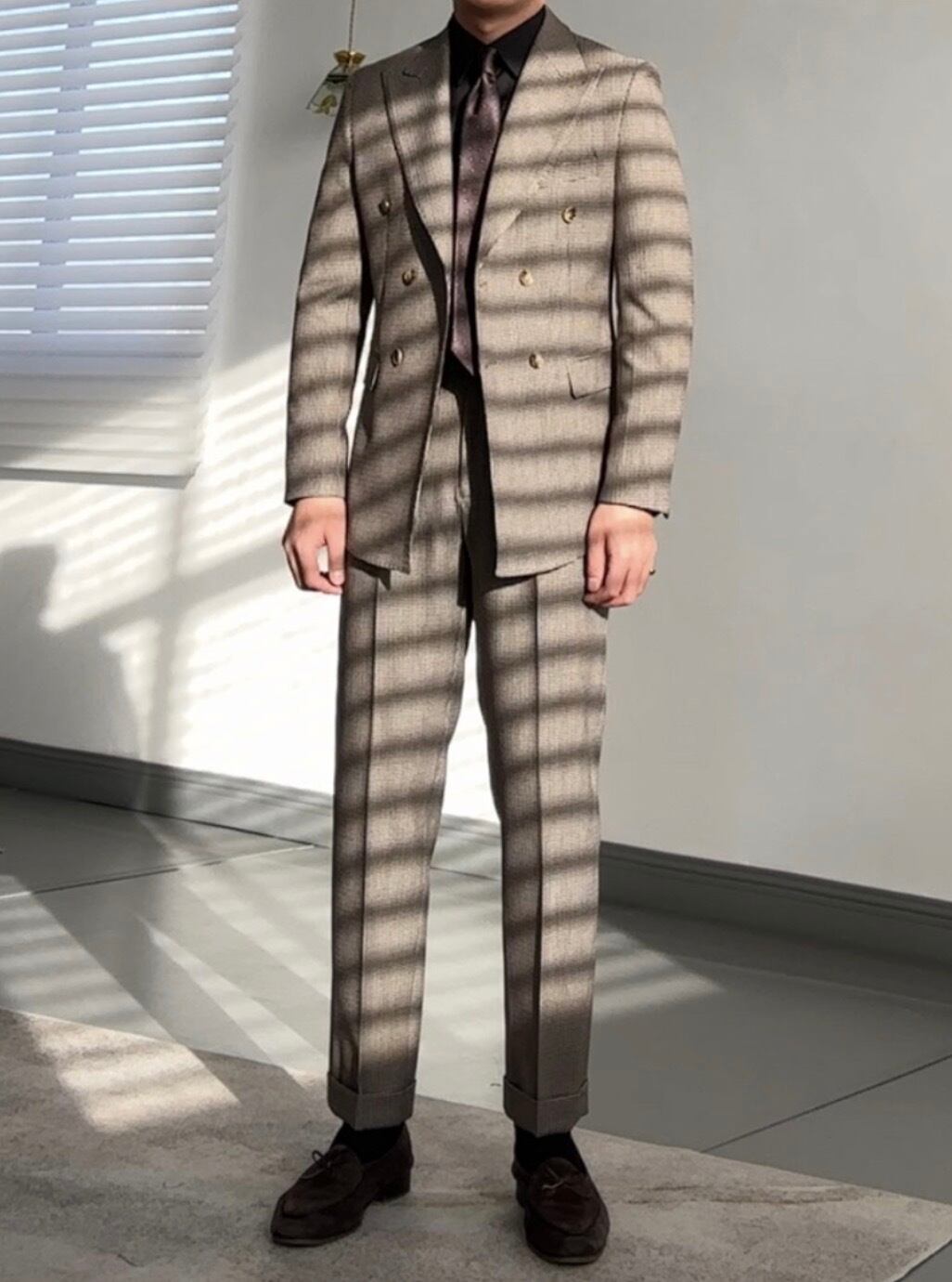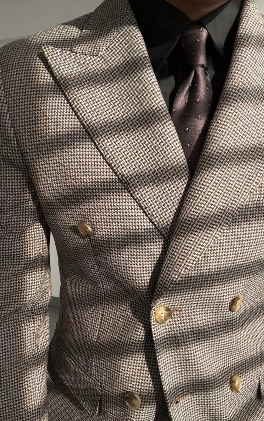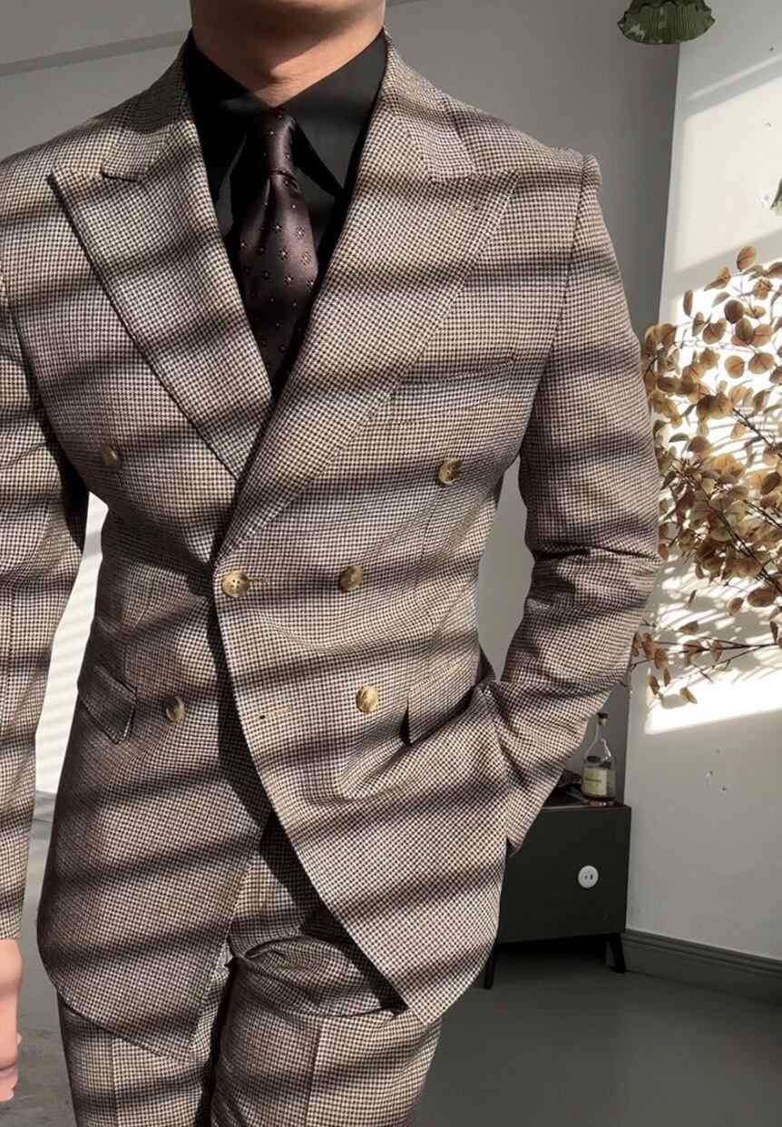 千鳥柄ブラウンナポリダブルスーツ