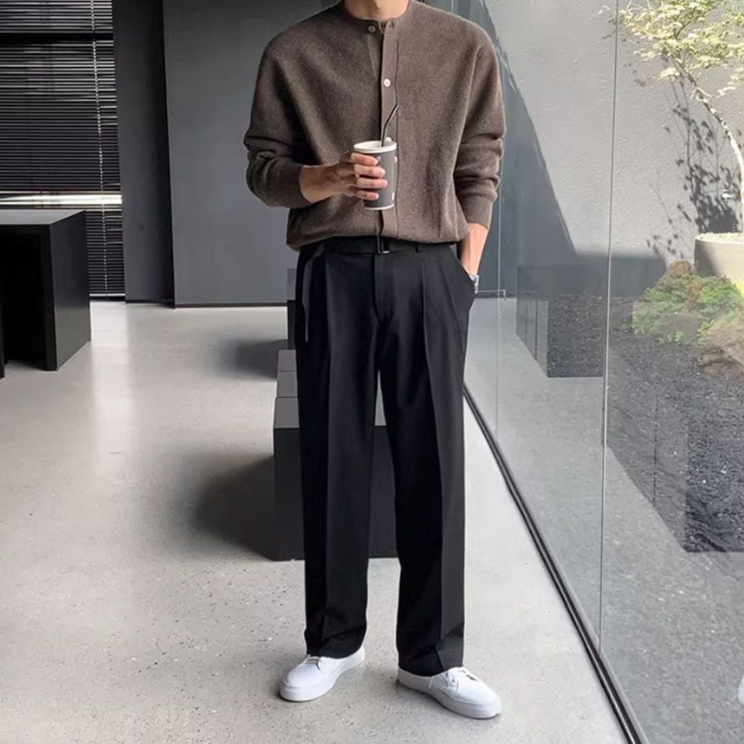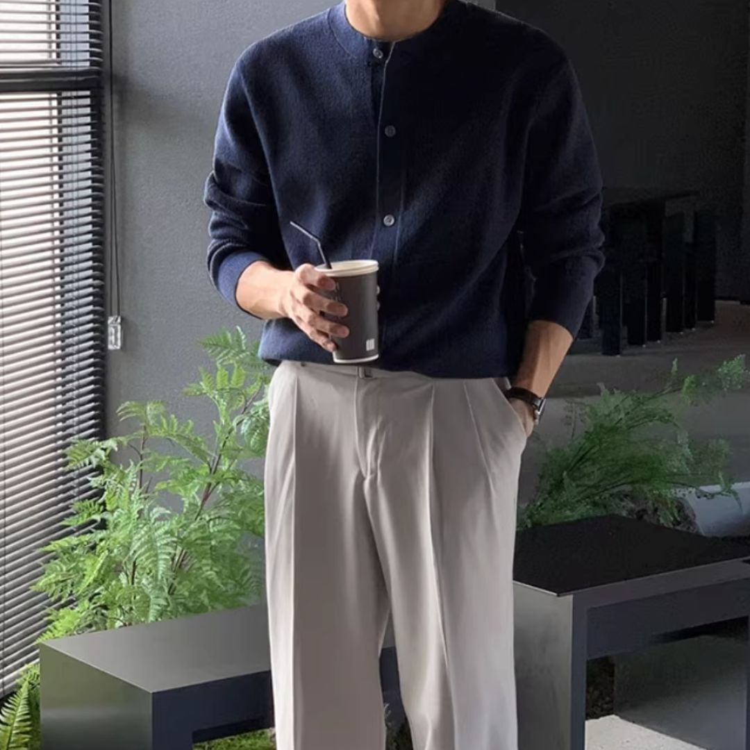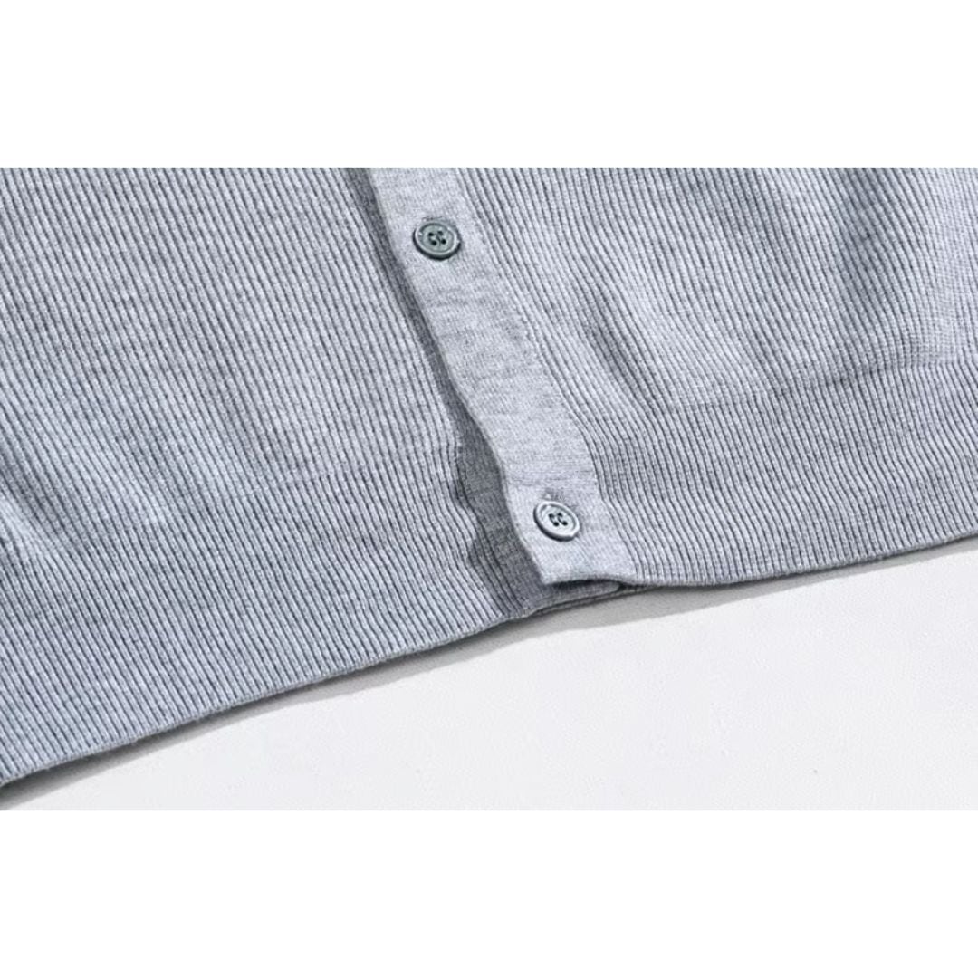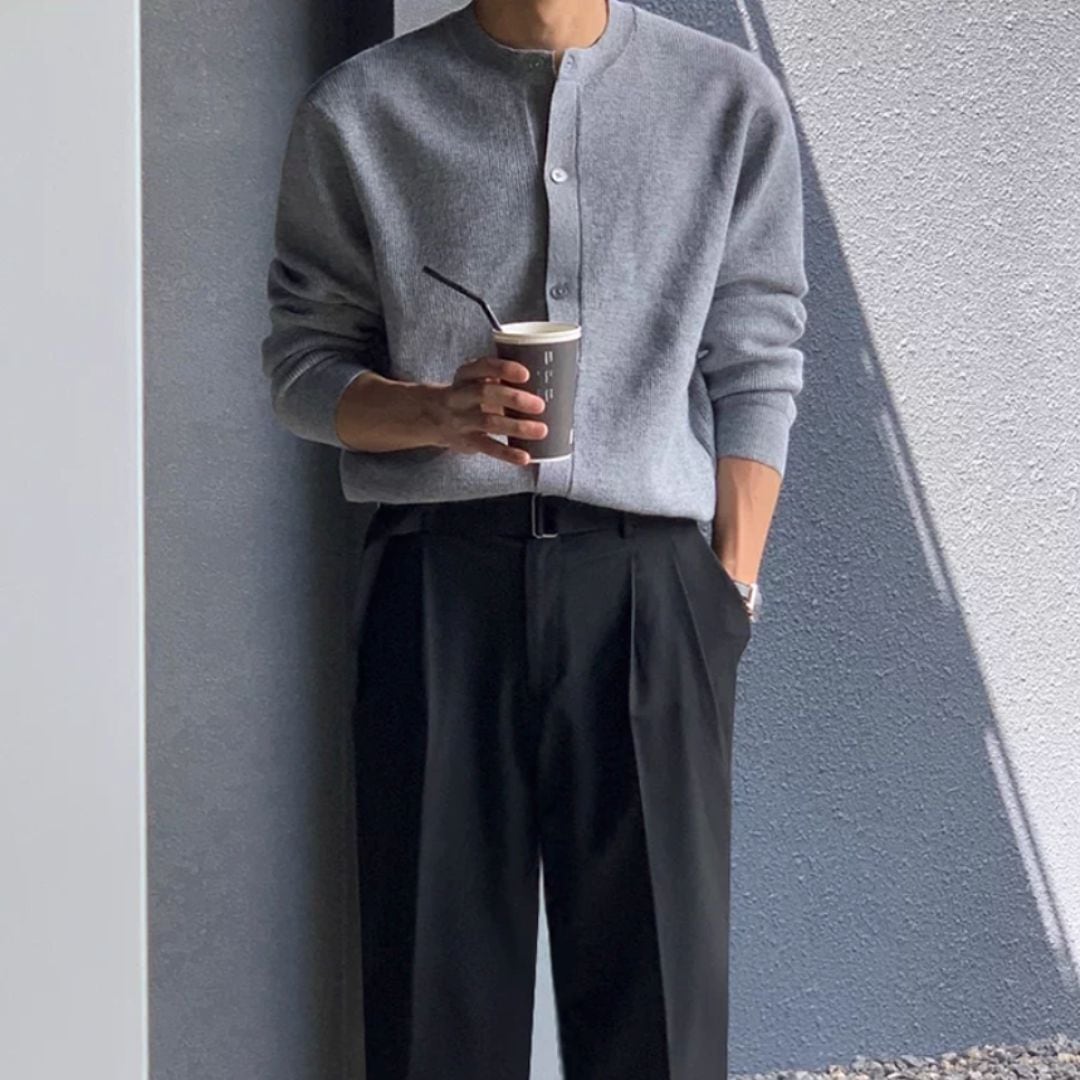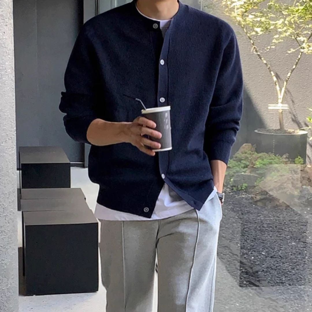 長く活躍するニットカーディガンです。