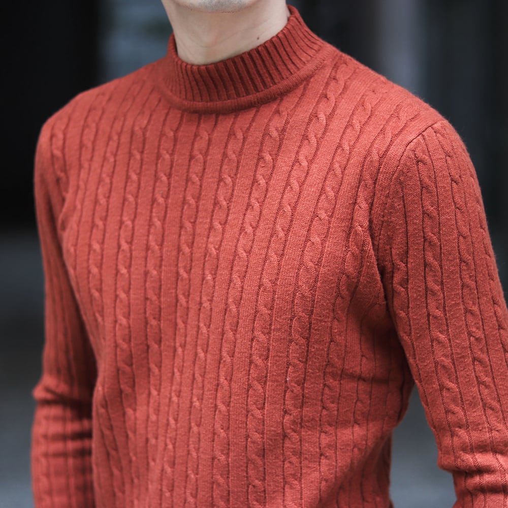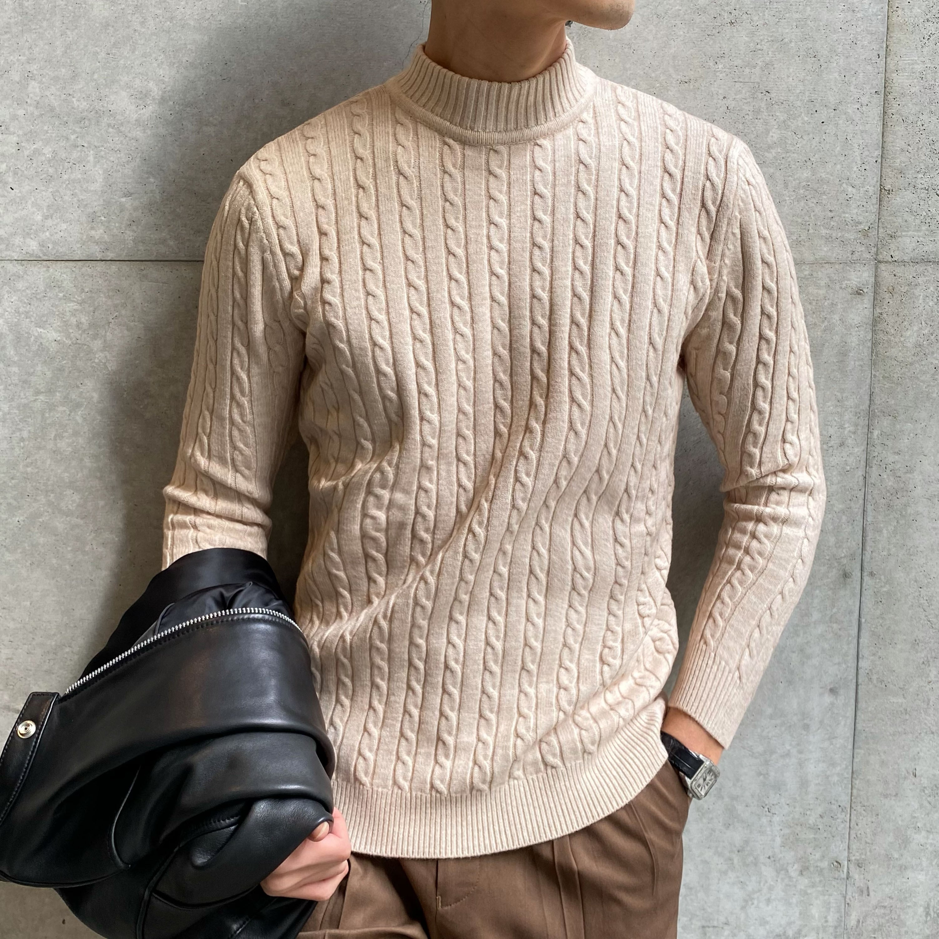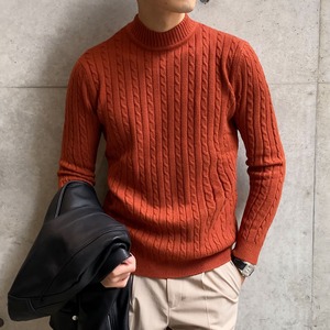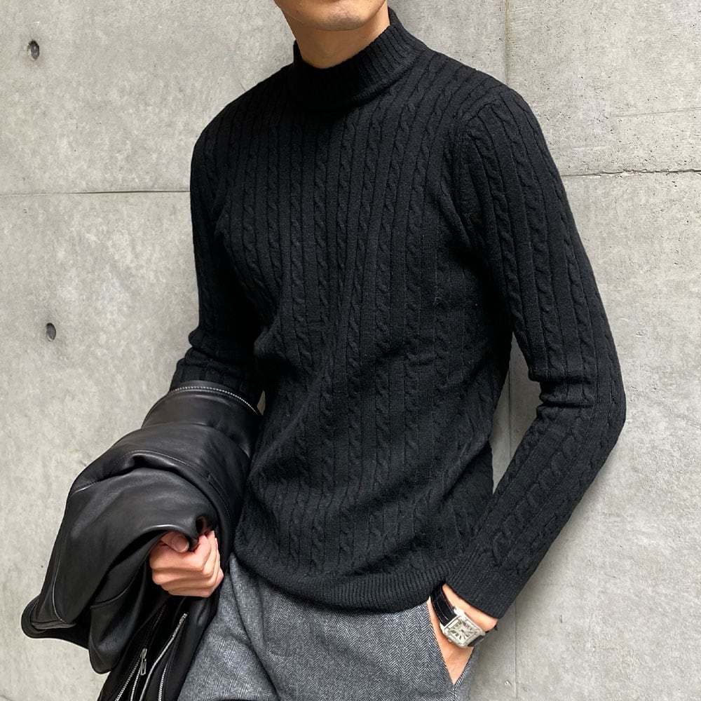 (5280円→3980円)BV_(素肌にきれる)モックネックケーブルウールニット ダークグレー