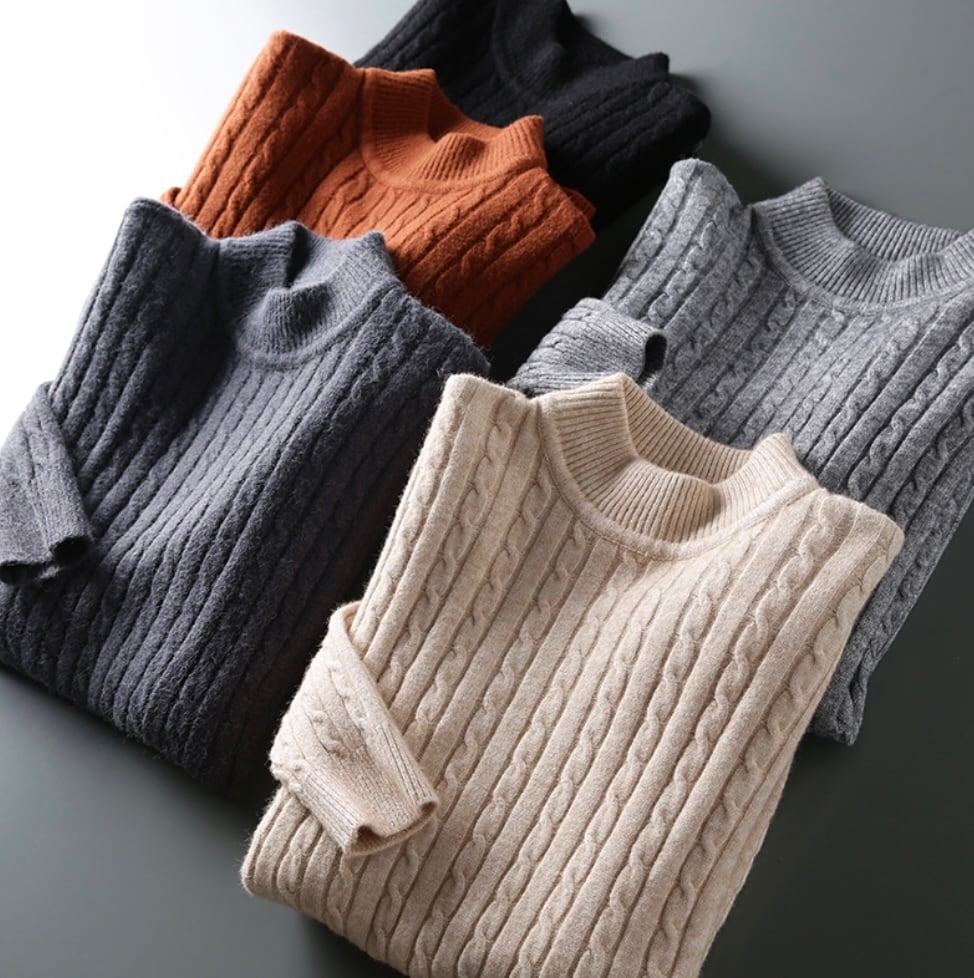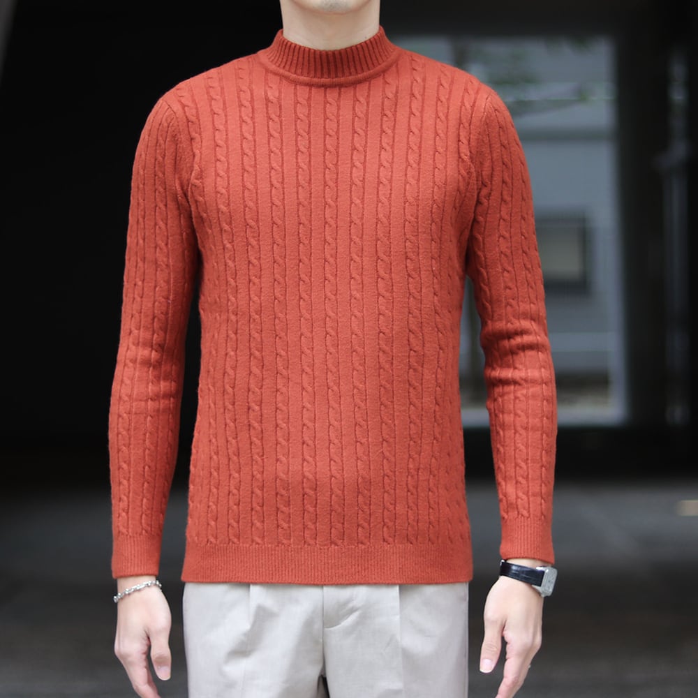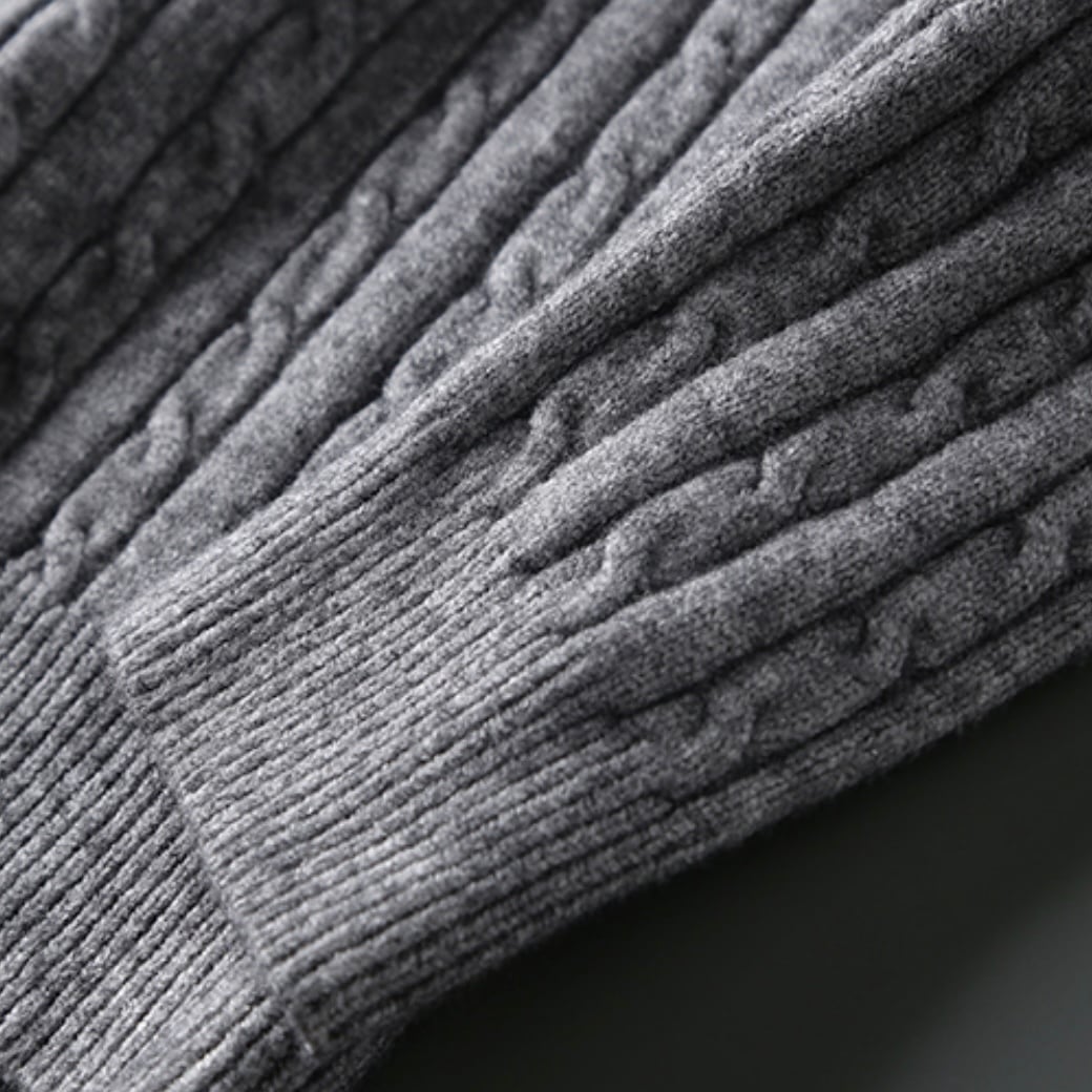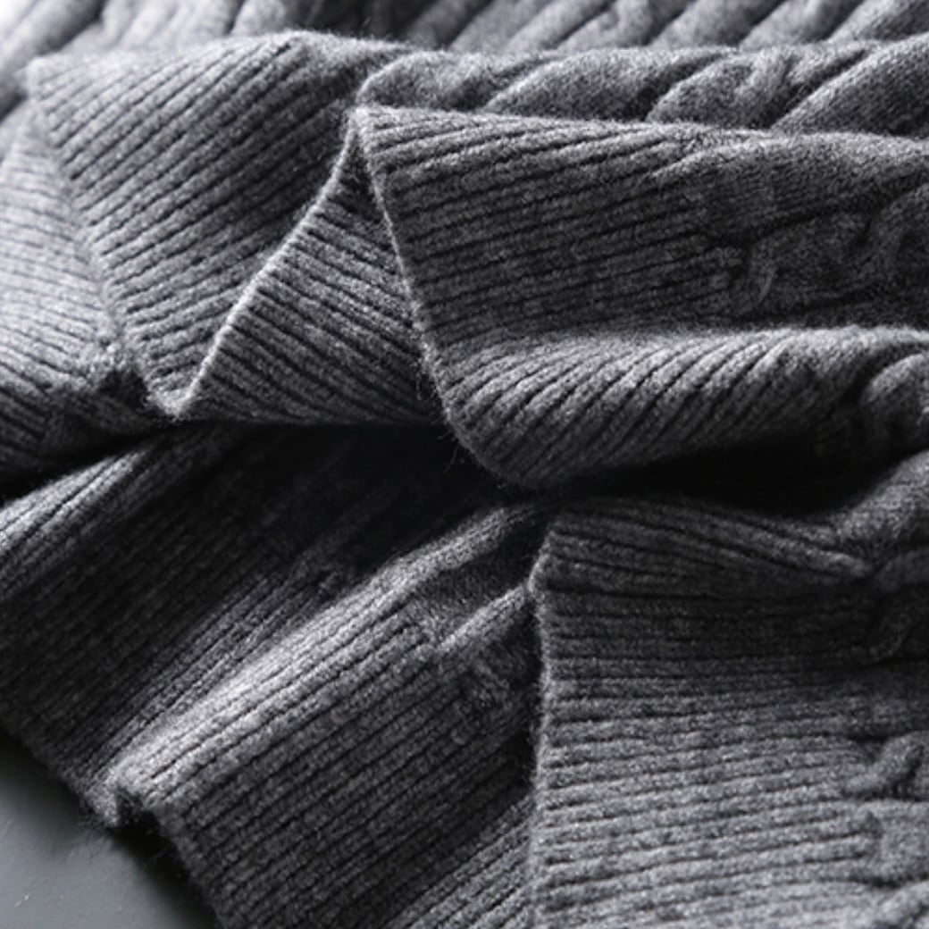 (5280円→3980円)BV_(素肌にきれる)モックネックケーブルウールニット ダークグレー
