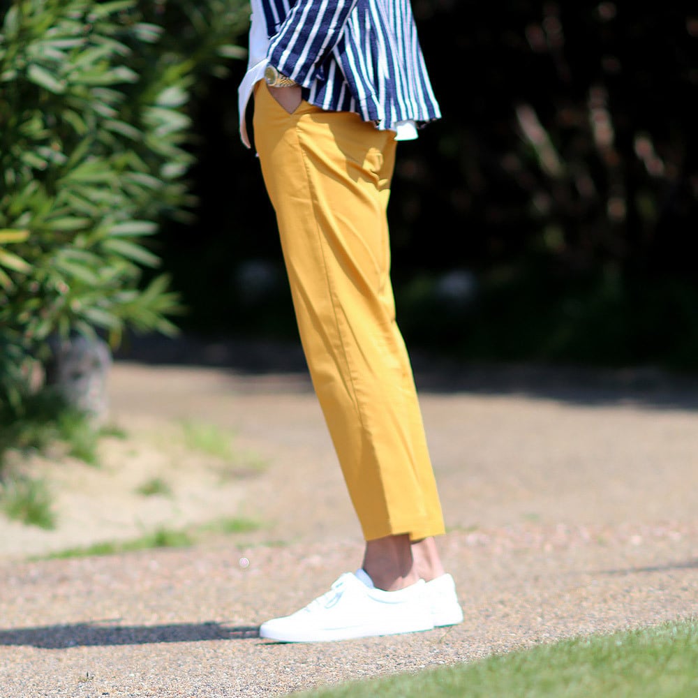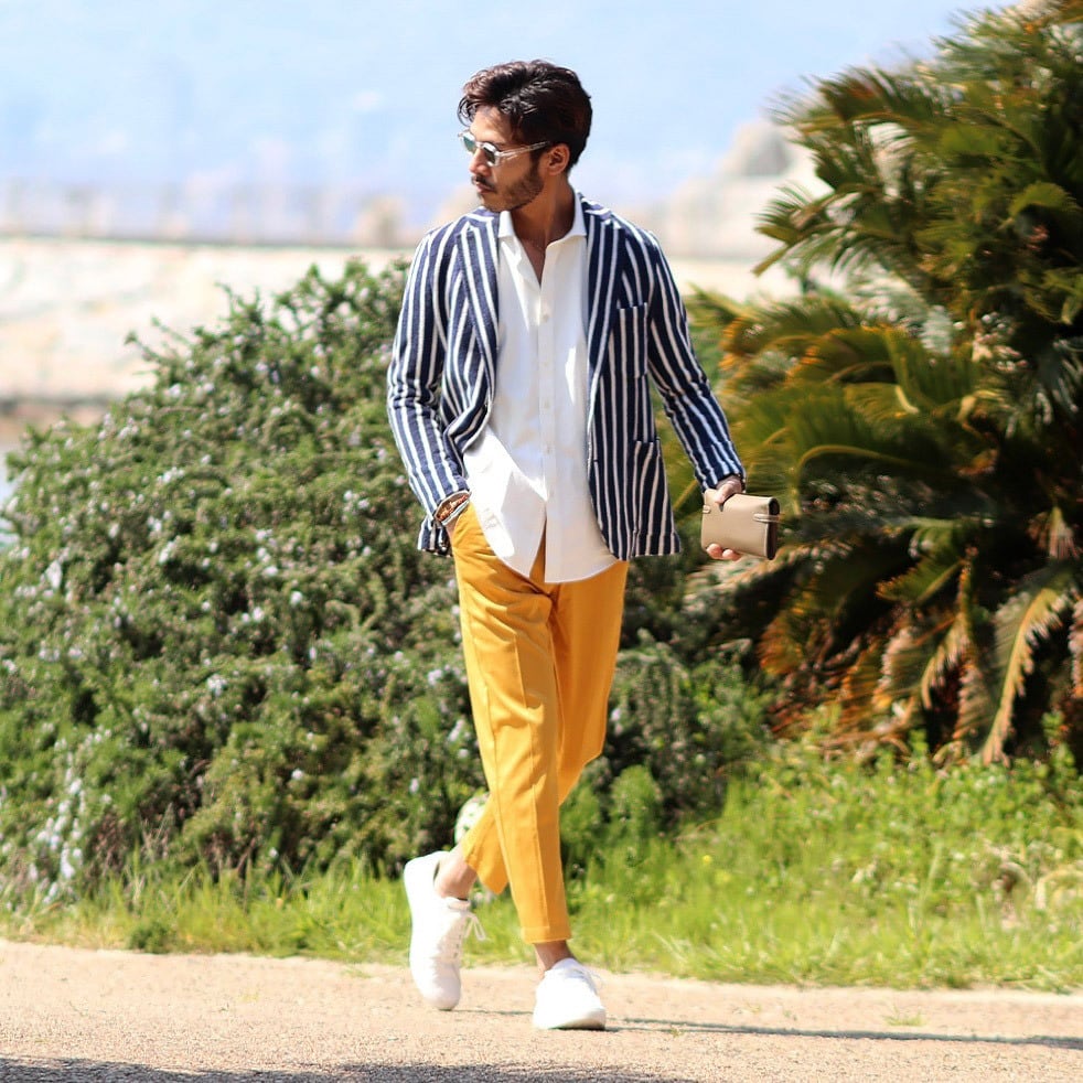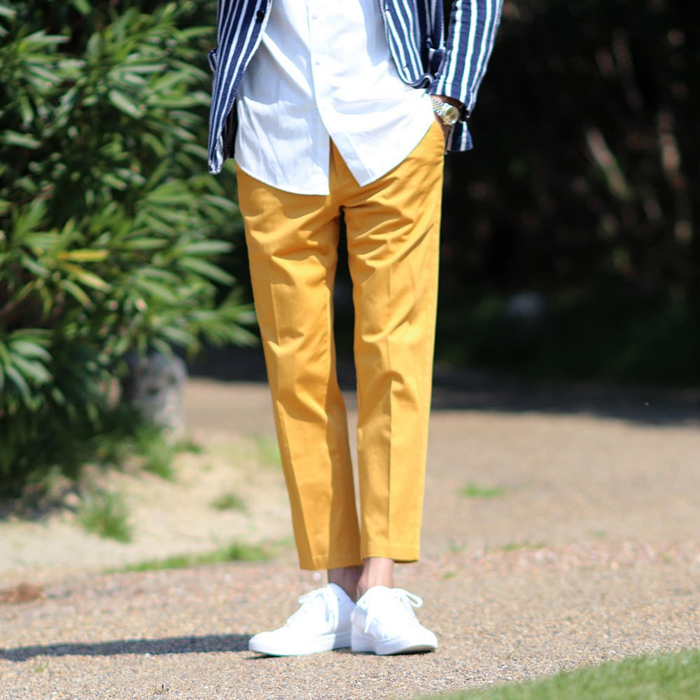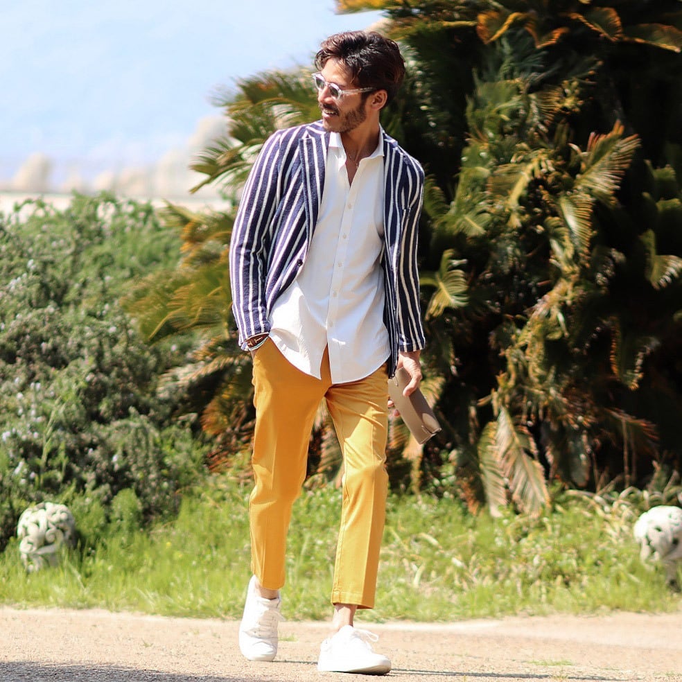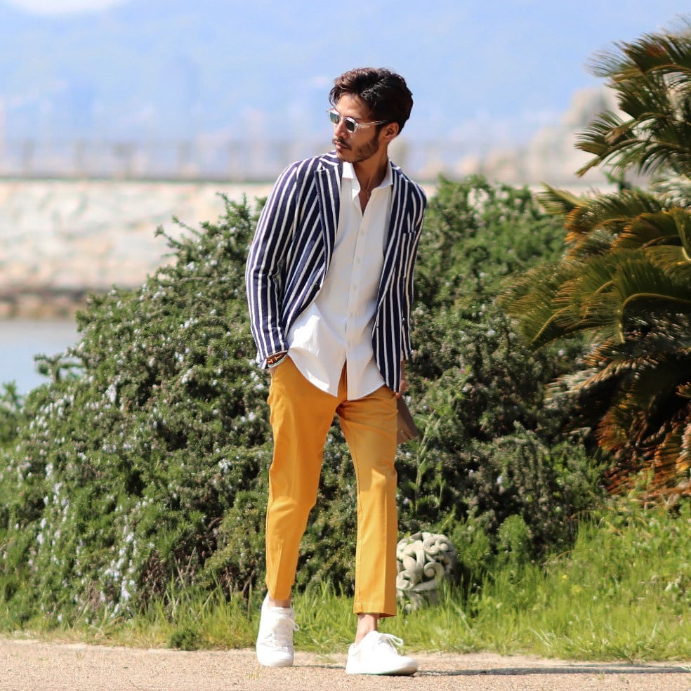 イタリア人はジャケットだけでなく、パンツもカラフルにコーデをするのが得意です。