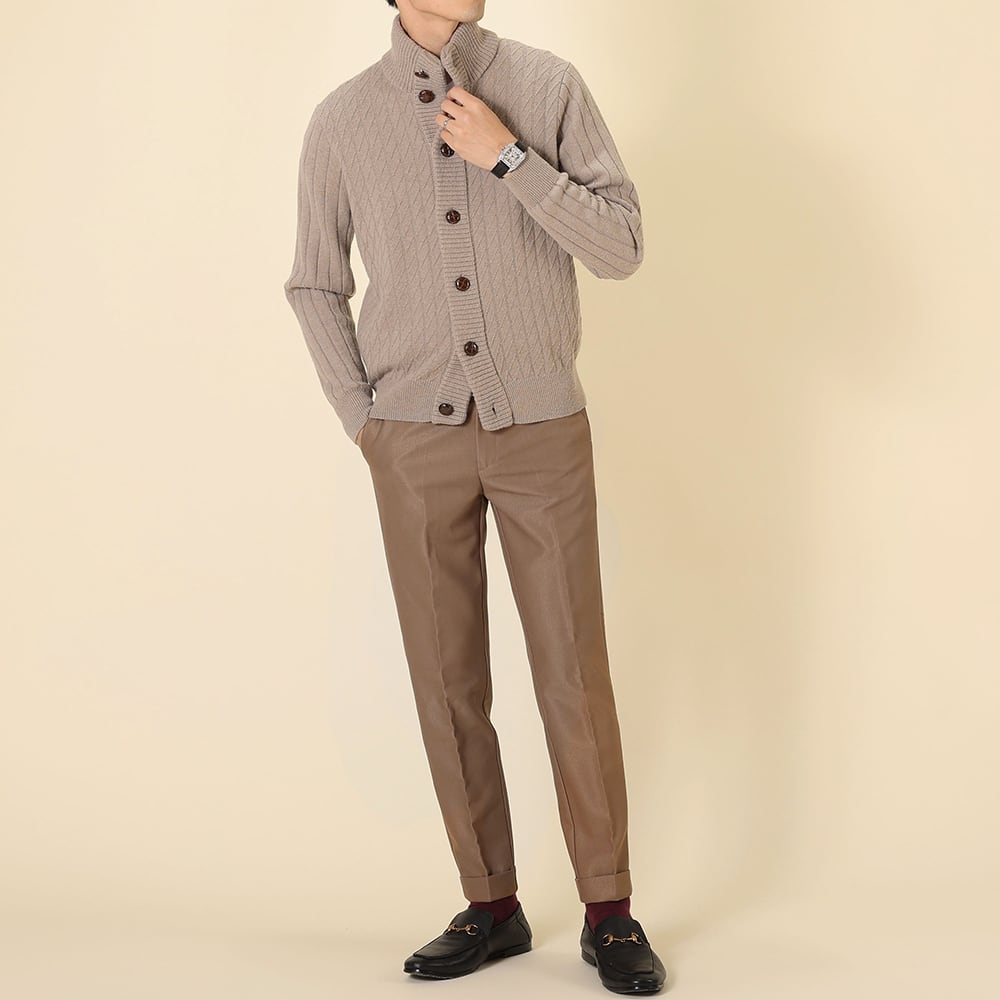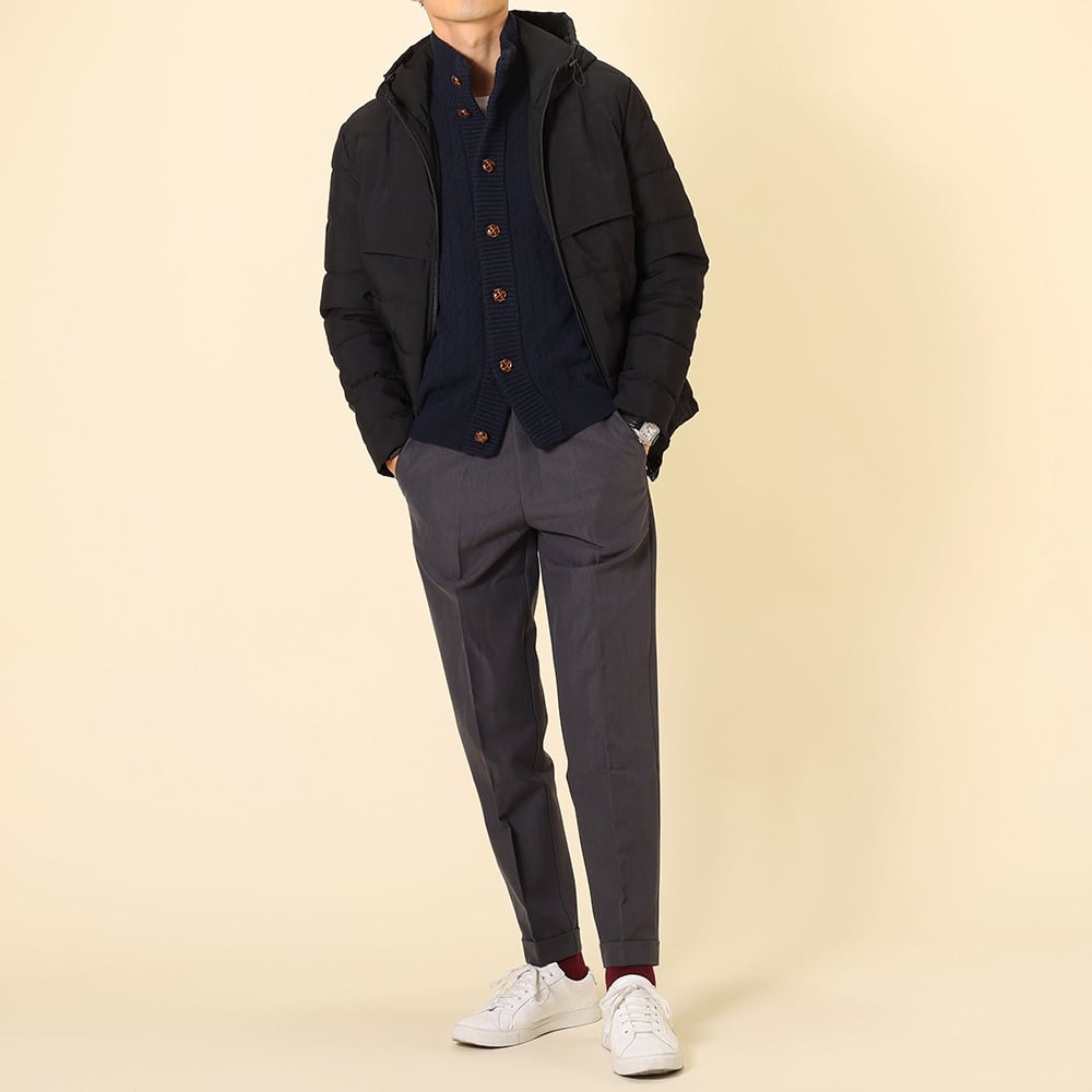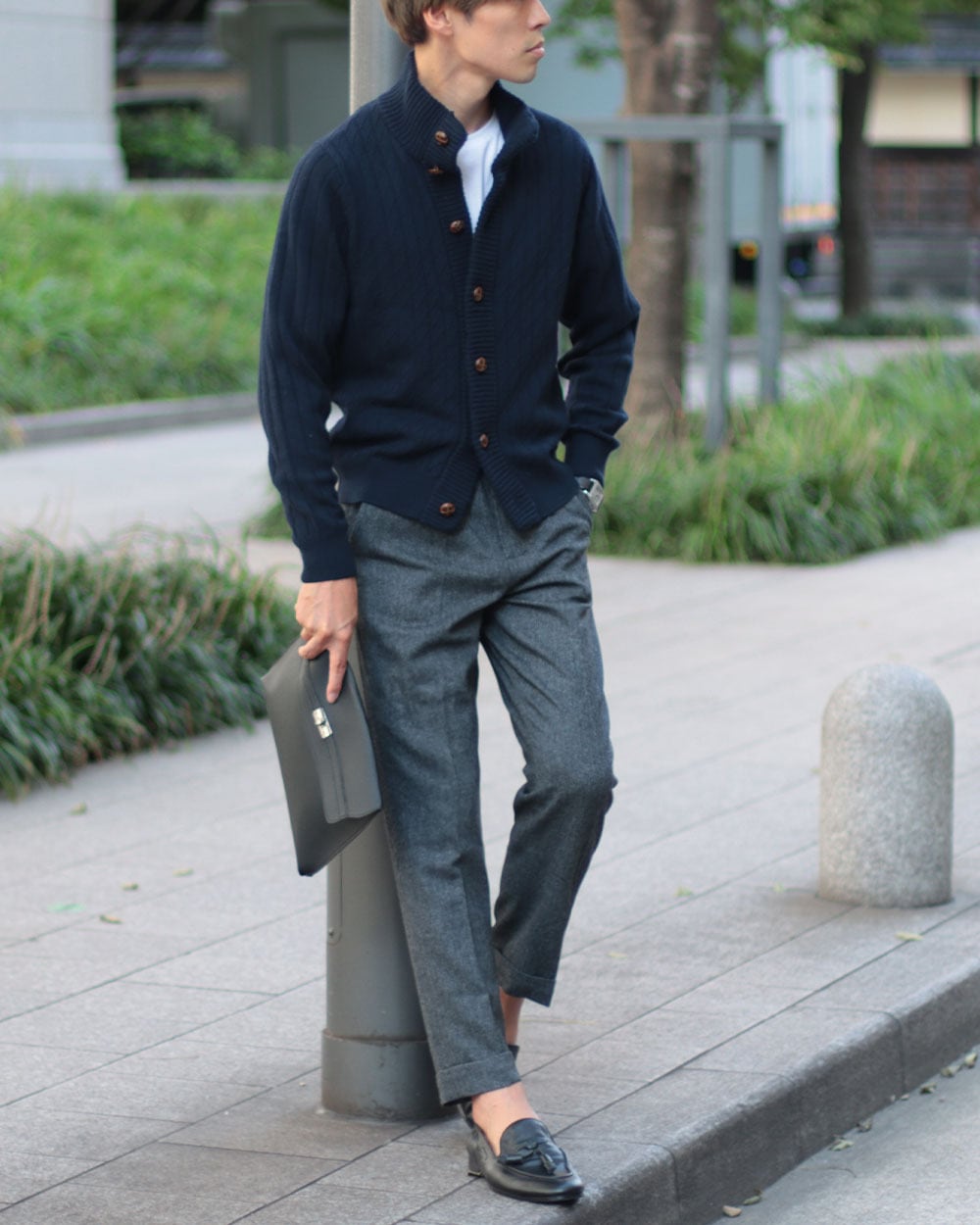 カーディガンのように羽織ってもいいですが、ボタンを閉めた時の雰囲気はこちらに軍配が上がりますよ☆