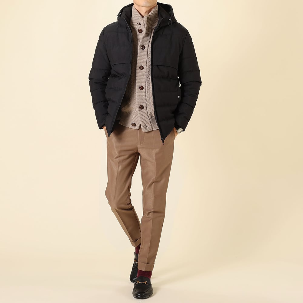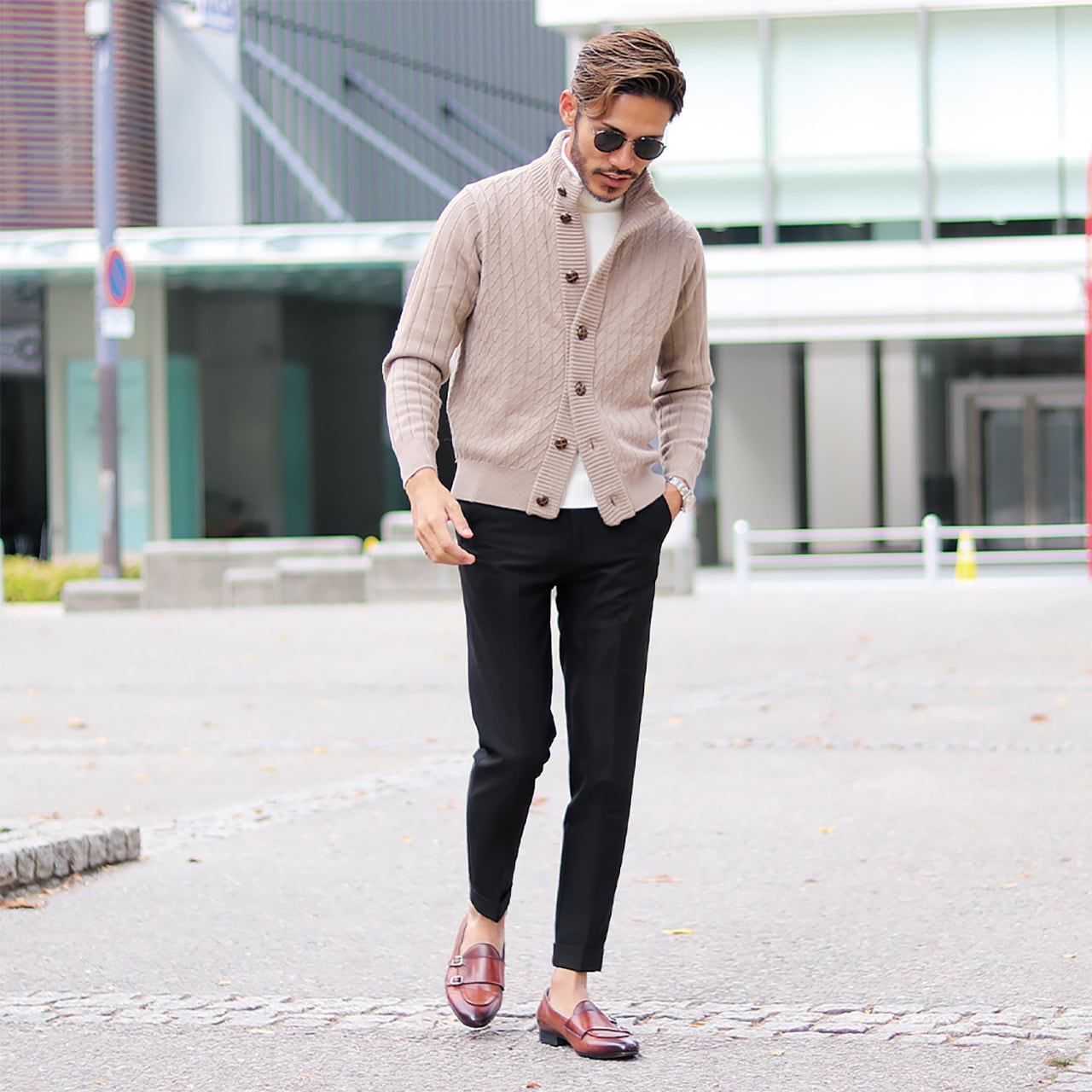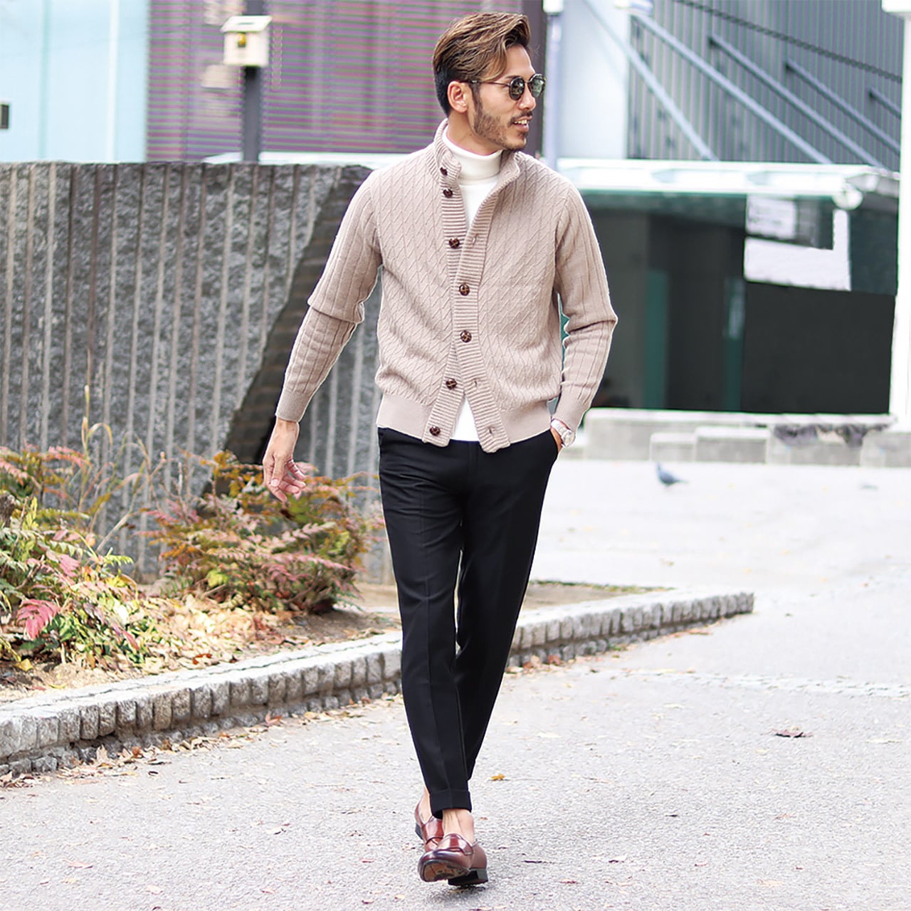 カーディガンのように羽織ってもいいですが、ボタンを閉めた時の雰囲気はこちらに軍配が上がりますよ☆