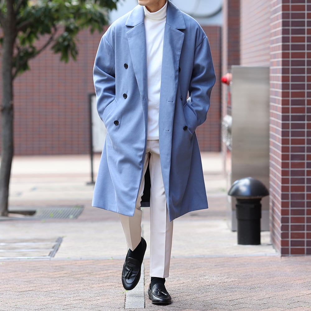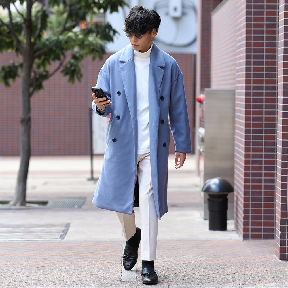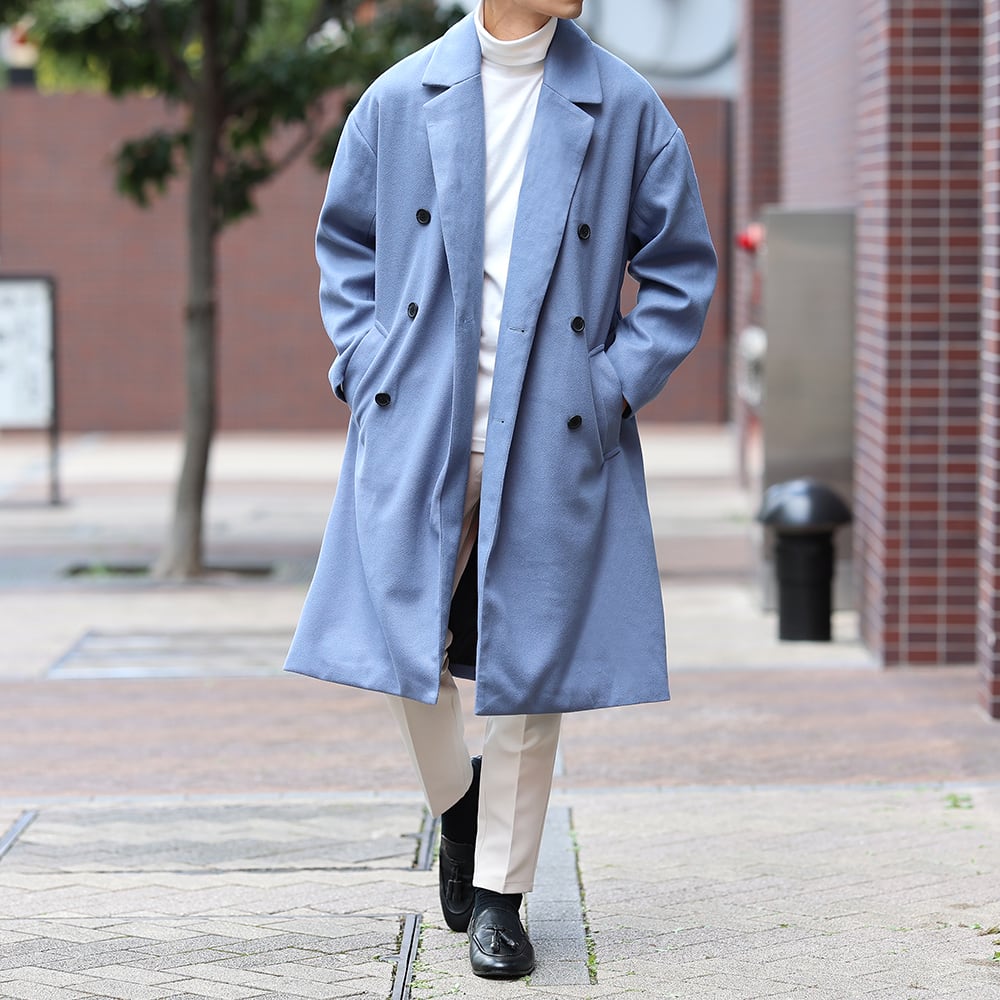 (14500円→12000円)【ブルーL即納】ウールライクオーバーコート
