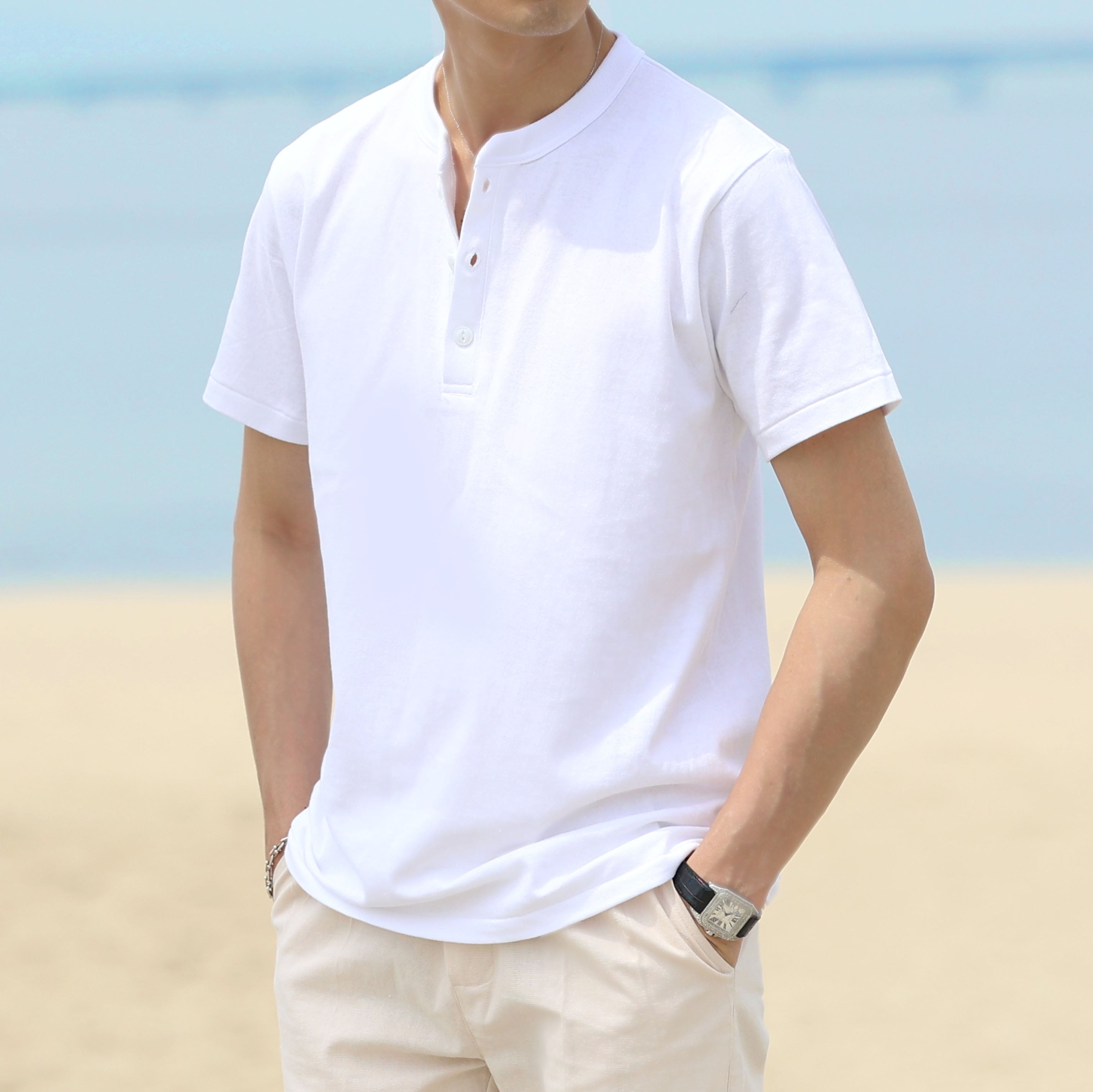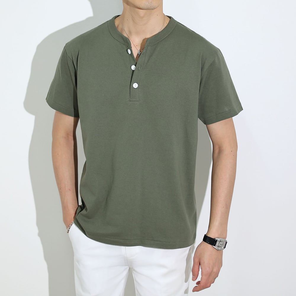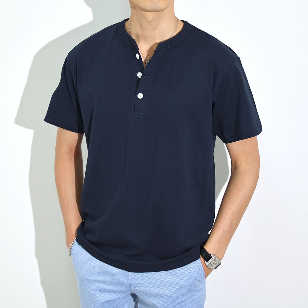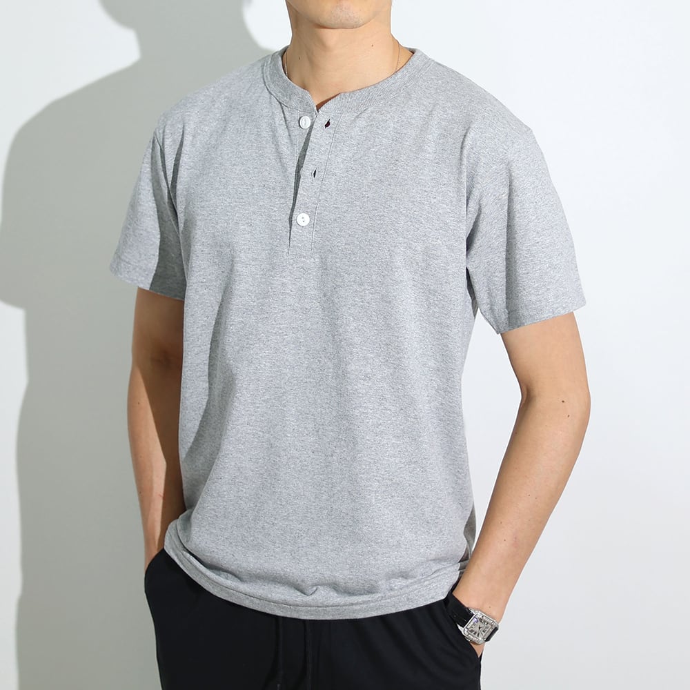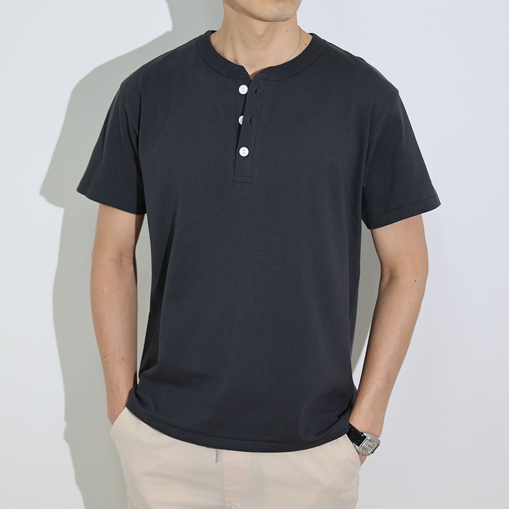 (4580円→3980円)【ホワイト・ダークグレー即納】ヘンリーネックイタリアンTシャツ