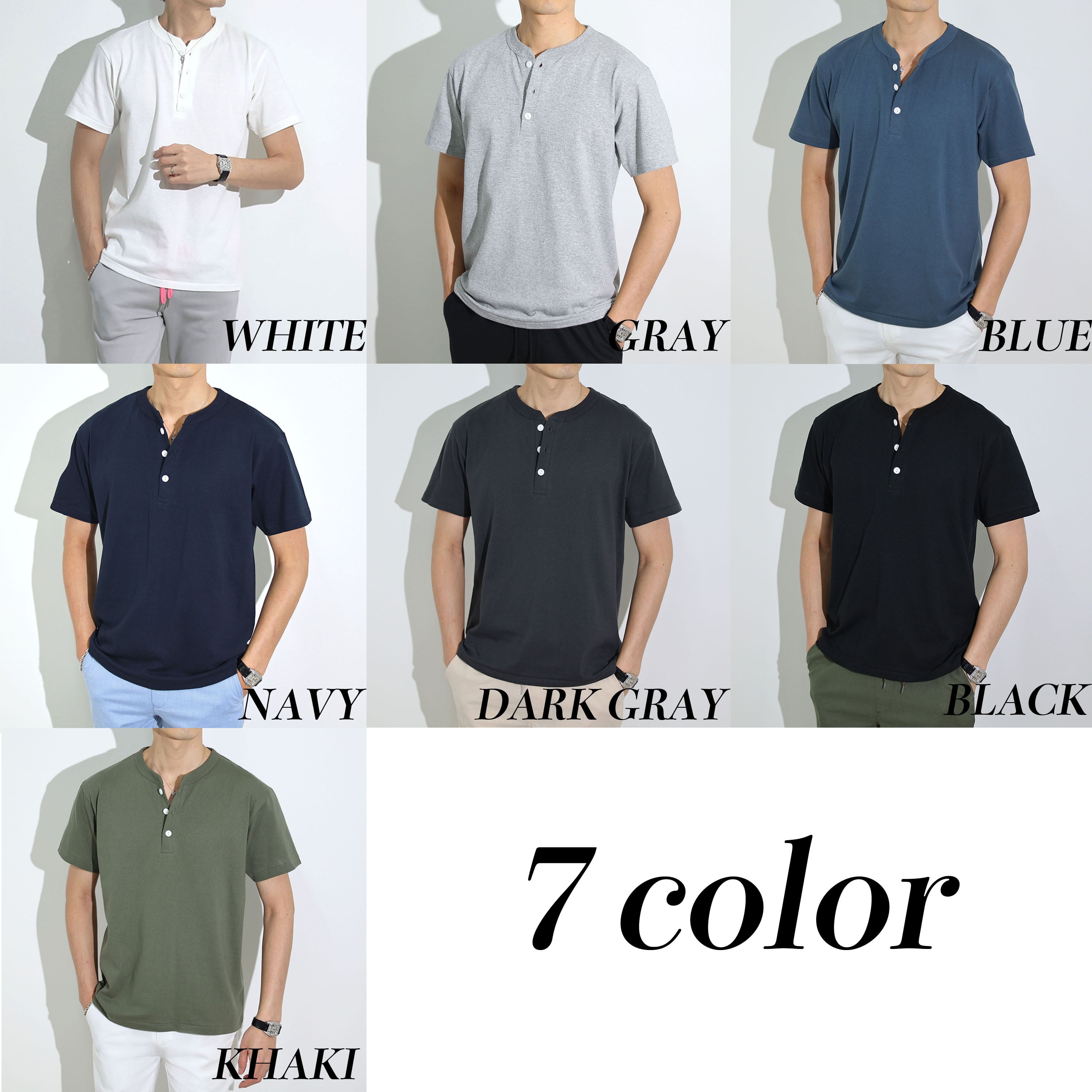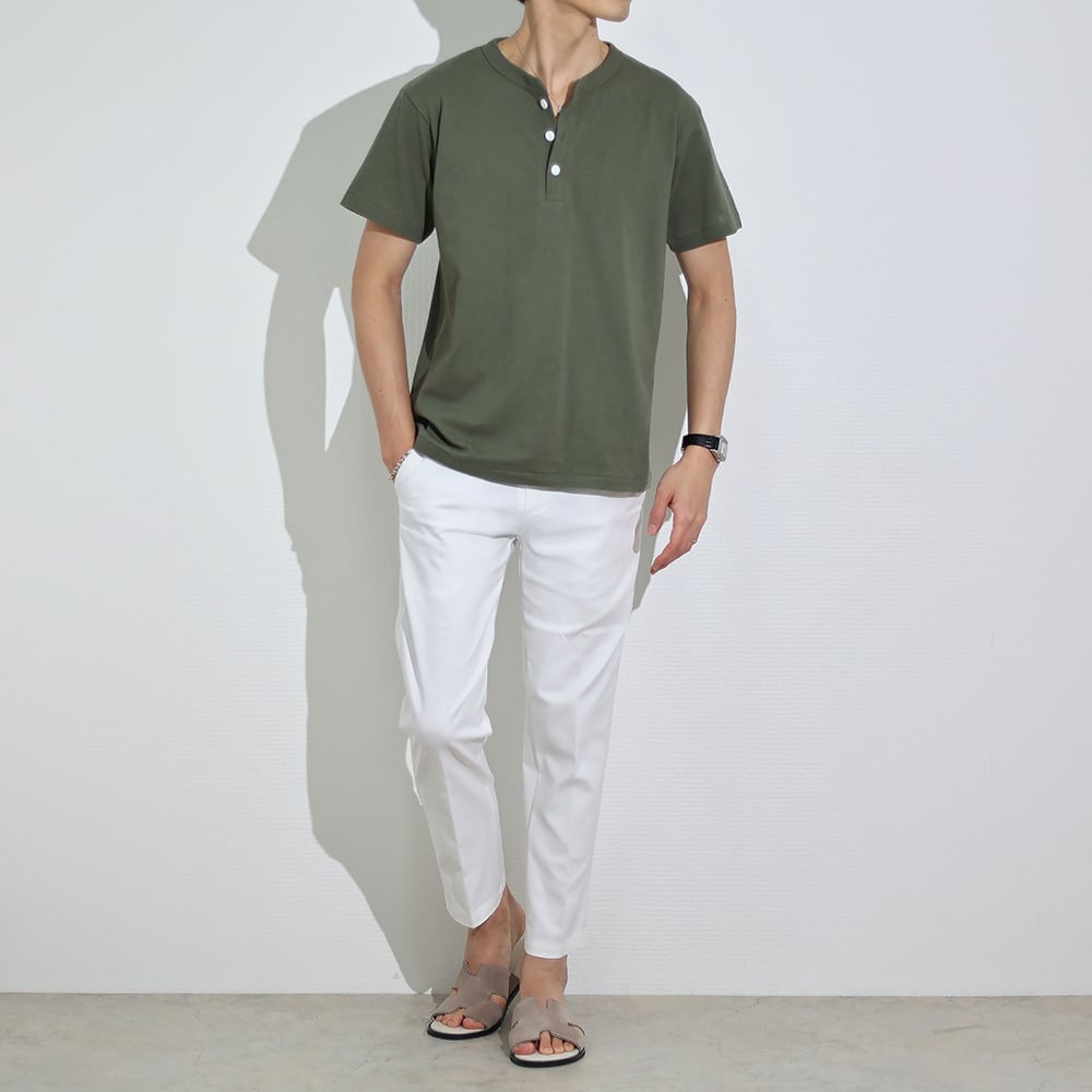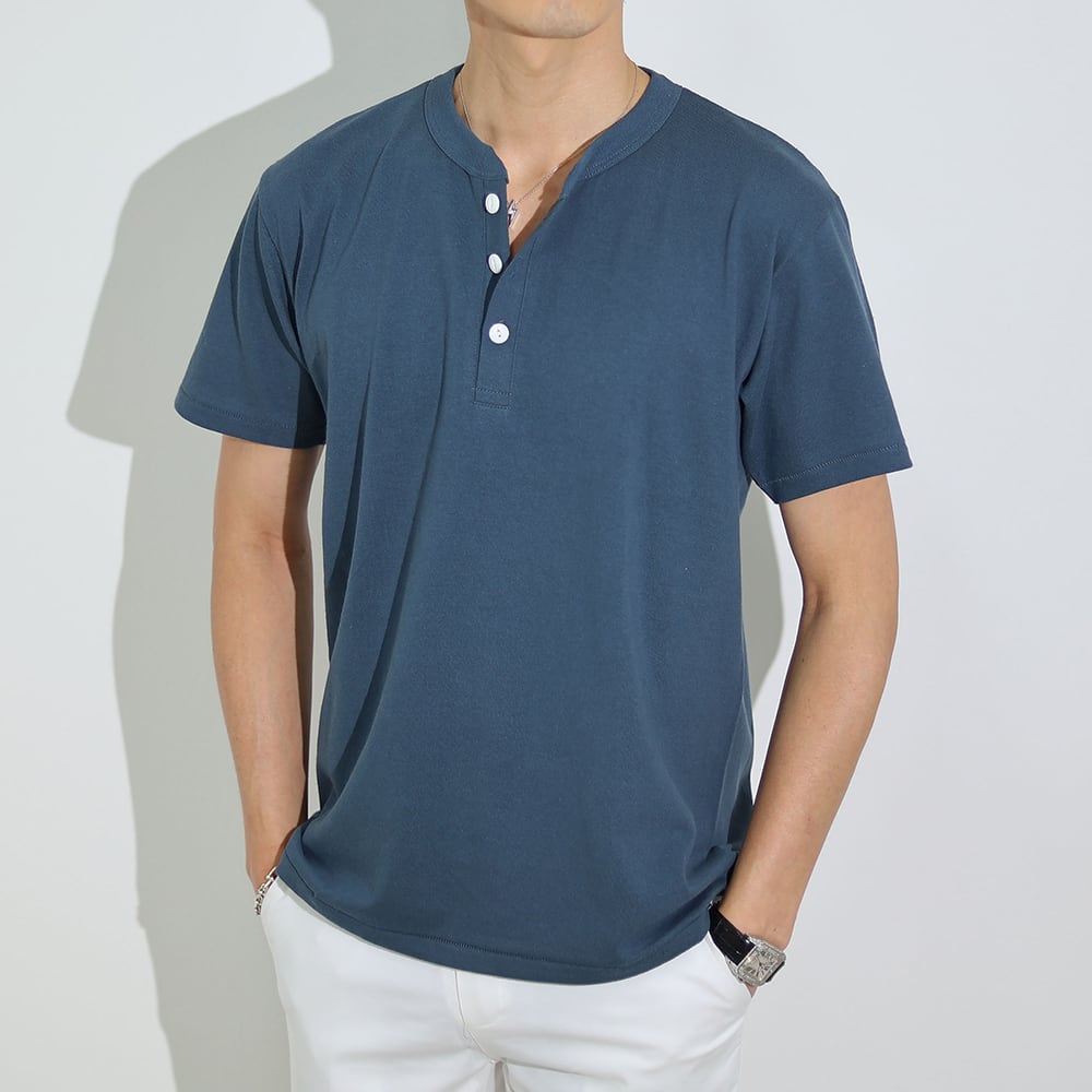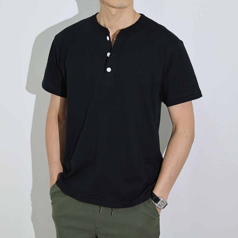 (4580円→3980円)【ホワイト・ダークグレー即納】ヘンリーネックイタリアンTシャツ