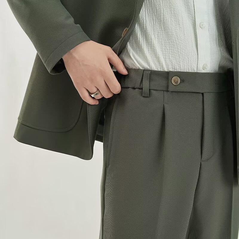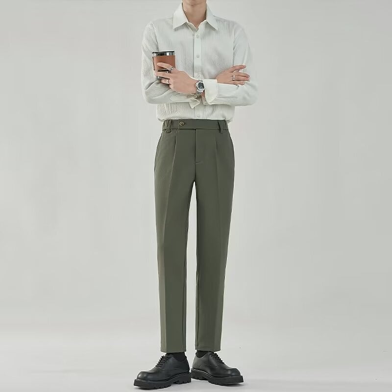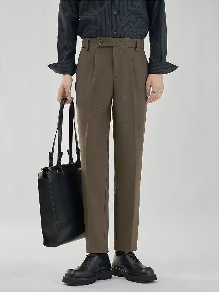 くすみカラーのクラシカルパンツ