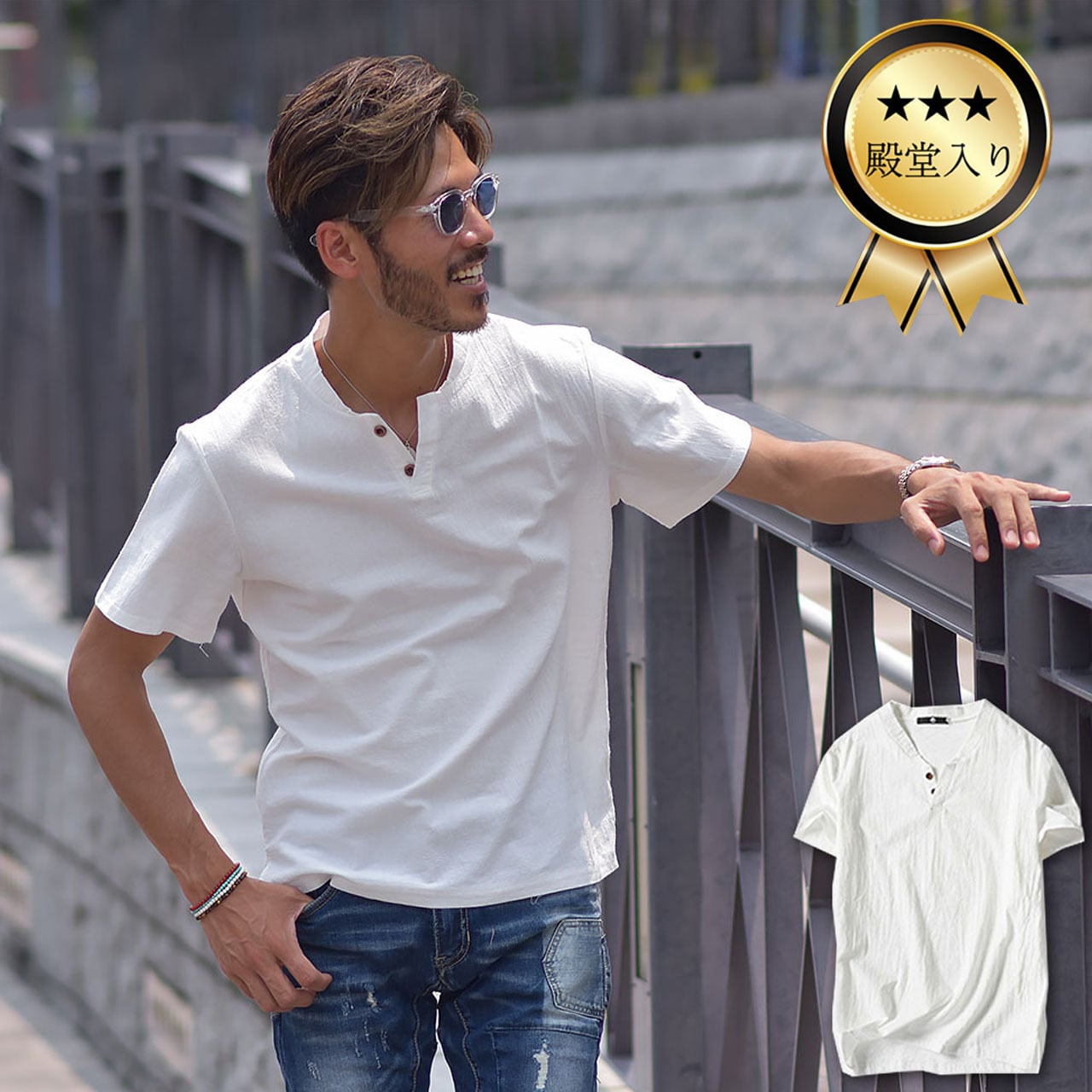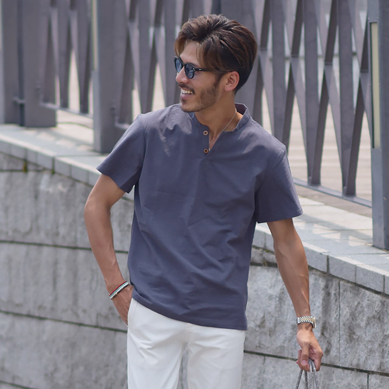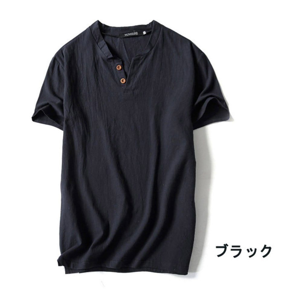 【15%OFF】BV_ヘンリーネックリネン混Tシャツ 6色展開