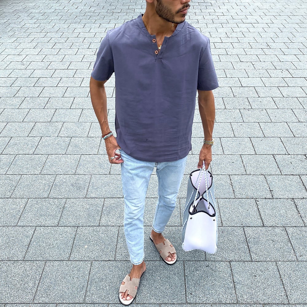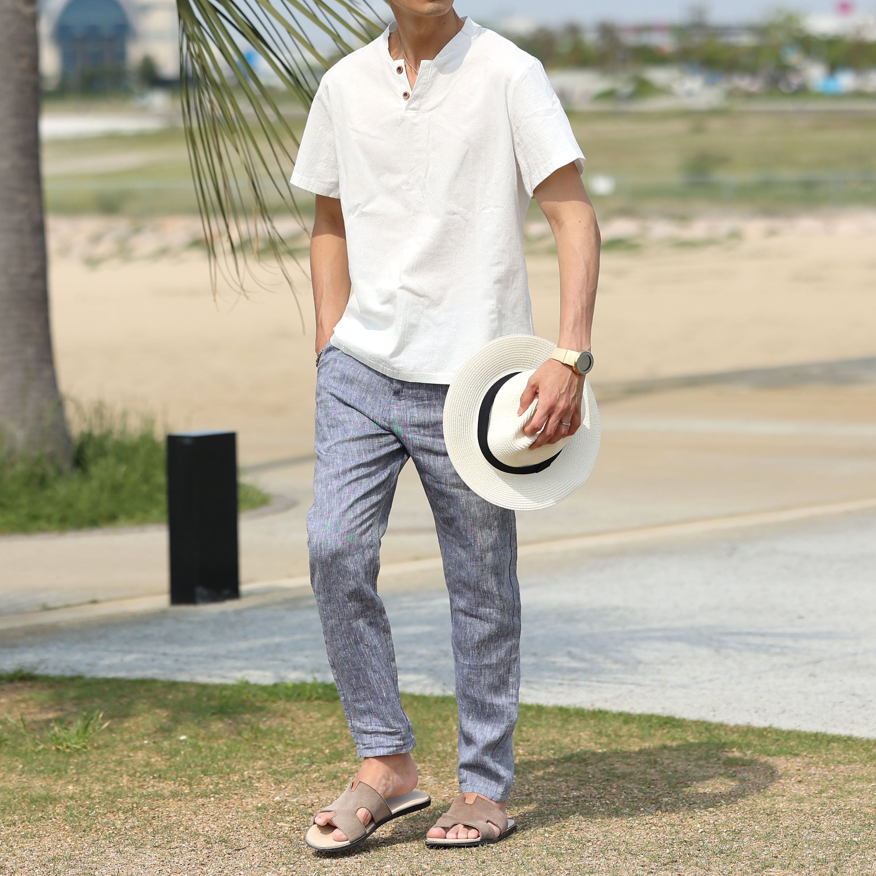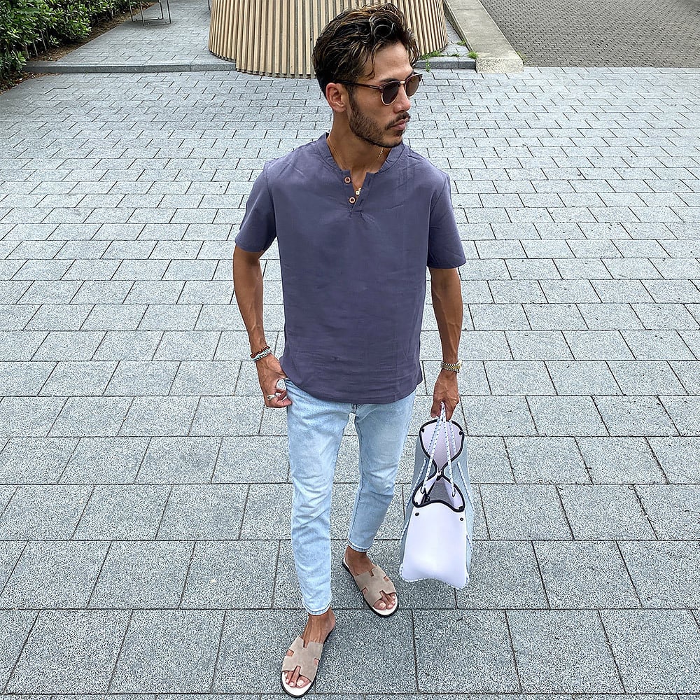 【15%OFF】BV_ヘンリーネックリネン混Tシャツ 6色展開