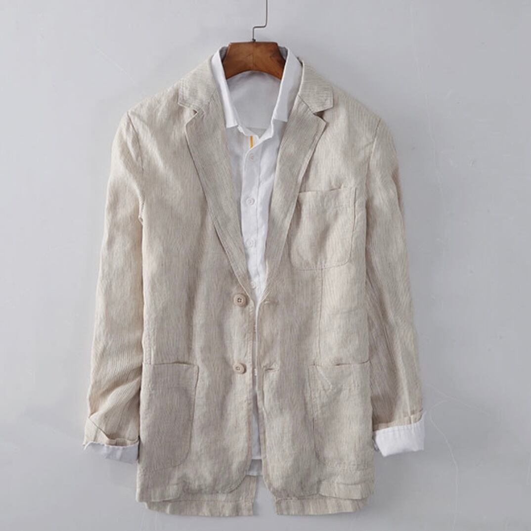 特に、夏の暑い時期にリネンのジャケットが1枚あると大活躍。