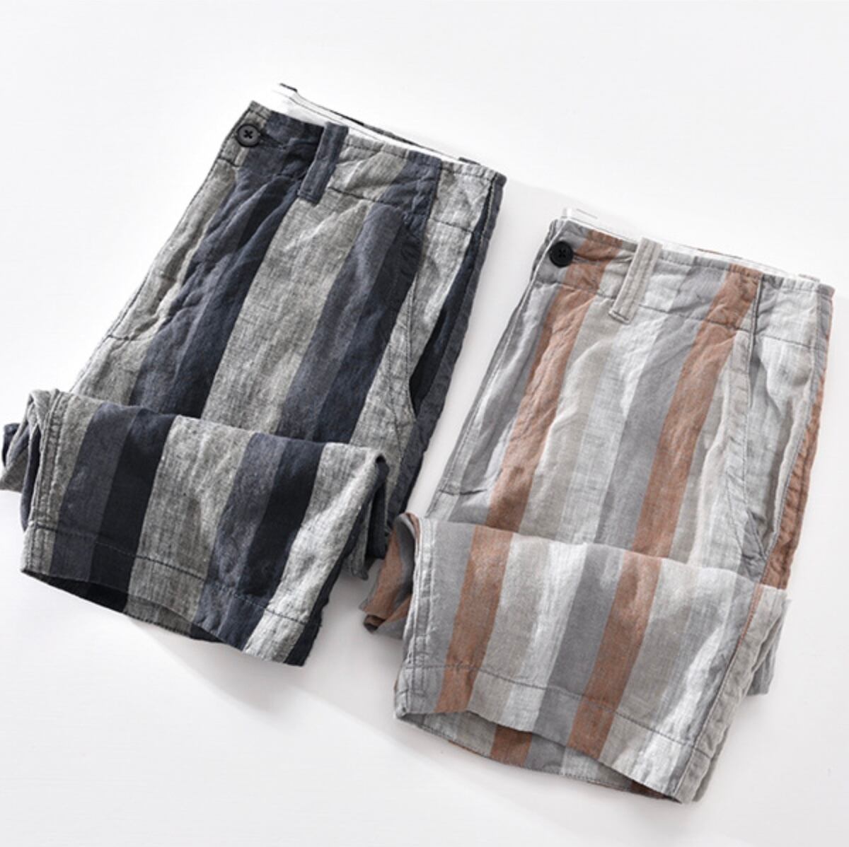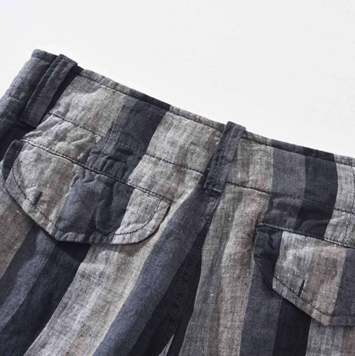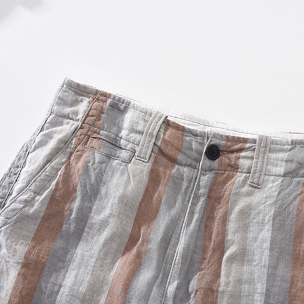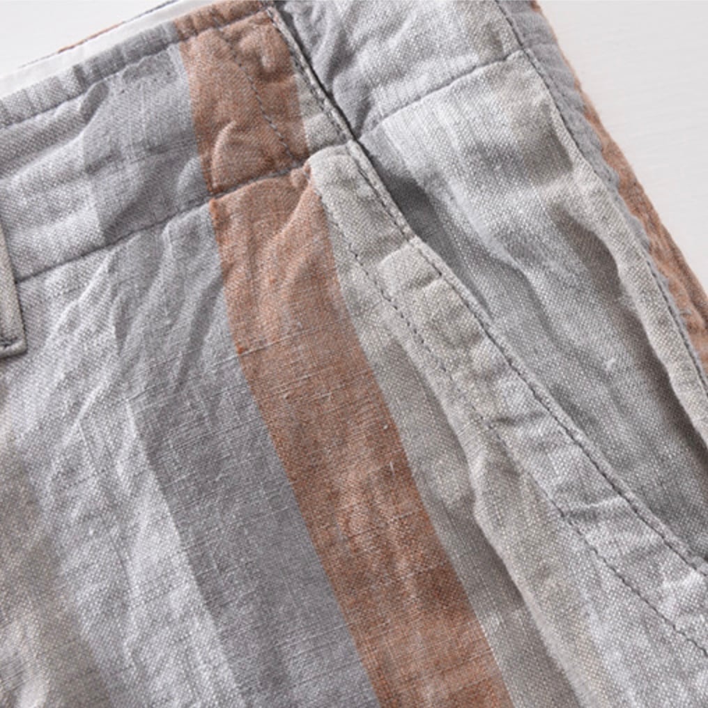 【15%OFF】夏の爽やかさ満載!コントラストストライプリネンパンツ 2色展開