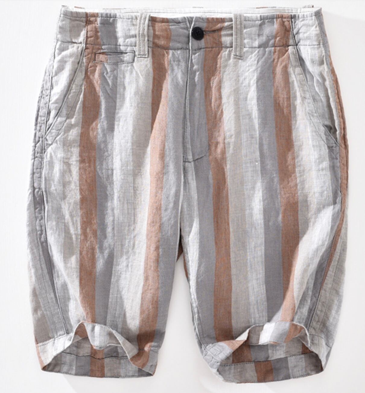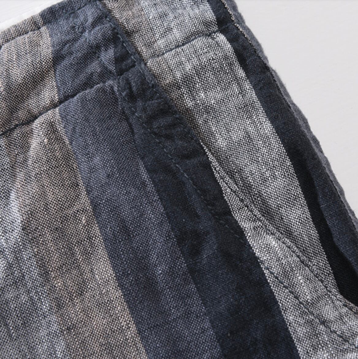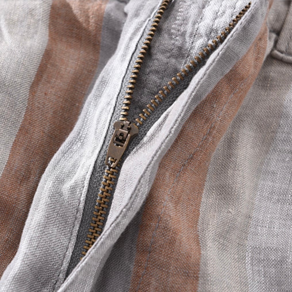 【15%OFF】夏の爽やかさ満載!コントラストストライプリネンパンツ 2色展開