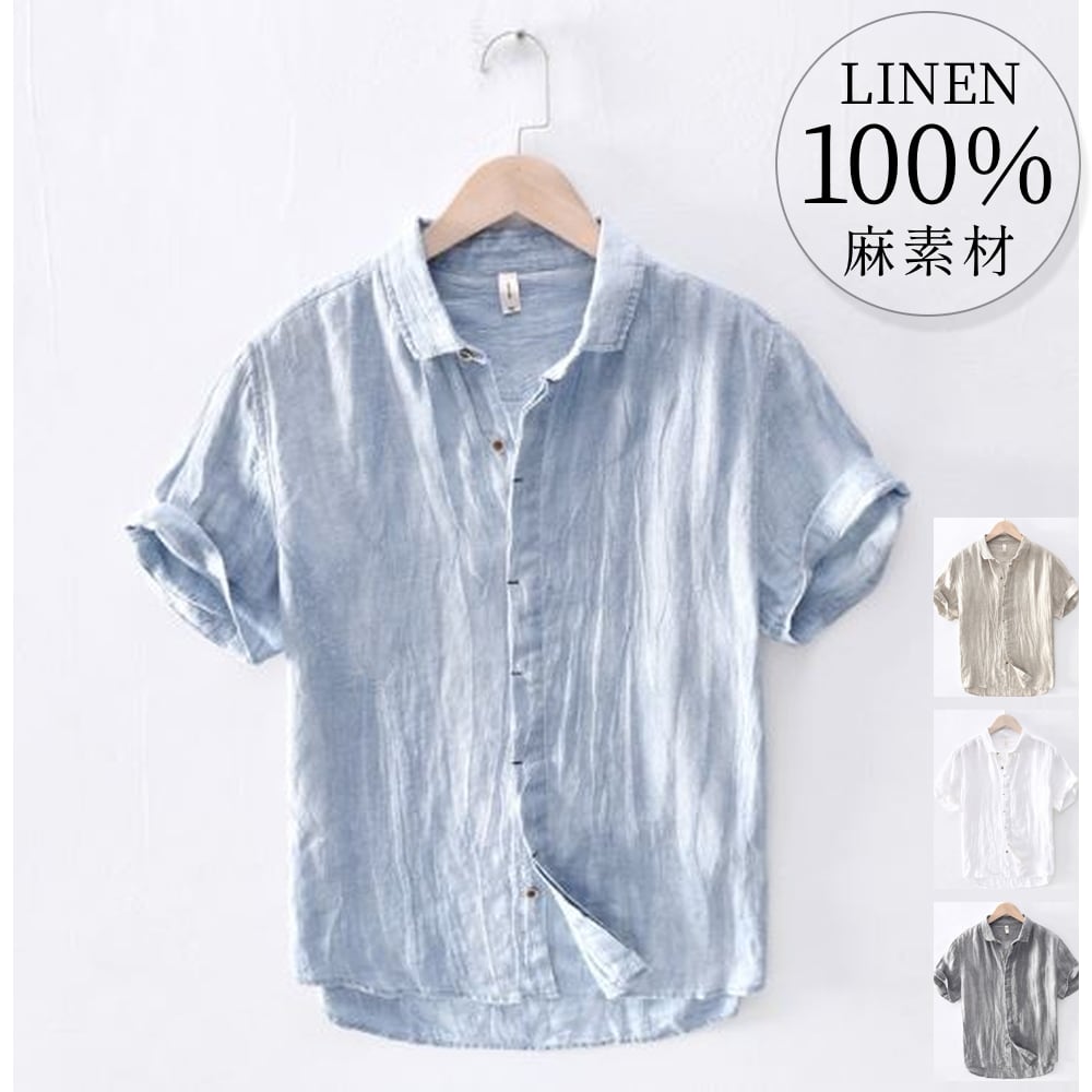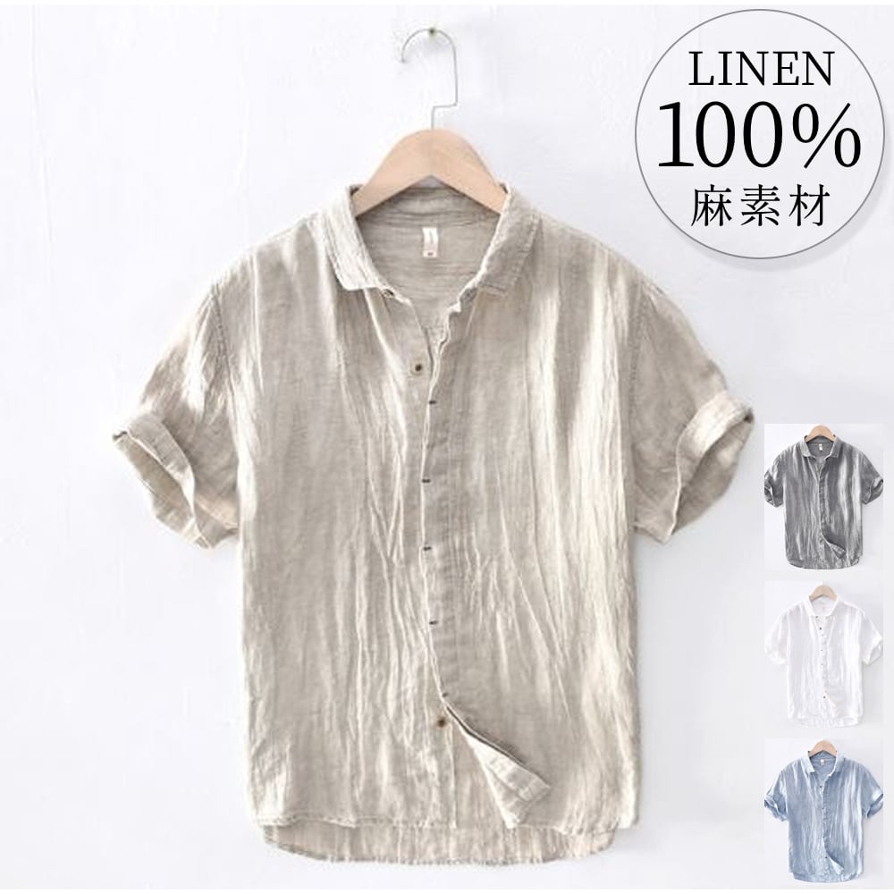 【15%OFF】【ホワイトLサイズのみ即納】<リネン100%>ウォッシュドリネンハーフスリーブシャツ 4色展開