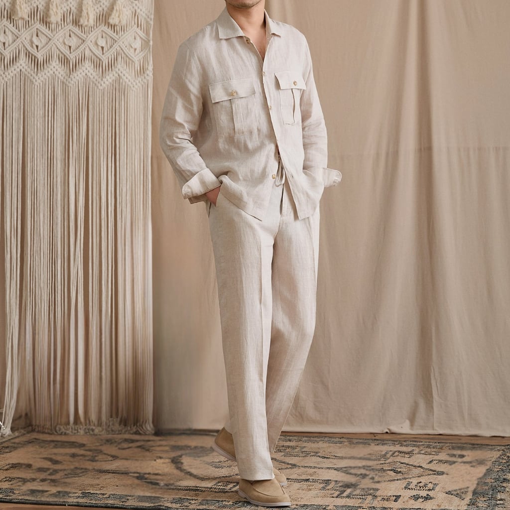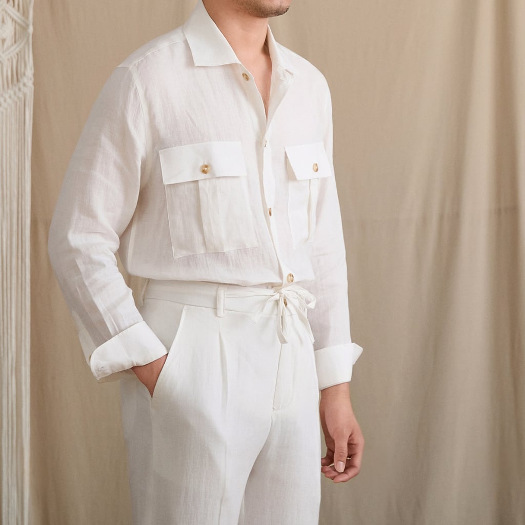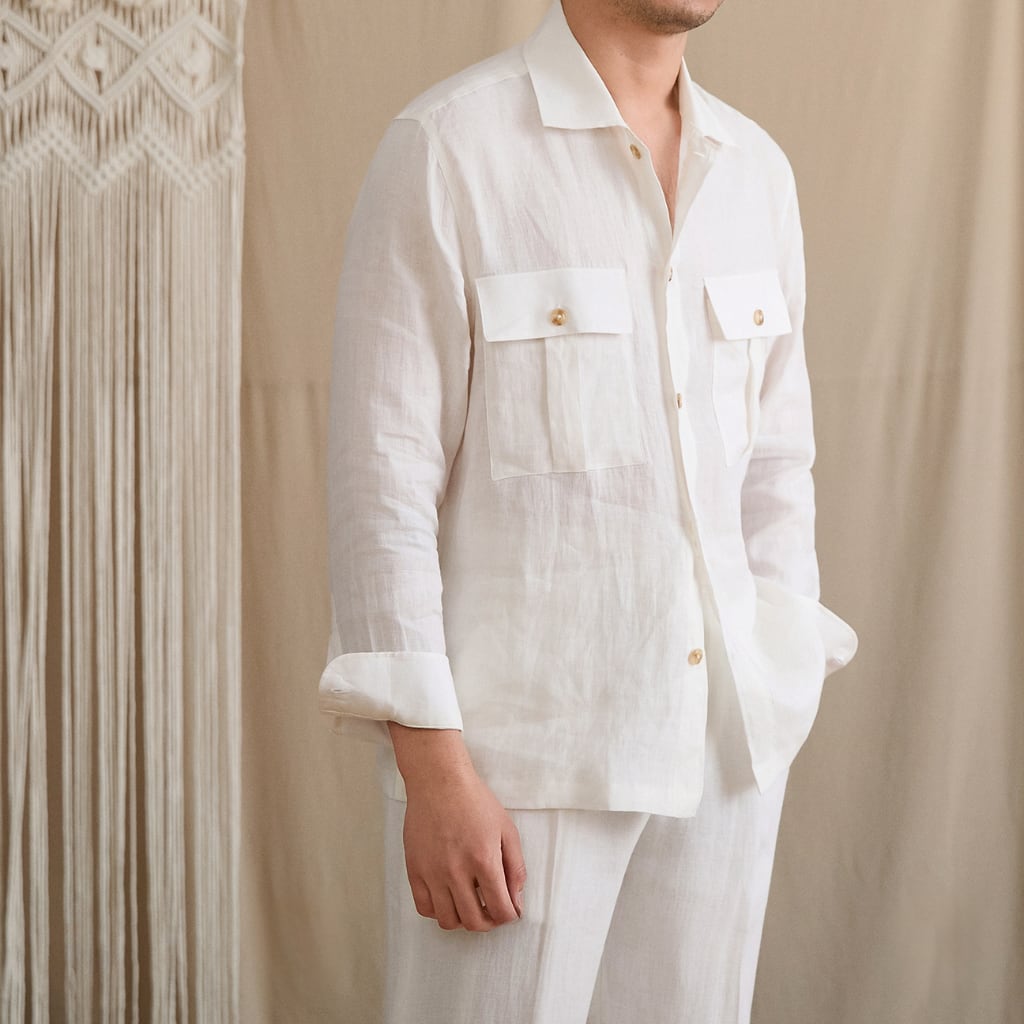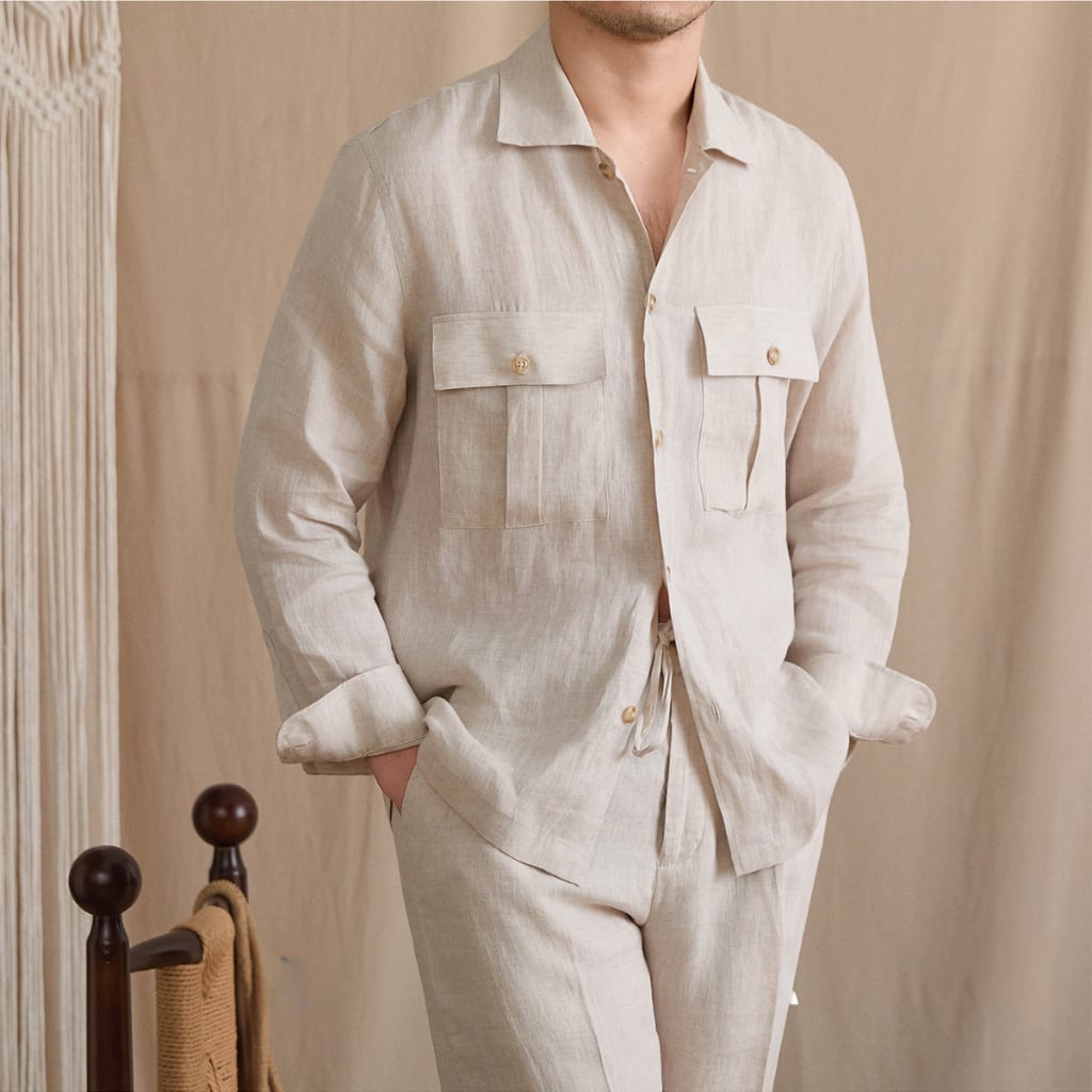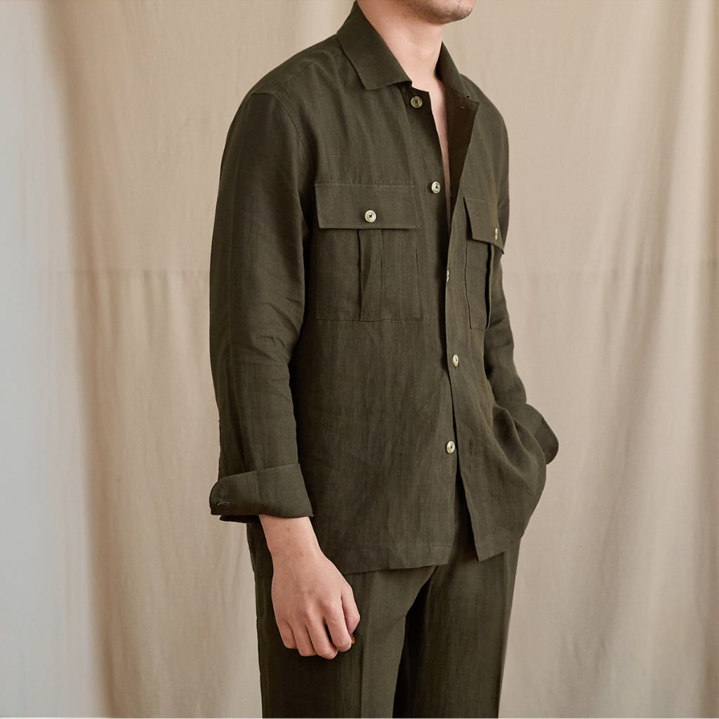 〈リネン100%〉ラグゼジュアリーダブルポケットシャツセットアップ