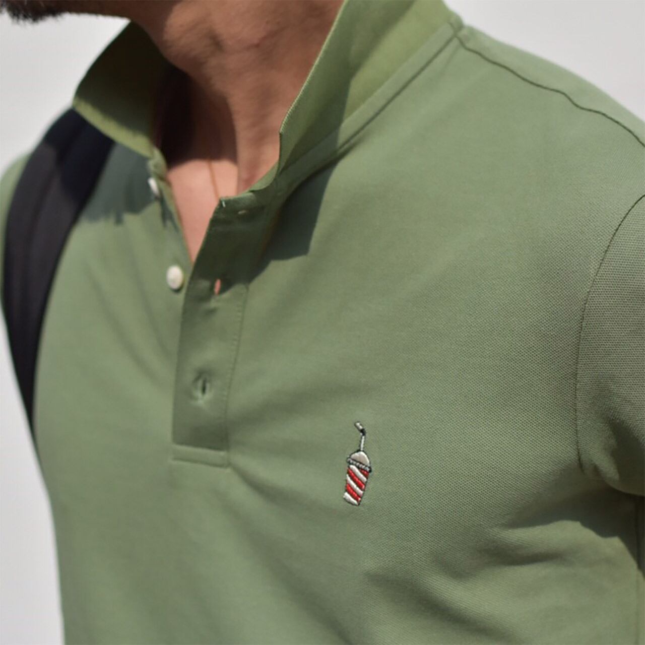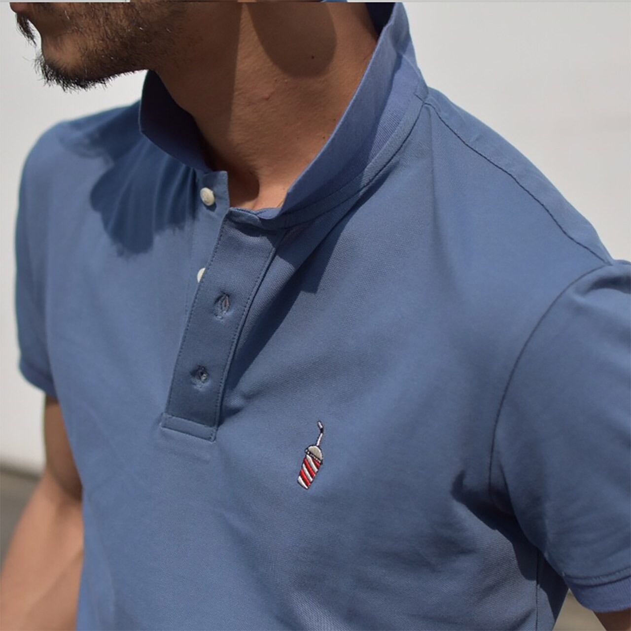 ストレッチの効いたスリムなラインのポロシャツに、胸元には可愛いドリンク刺繍をデザイン☆