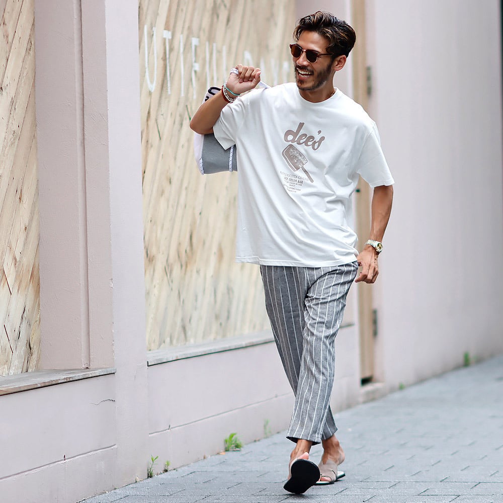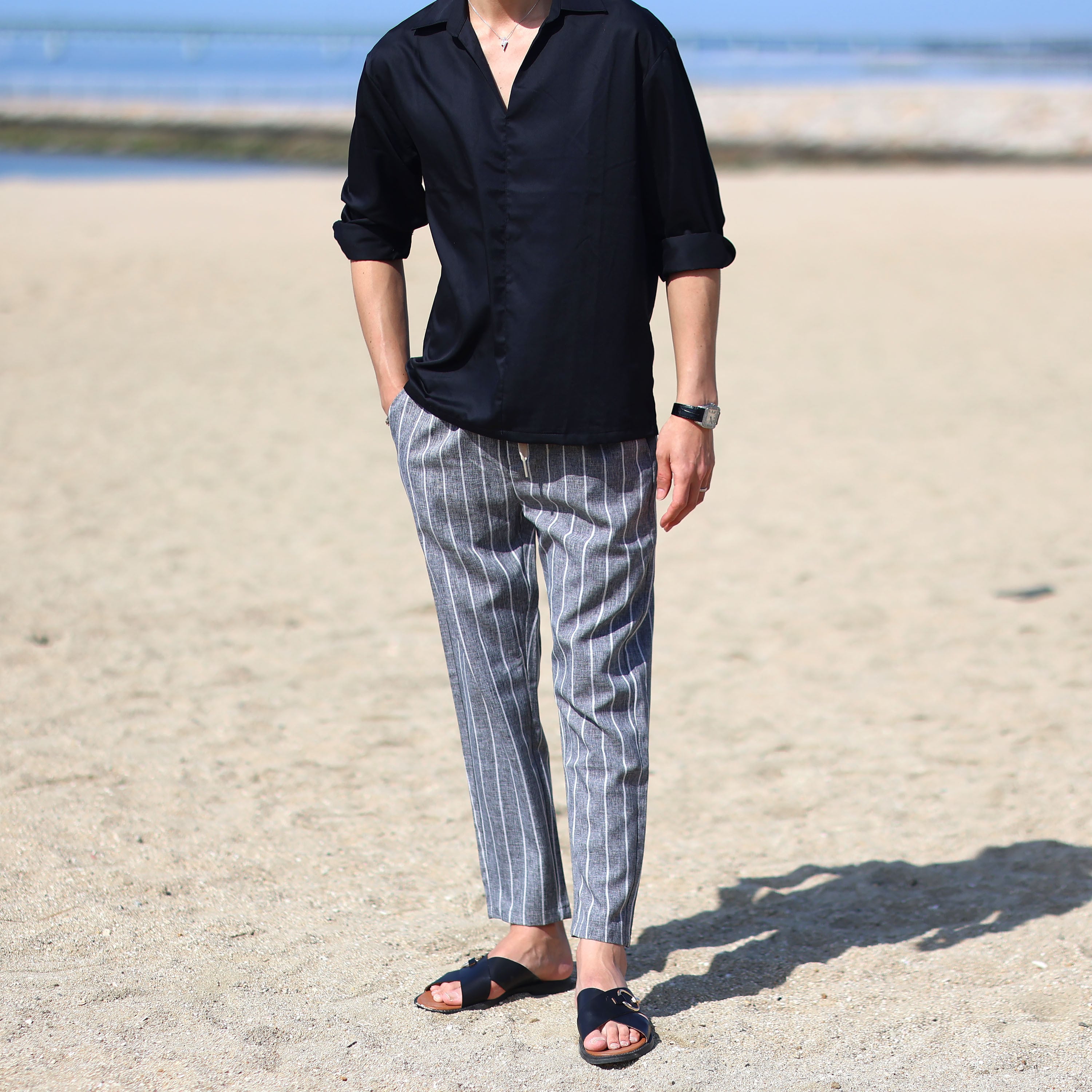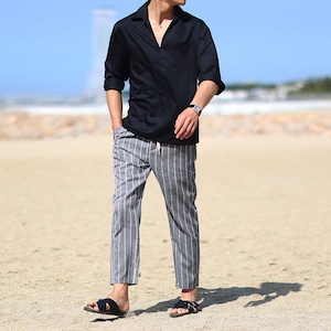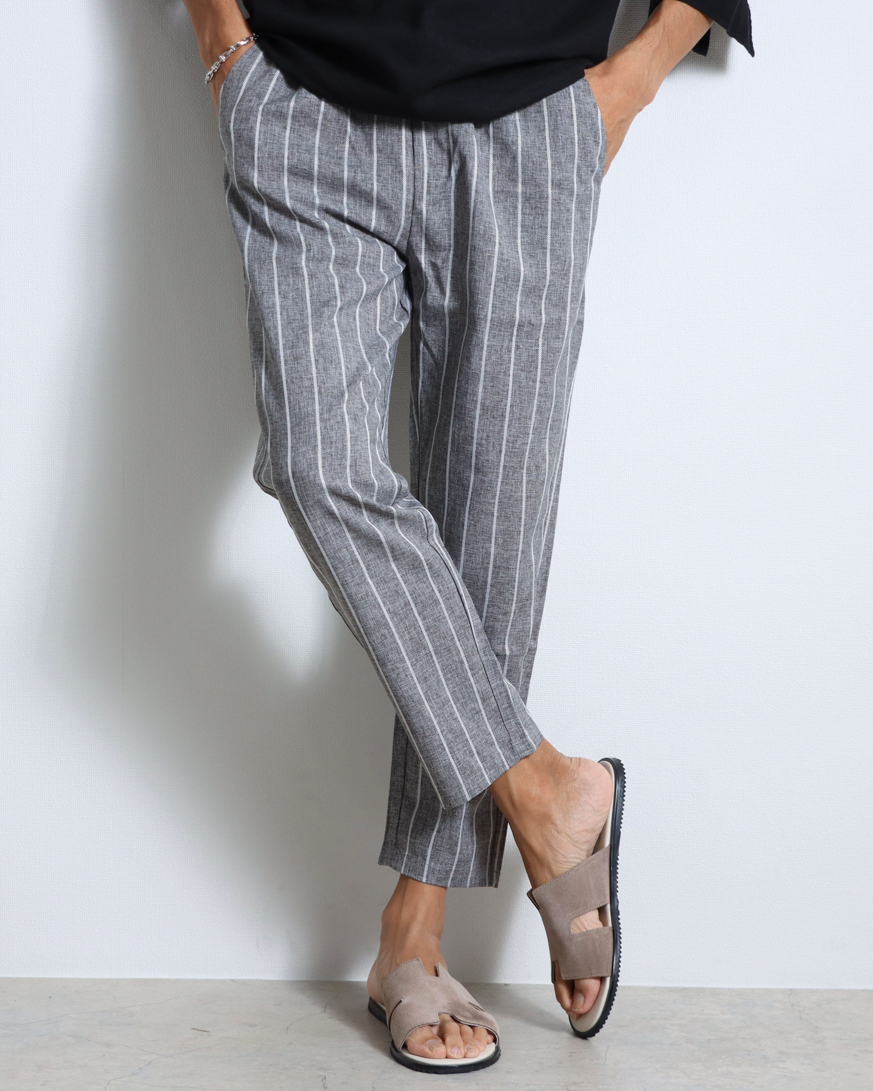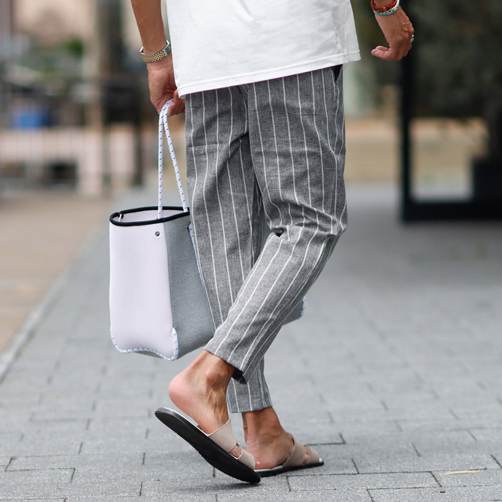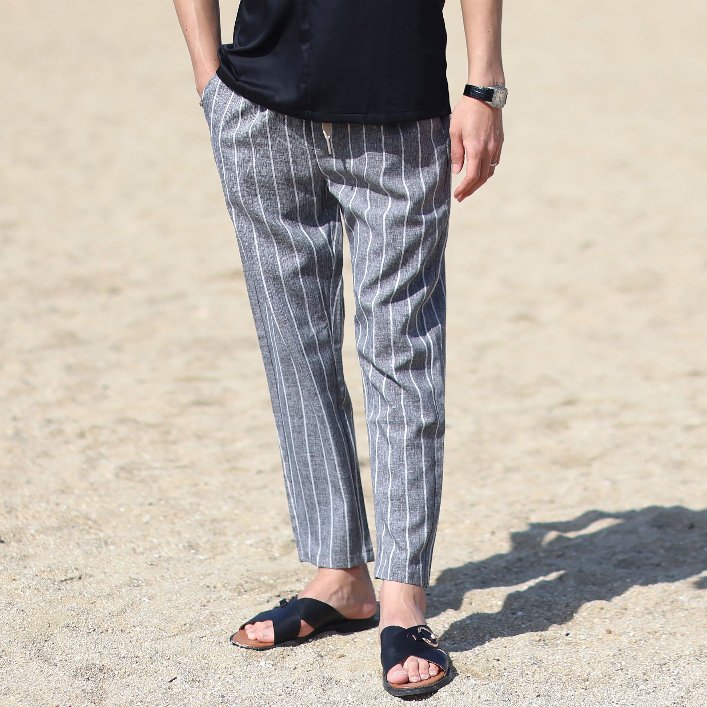 (7480円→6980円)【28サイズ即納】BV_ホワイトストライプグレーサマーパンツ