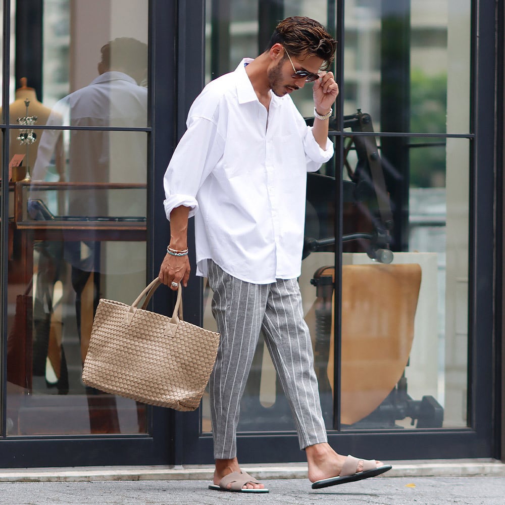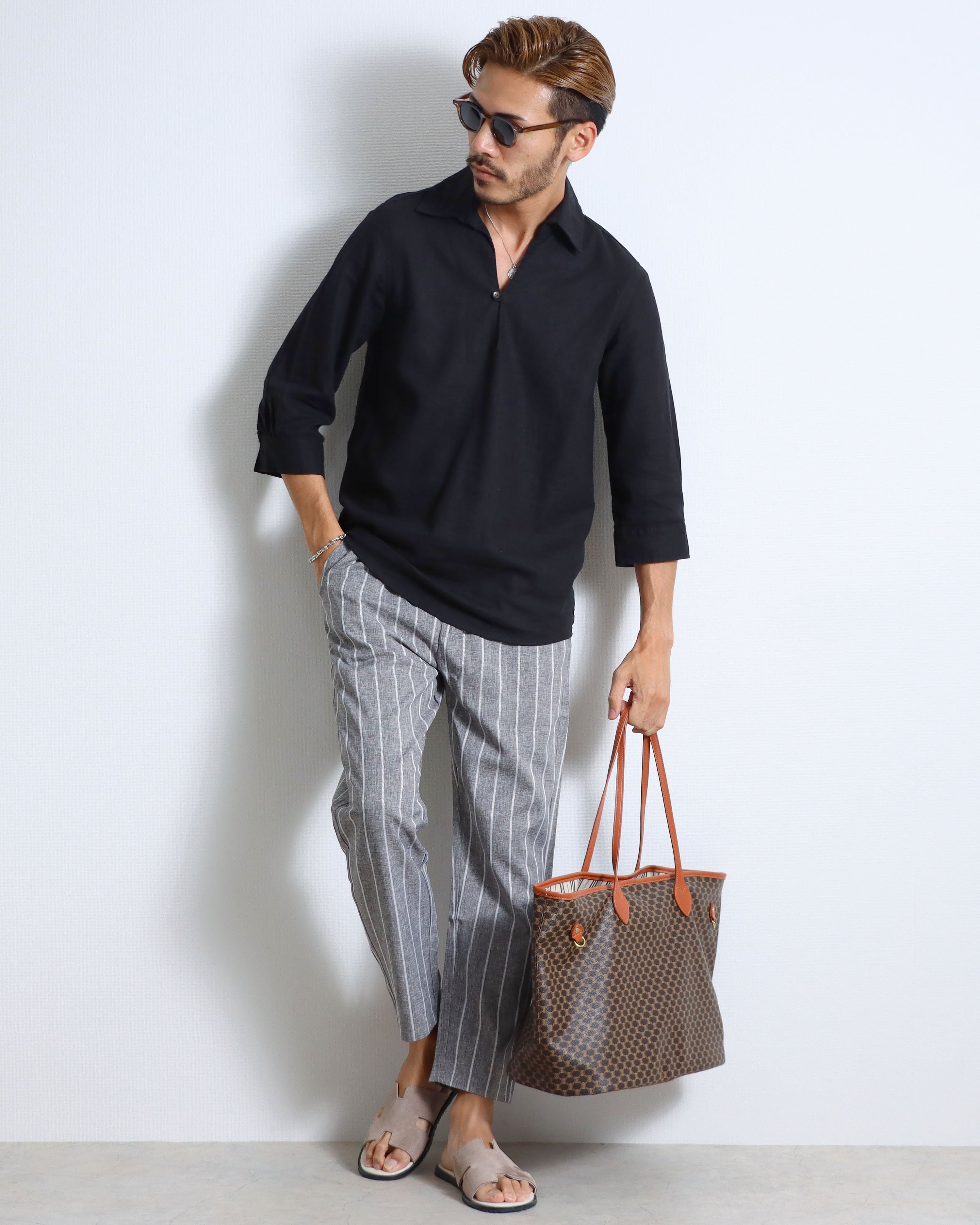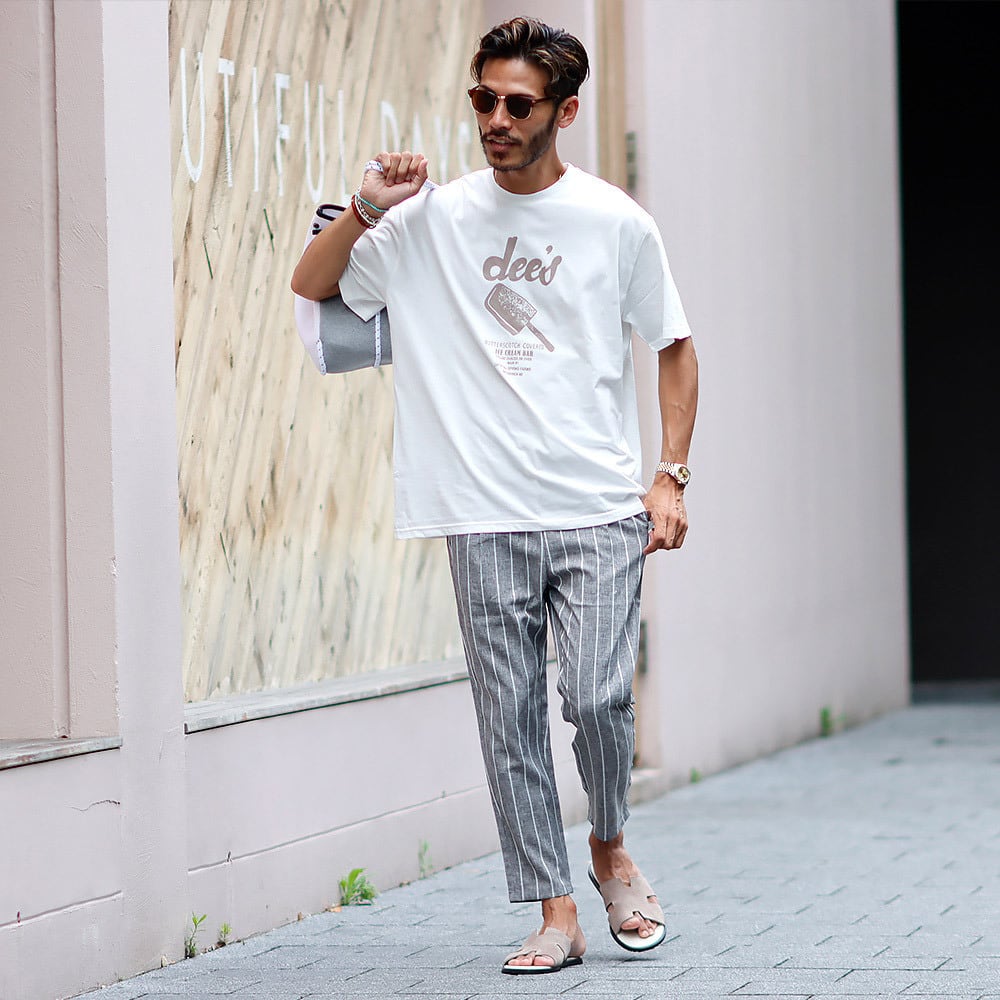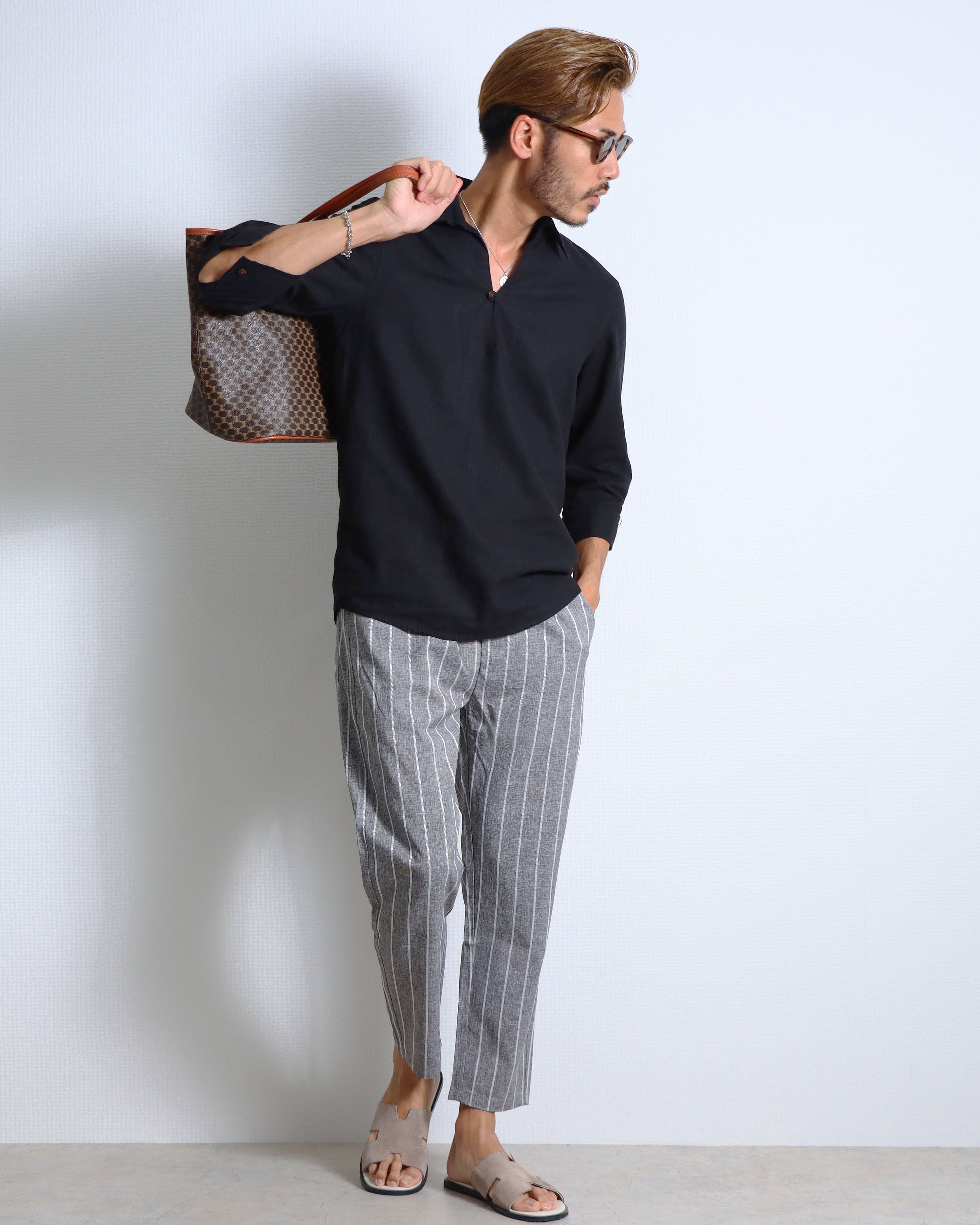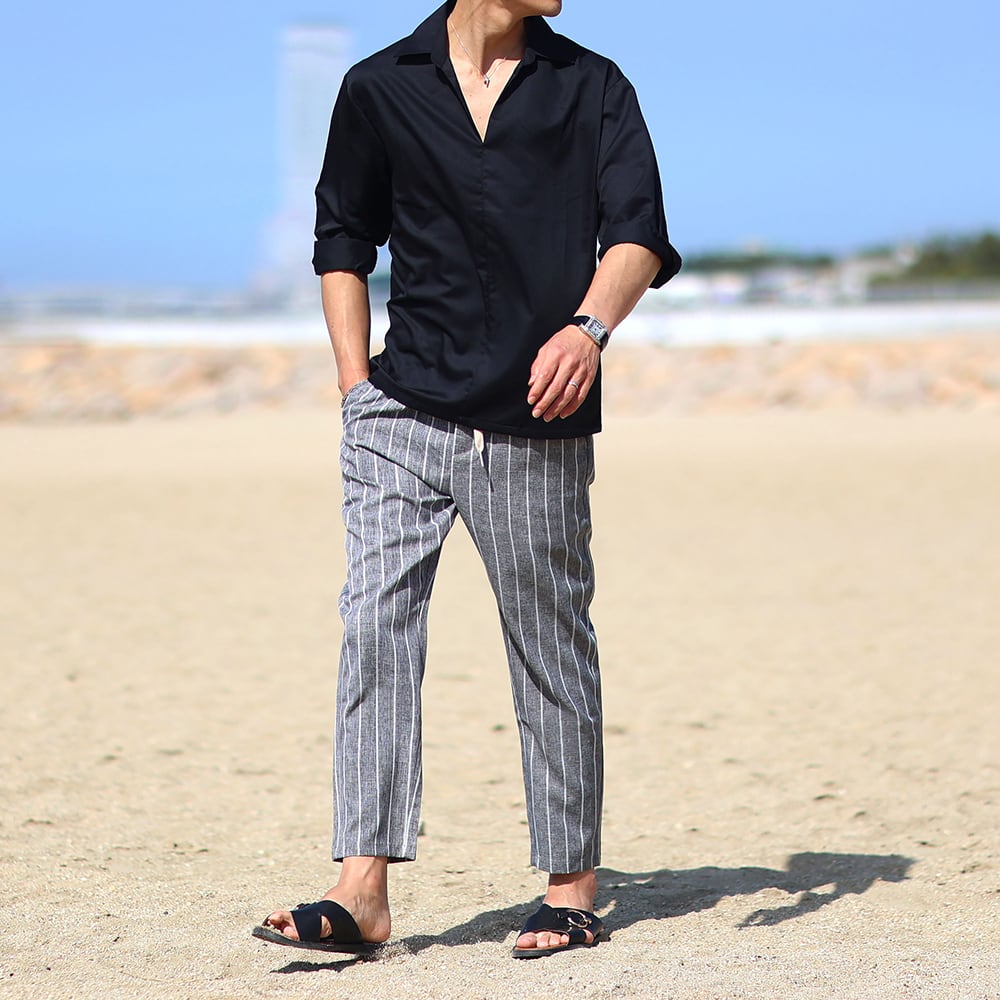 (7480円→6980円)【28サイズ即納】BV_ホワイトストライプグレーサマーパンツ