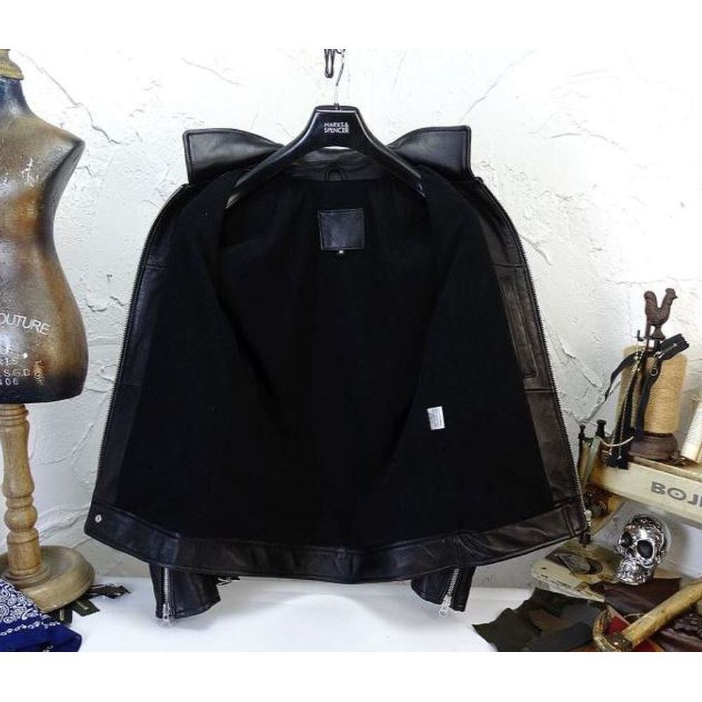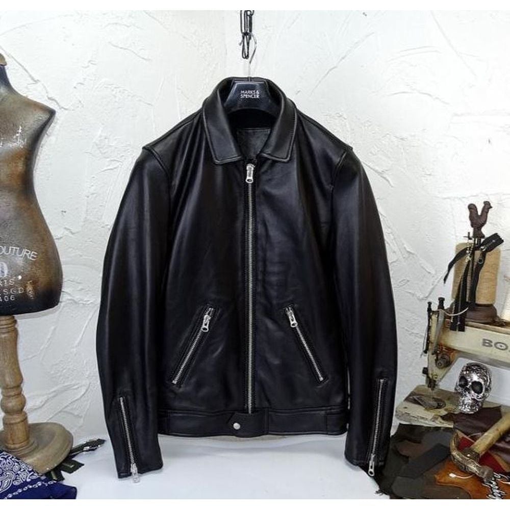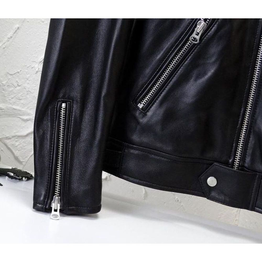 【通常32,800→27,800】上質シープスキン襟付きシングルライダースジャケット