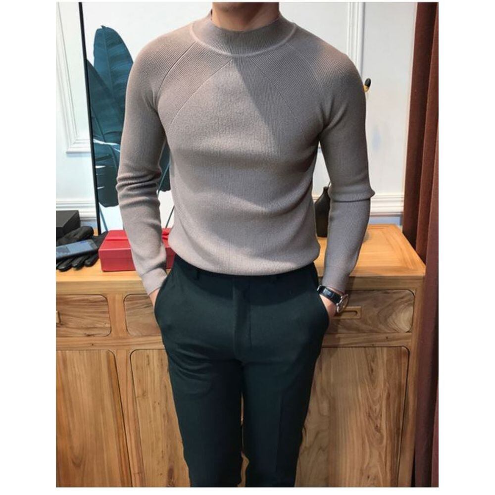 【ブラウンL即納】BV_モックネックシルエットニット 6色展開