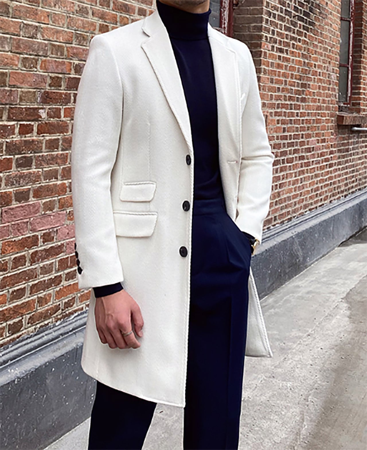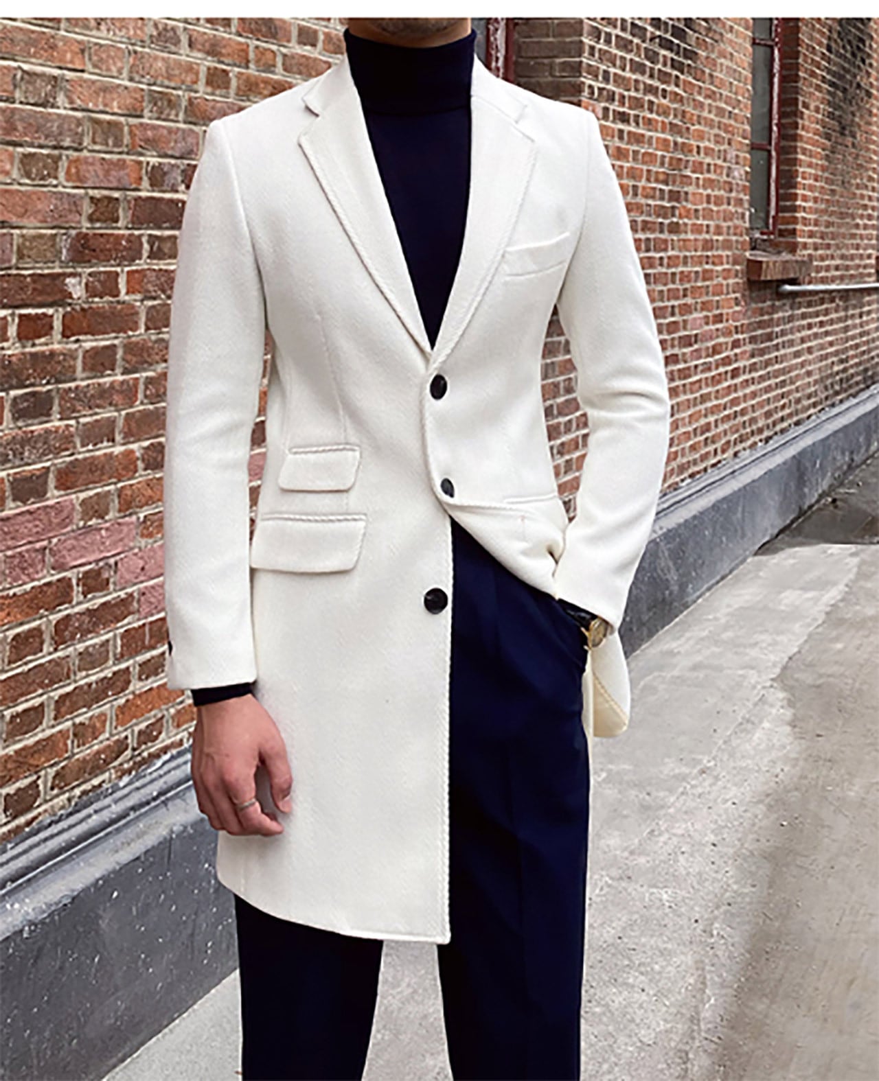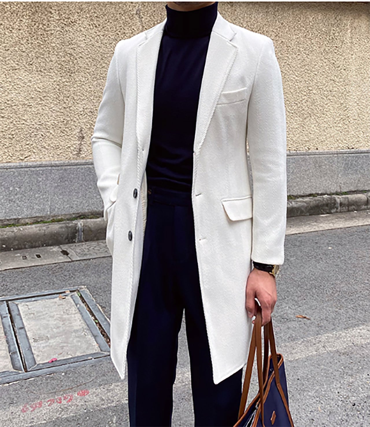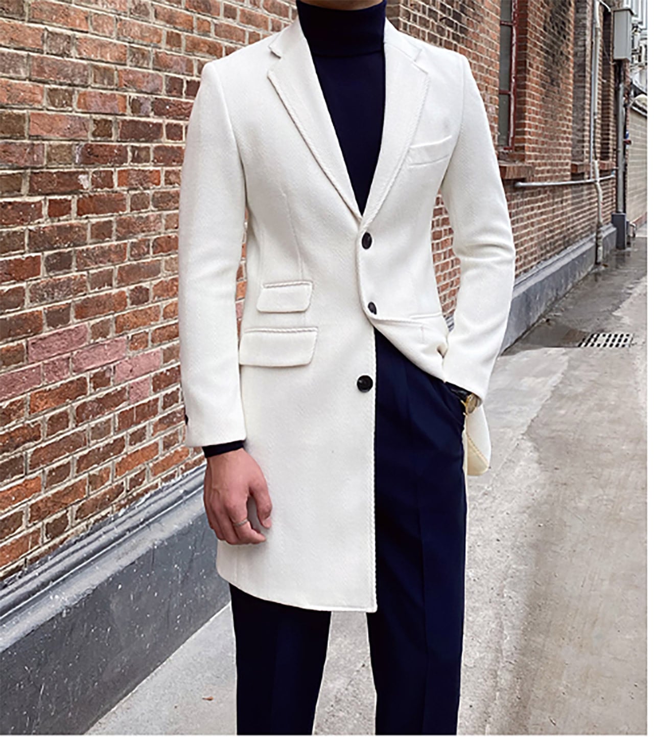 スリムフィットホワイトウールチェスターコート