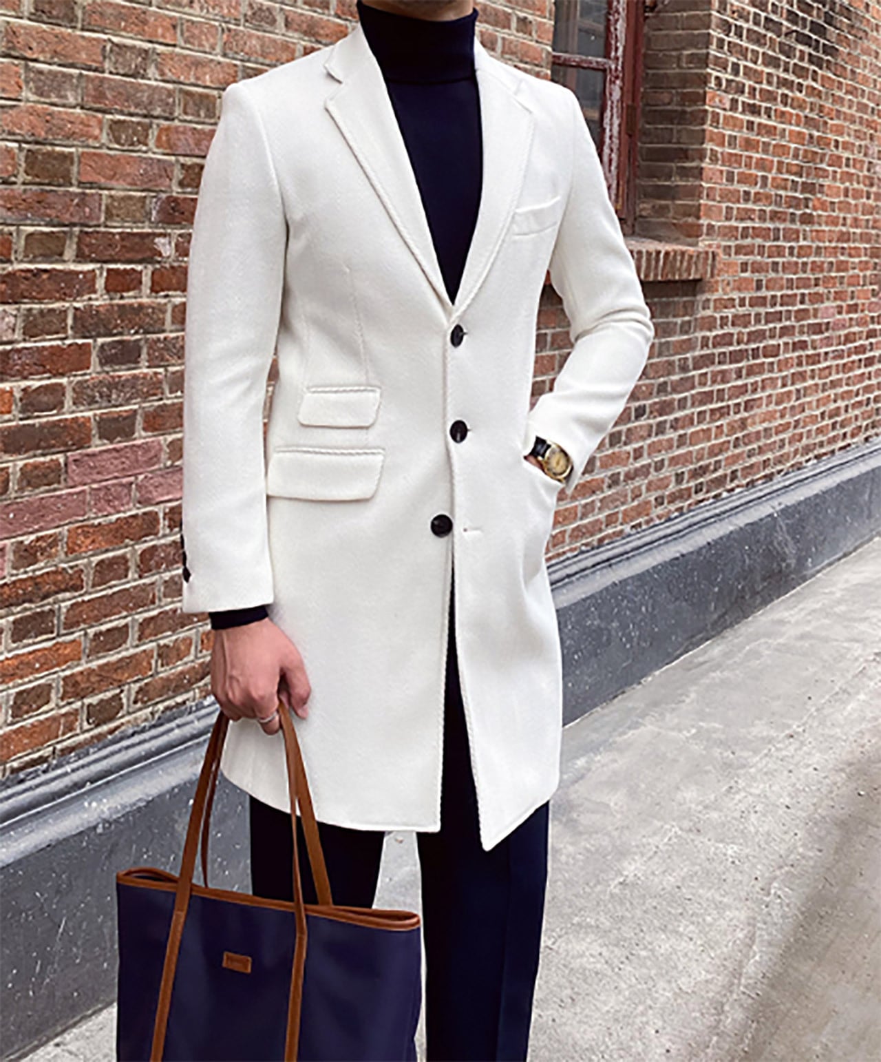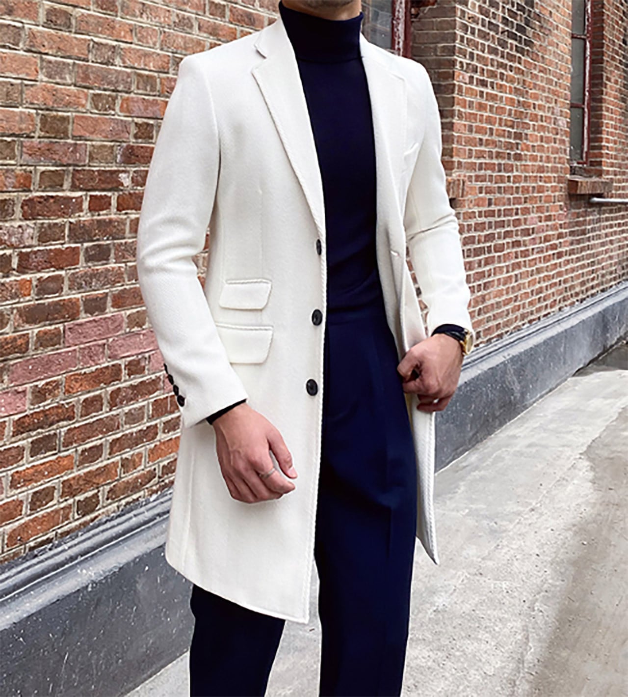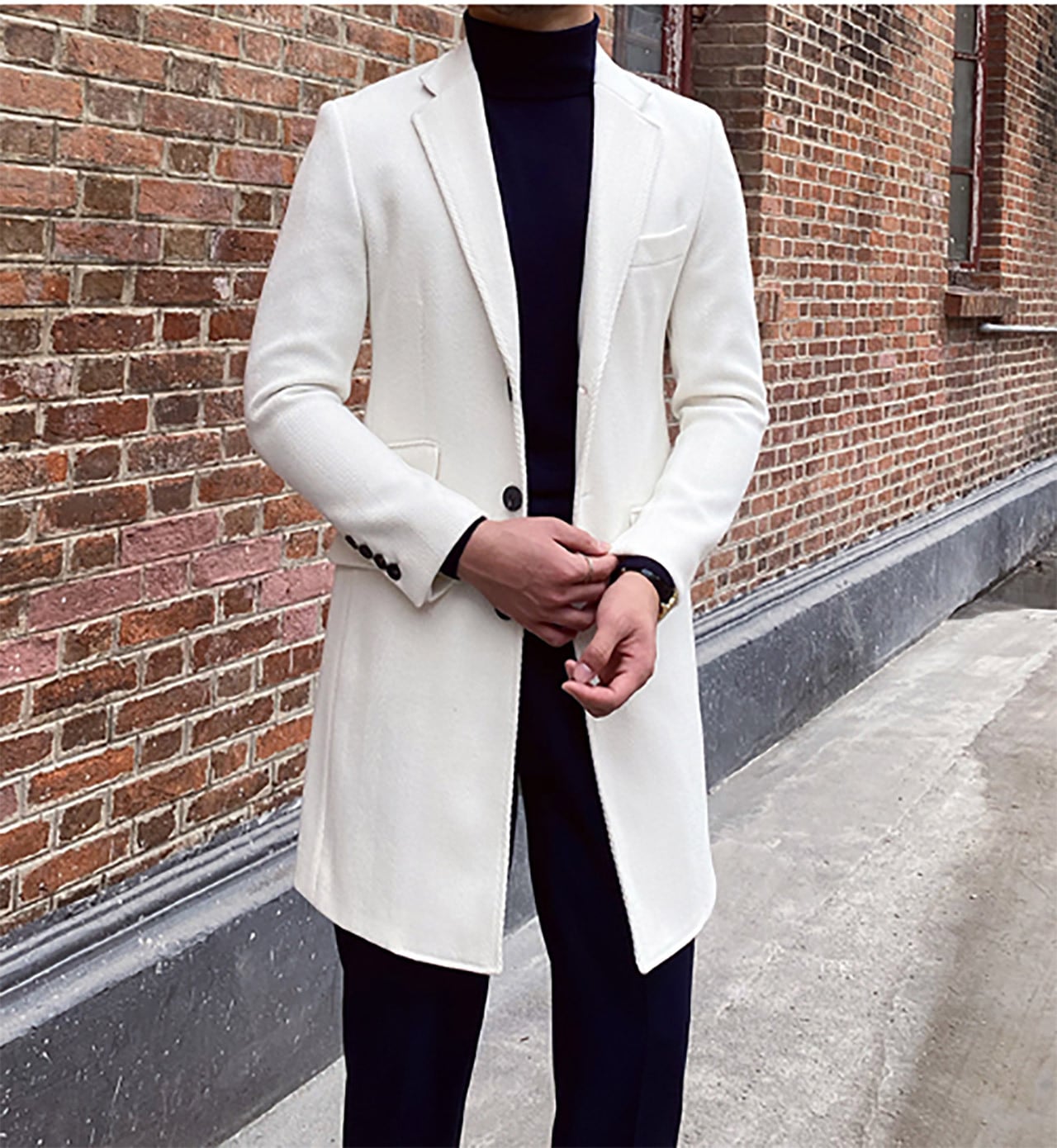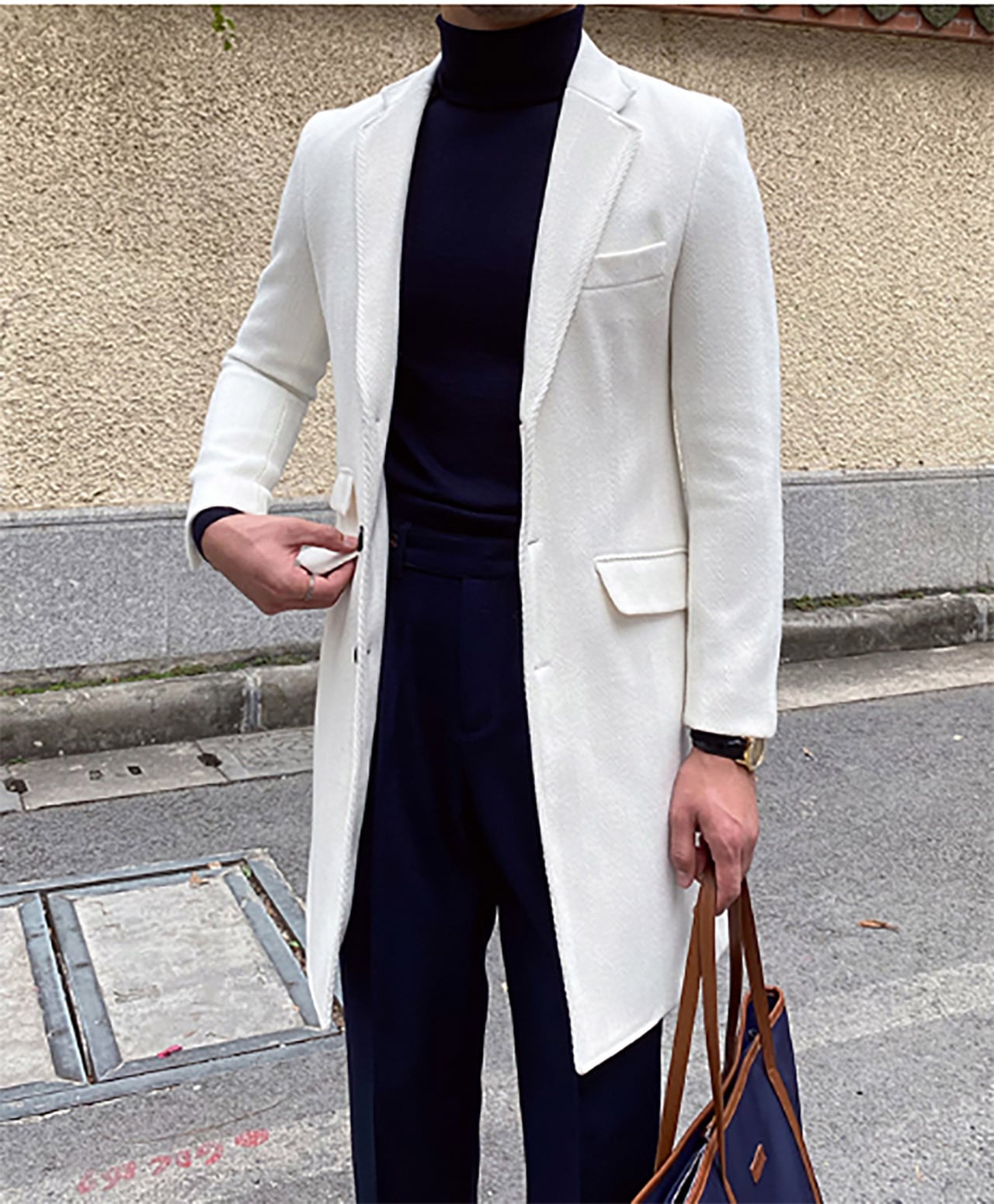 スリムフィットホワイトウールチェスターコート