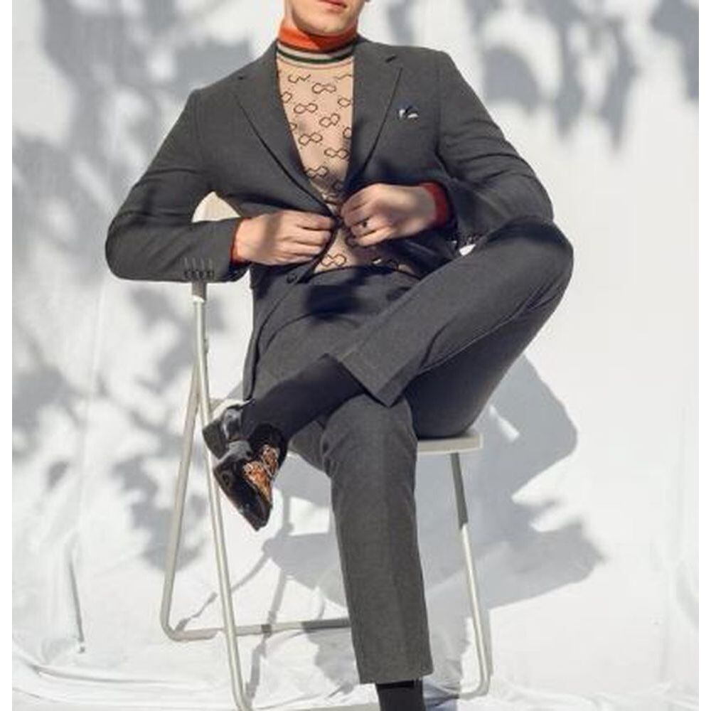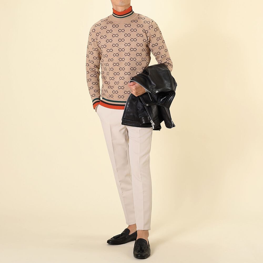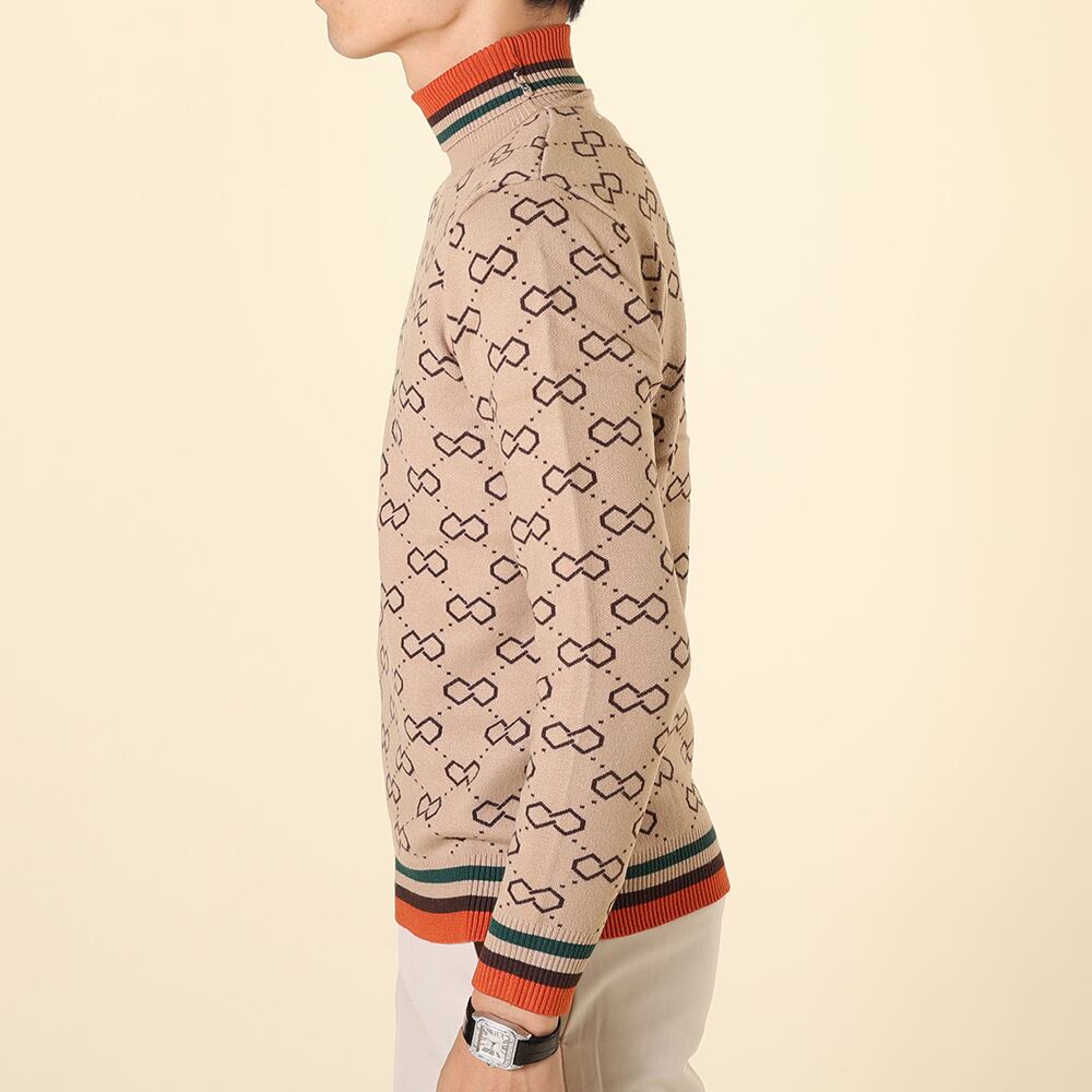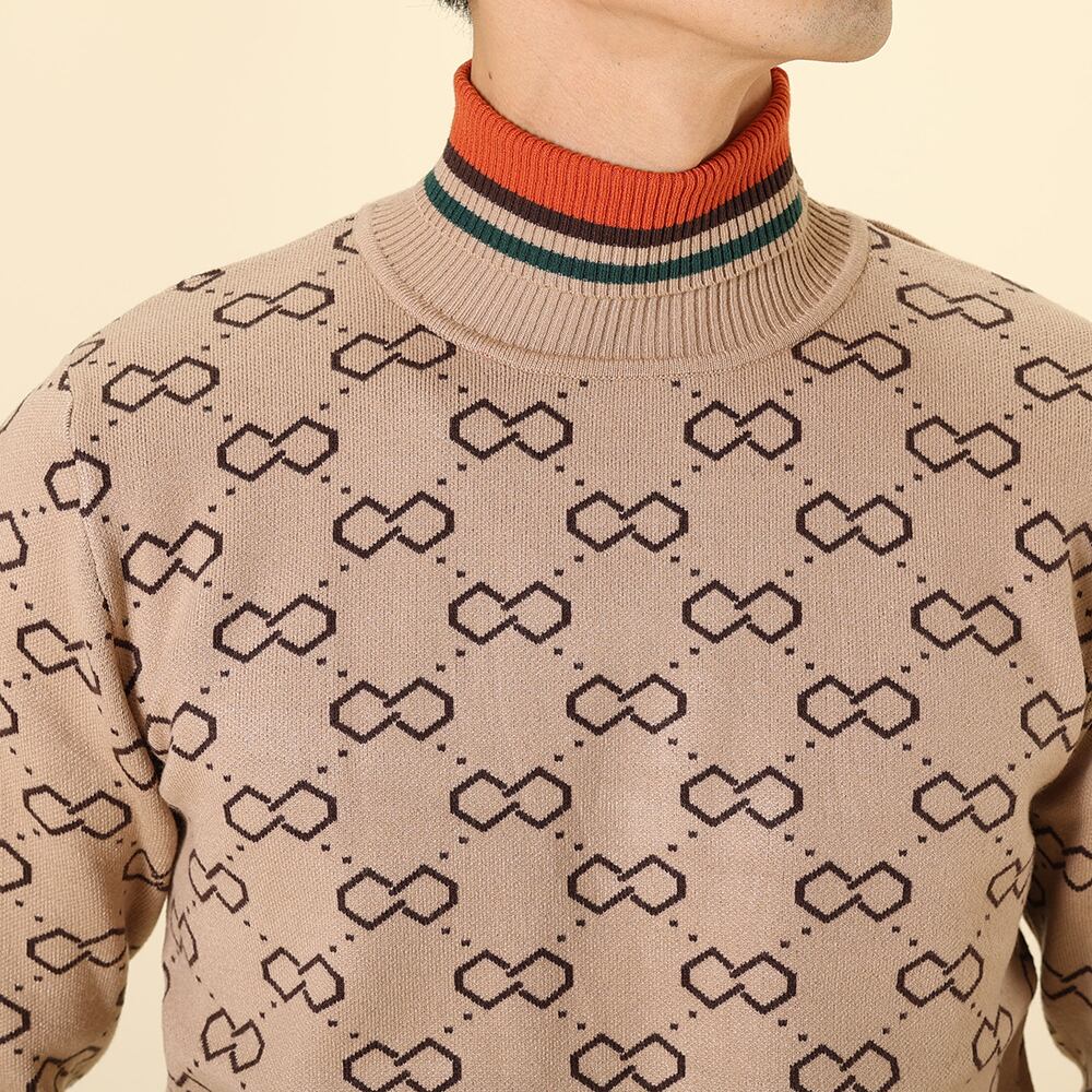 海外ハイブランドでも定番で人気の総柄デザインを取り入れたタートルネックニット。