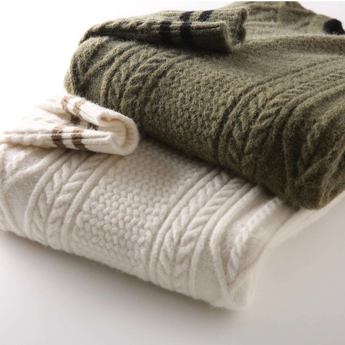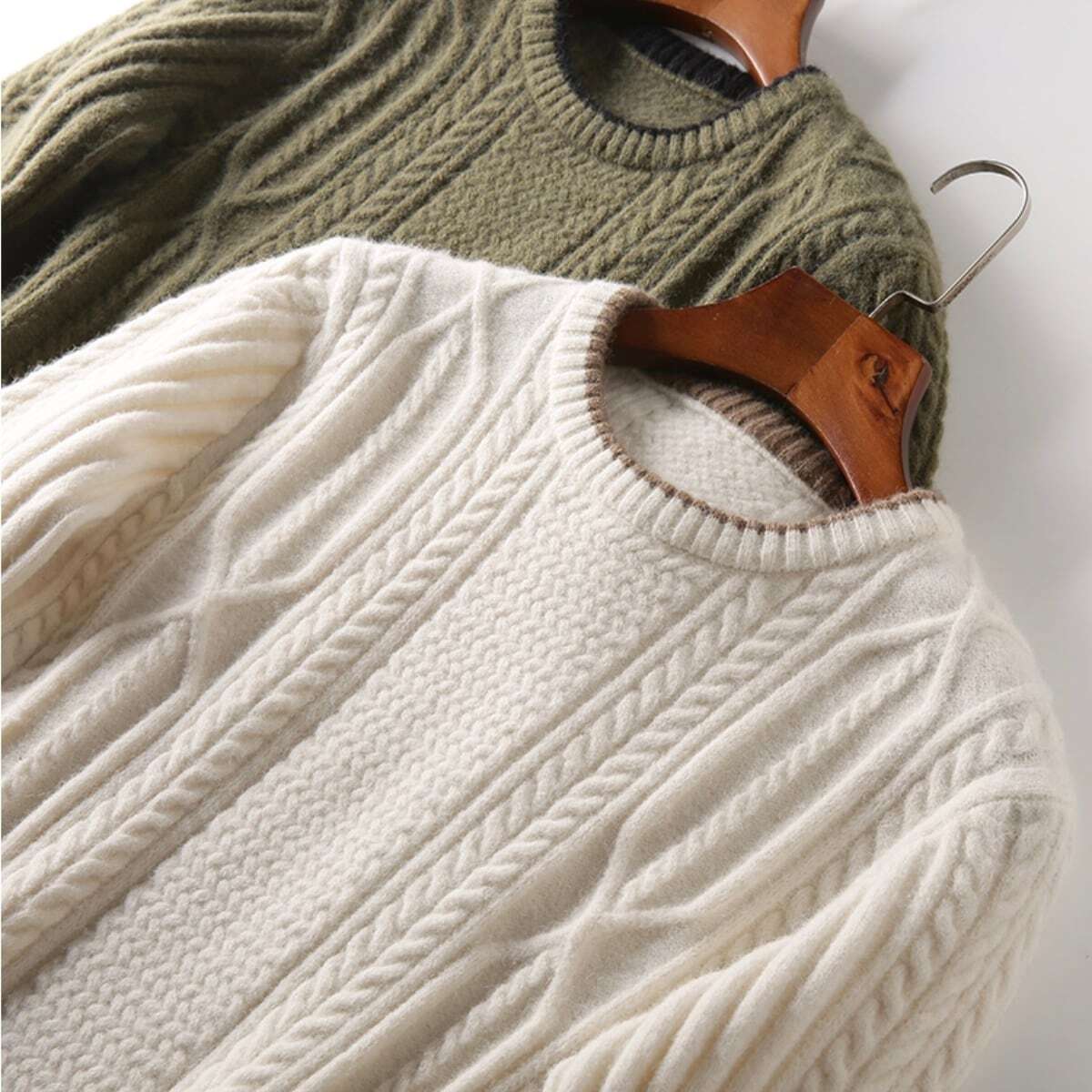 <素肌にも着れる!>高品質デザインスリーブケーブルニット 2色展開