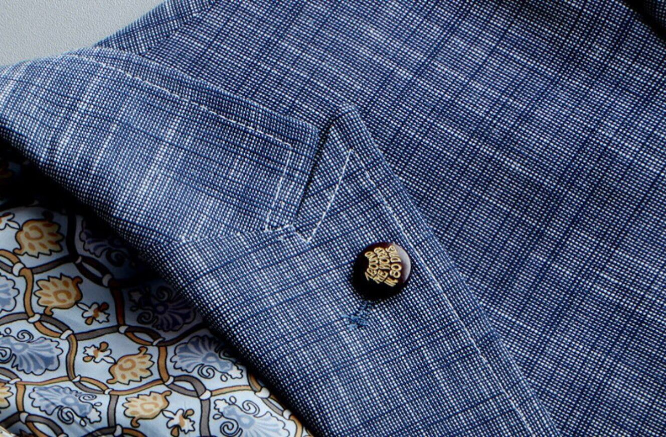 <春夏新作>デニムテイストリネン混テイラードジャケット