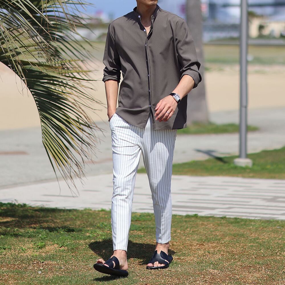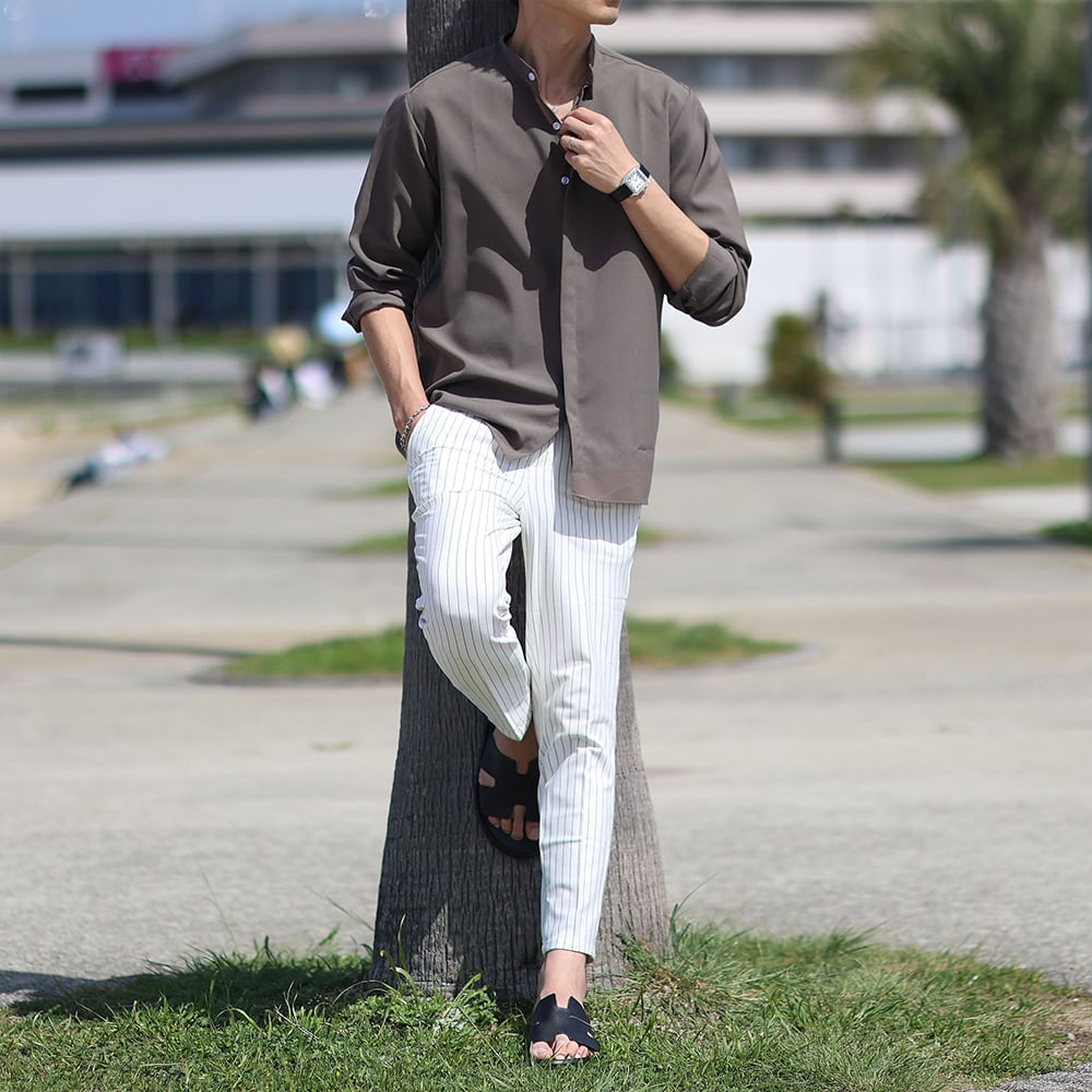 <Safari感抜群!>バンドカラーサファリシャツ 3色展開