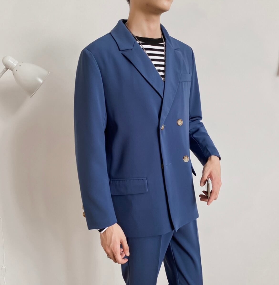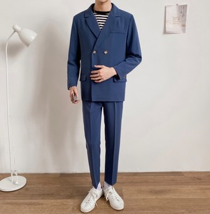 カジュアルダブルブルーセットアップ