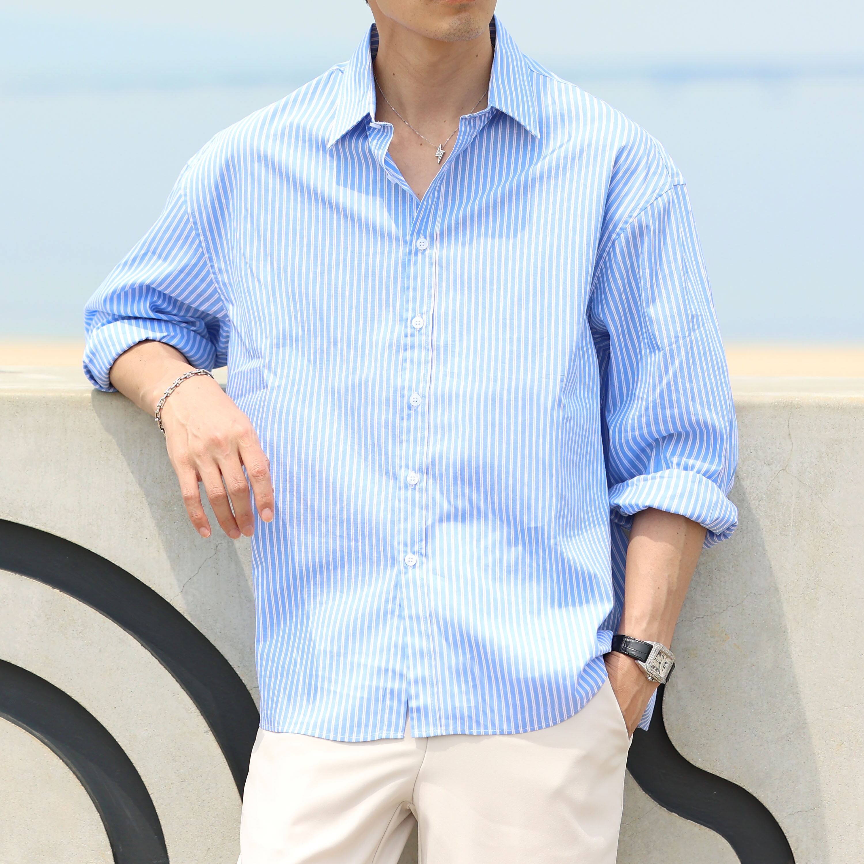 【一部即納】BV_<トレンドシルエット>ゆるシルエットストライプシャツ 2色展開
