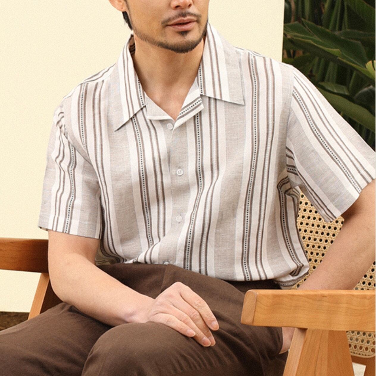 <春夏新作>(高級ライン)キューバカラーストライプリネンシャツ 2色展開