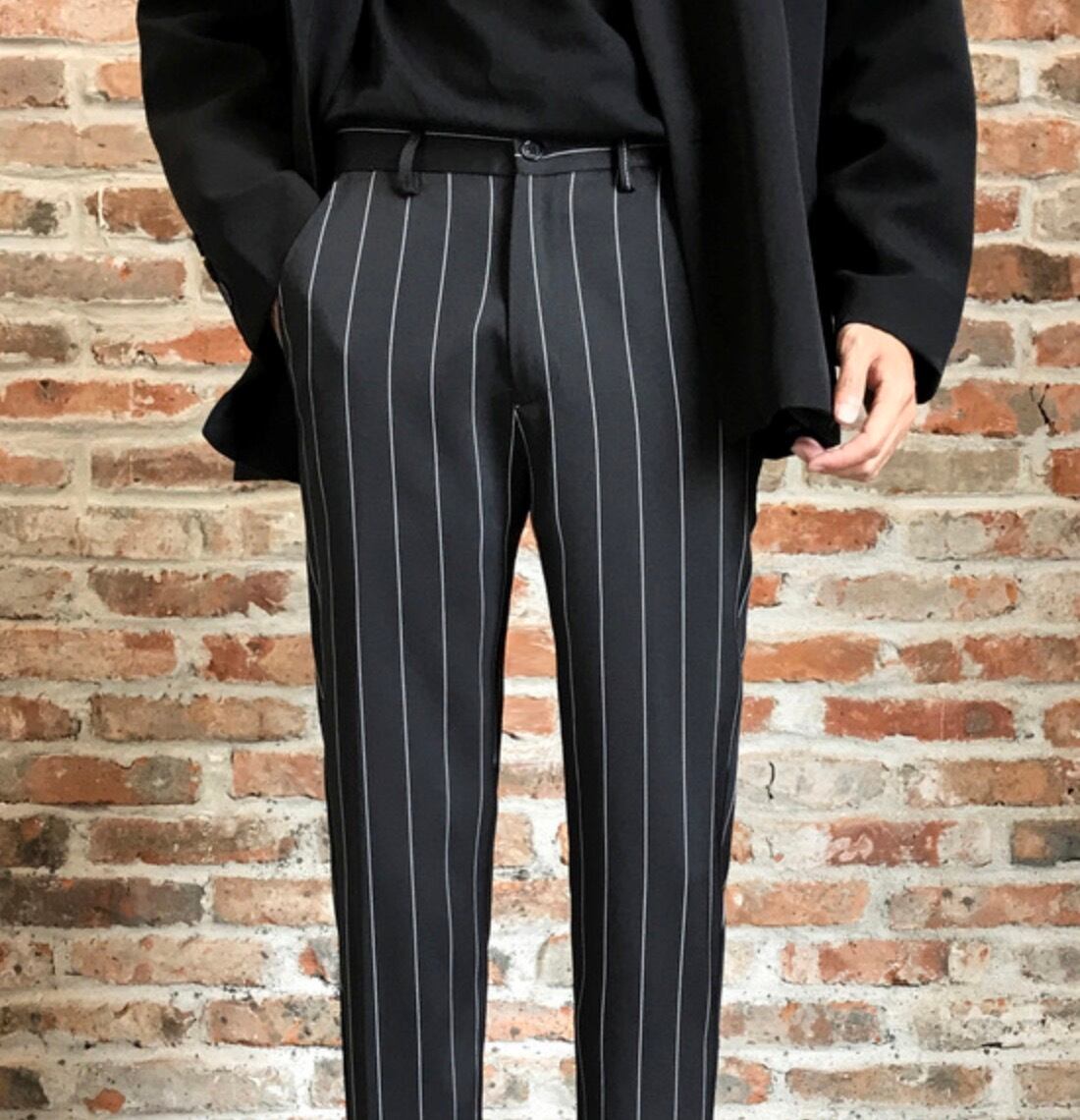 <ノンアイロン素材>ボールドピッチ9分丈ストライプスラックス