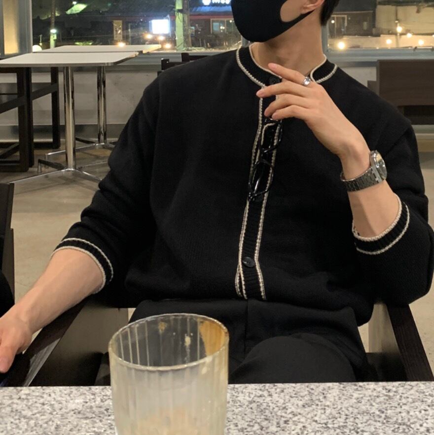 バイカラーバンドカラーニット