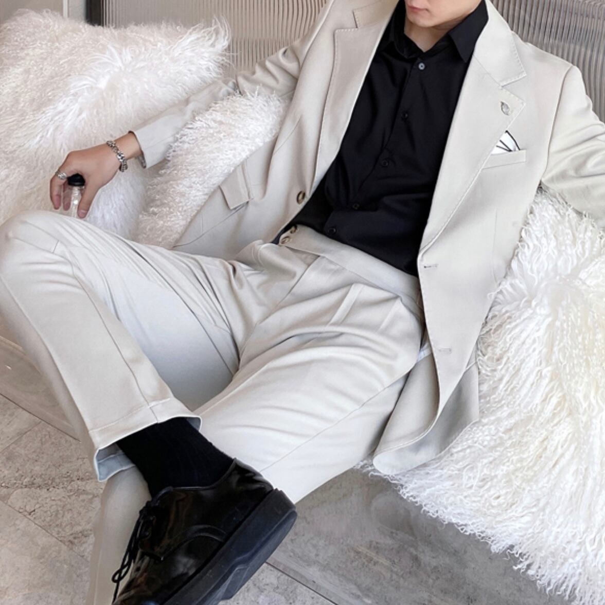 【XLサイズのみ1点即納】BV_ラグジュアリーデザインシングルベルトレススーツ