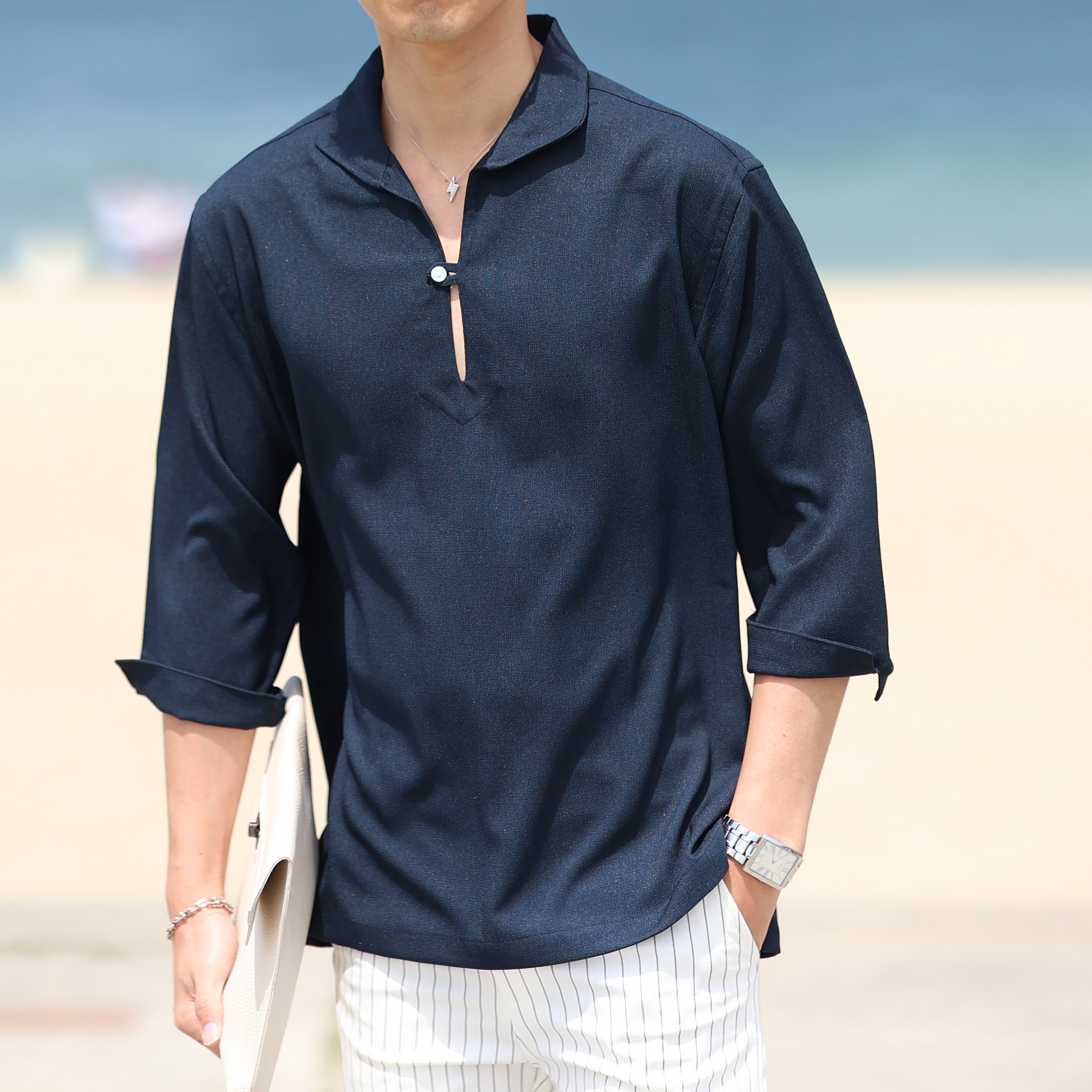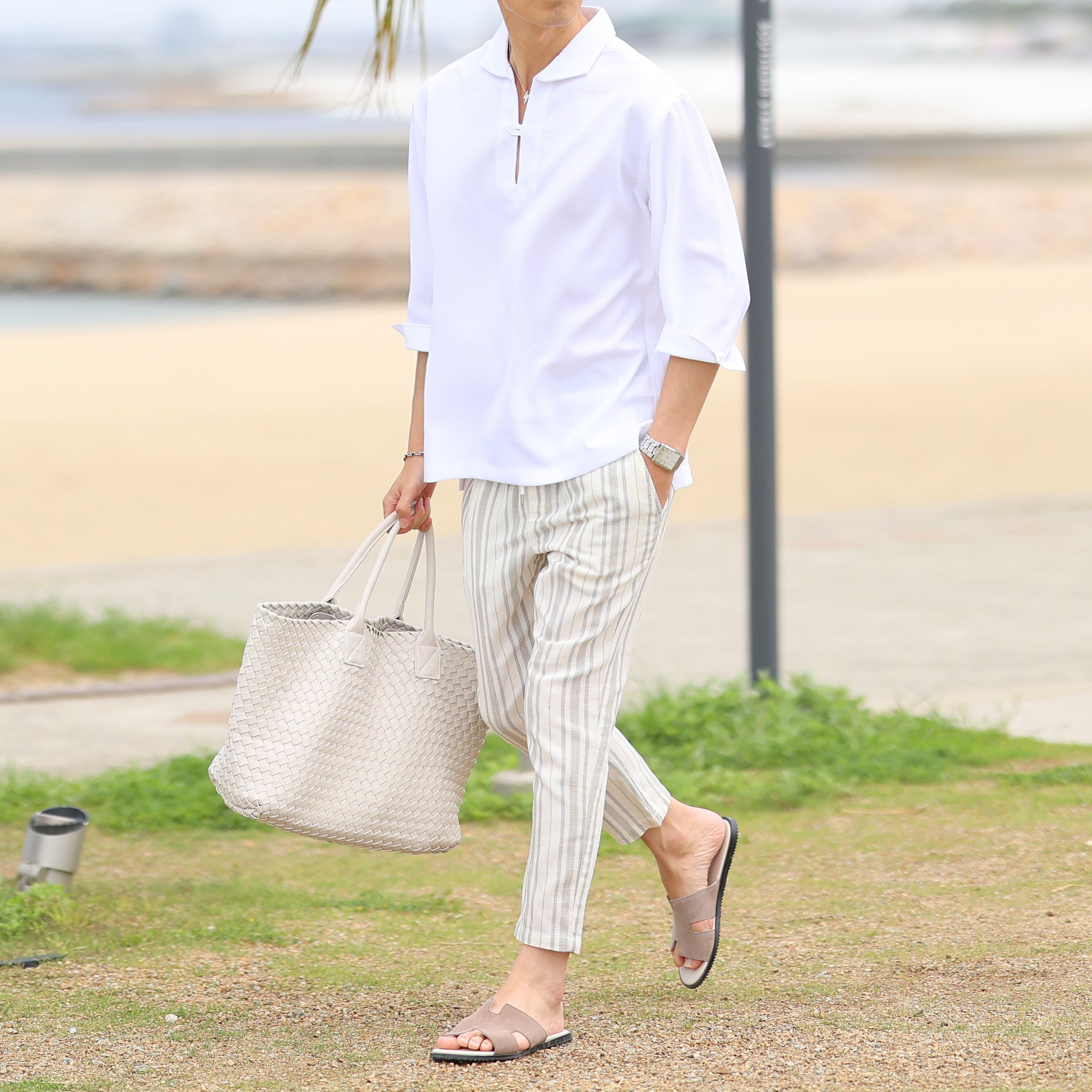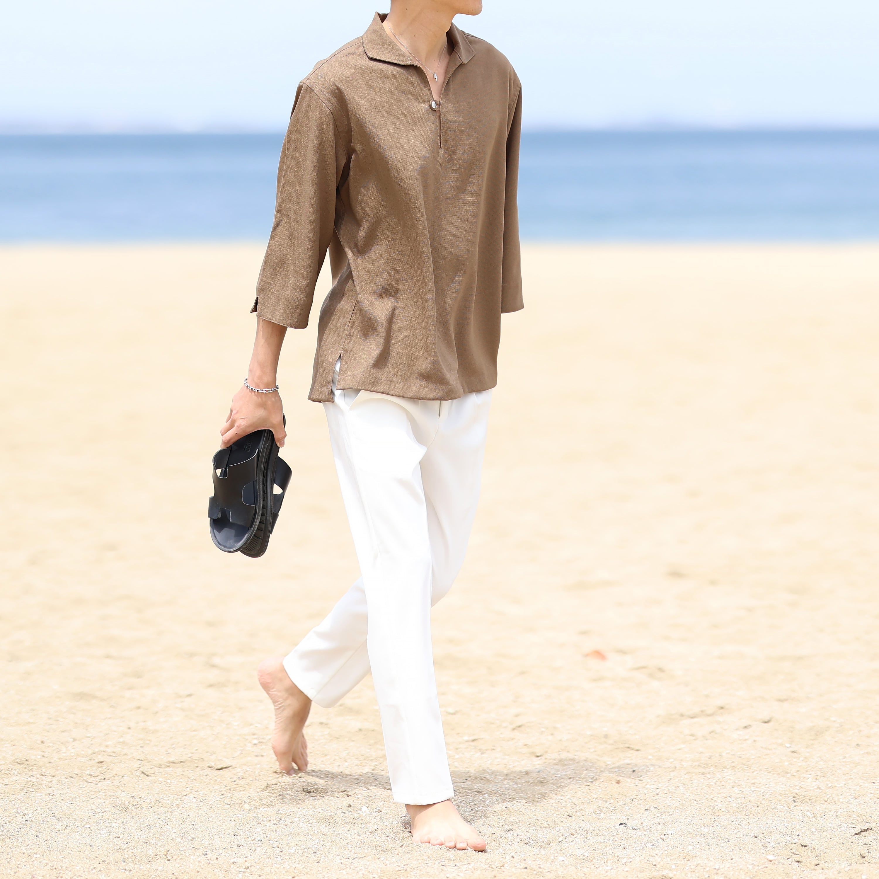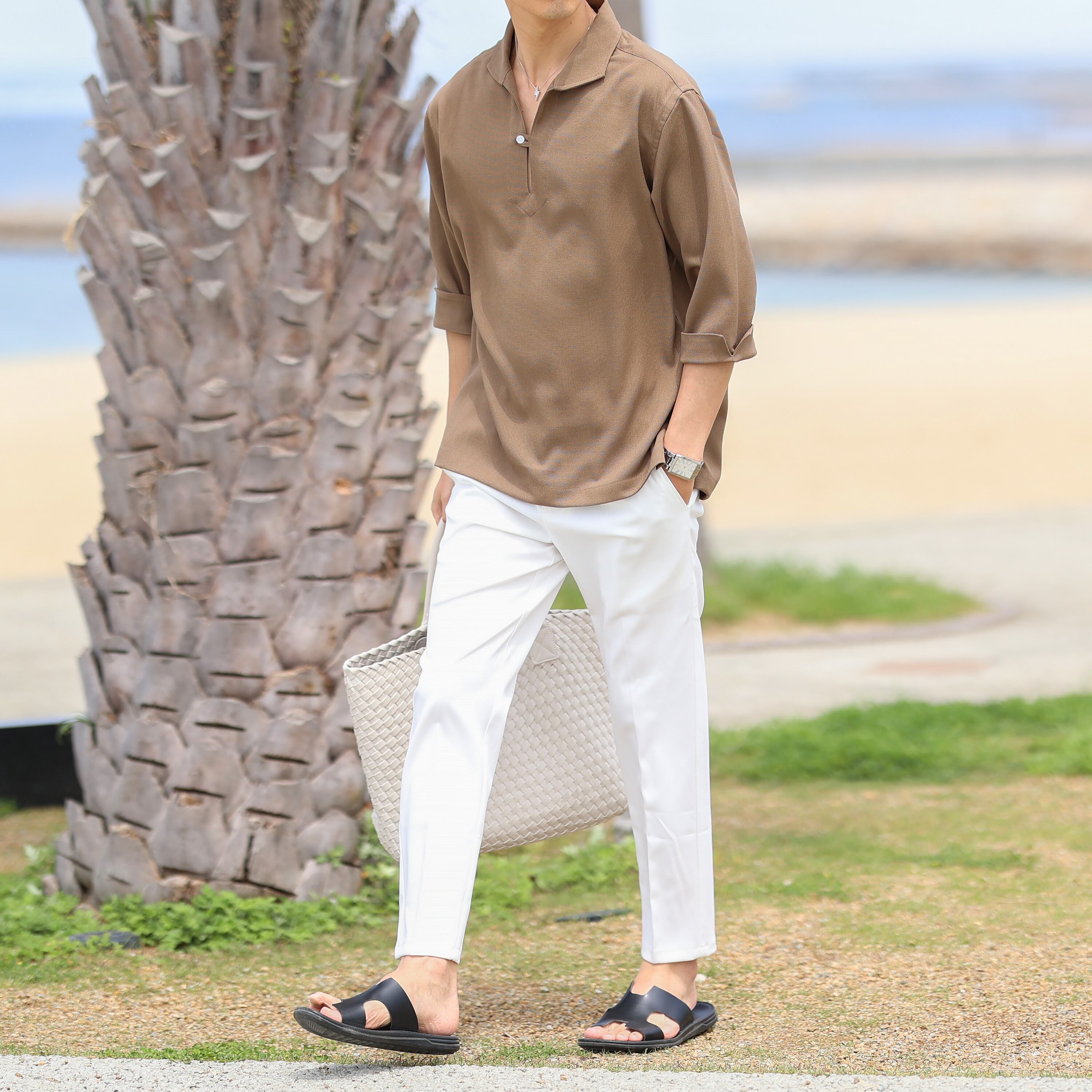 さらに、カプリ丈で袖をまくった際のバランスも抜群。4色展開で、自分らしいスタイルを楽しむことができます。この夏、最高の軽装で、リフレッシュしていただければ幸いです。