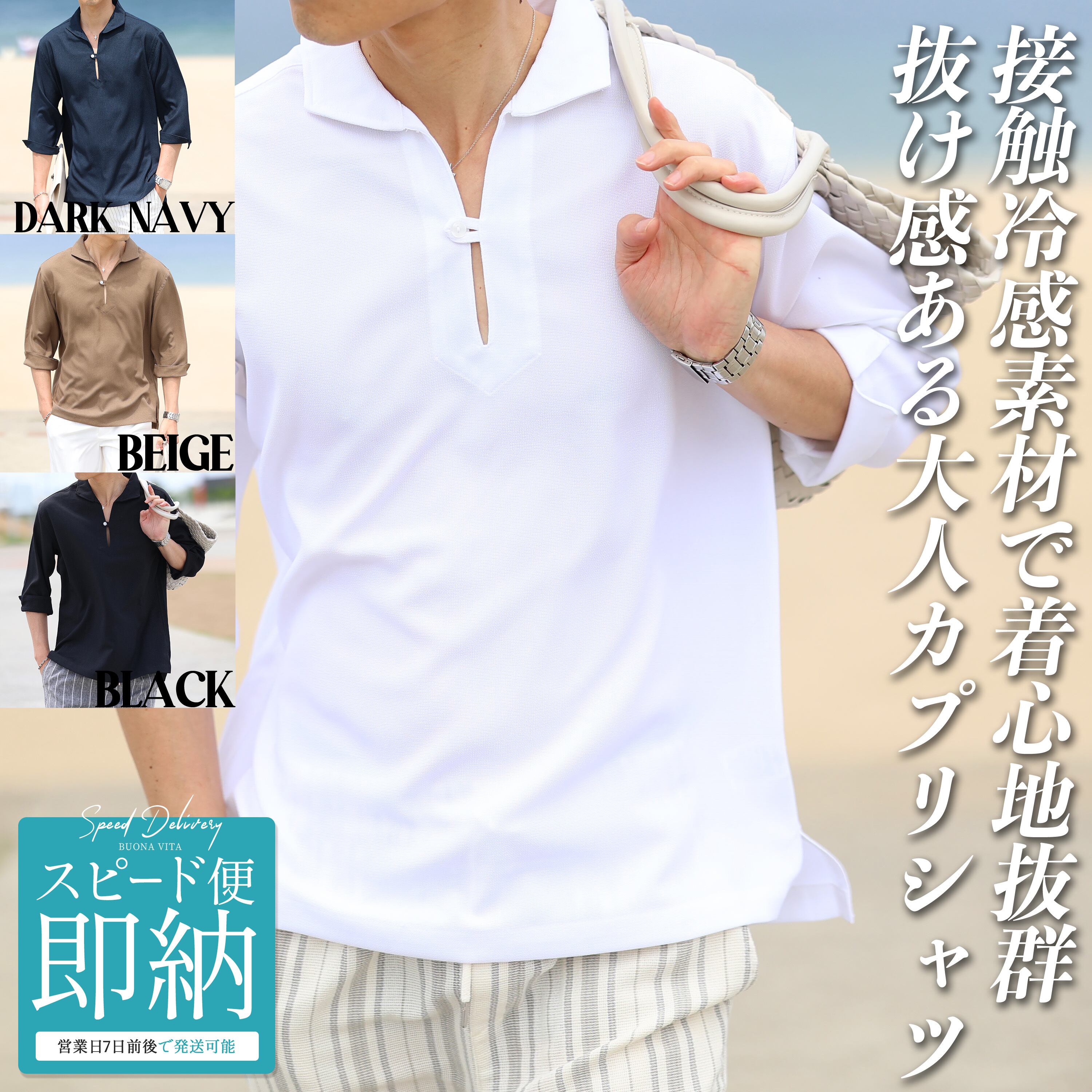 【即納】接触冷感7分袖パナマカプリシャツ 4色展開