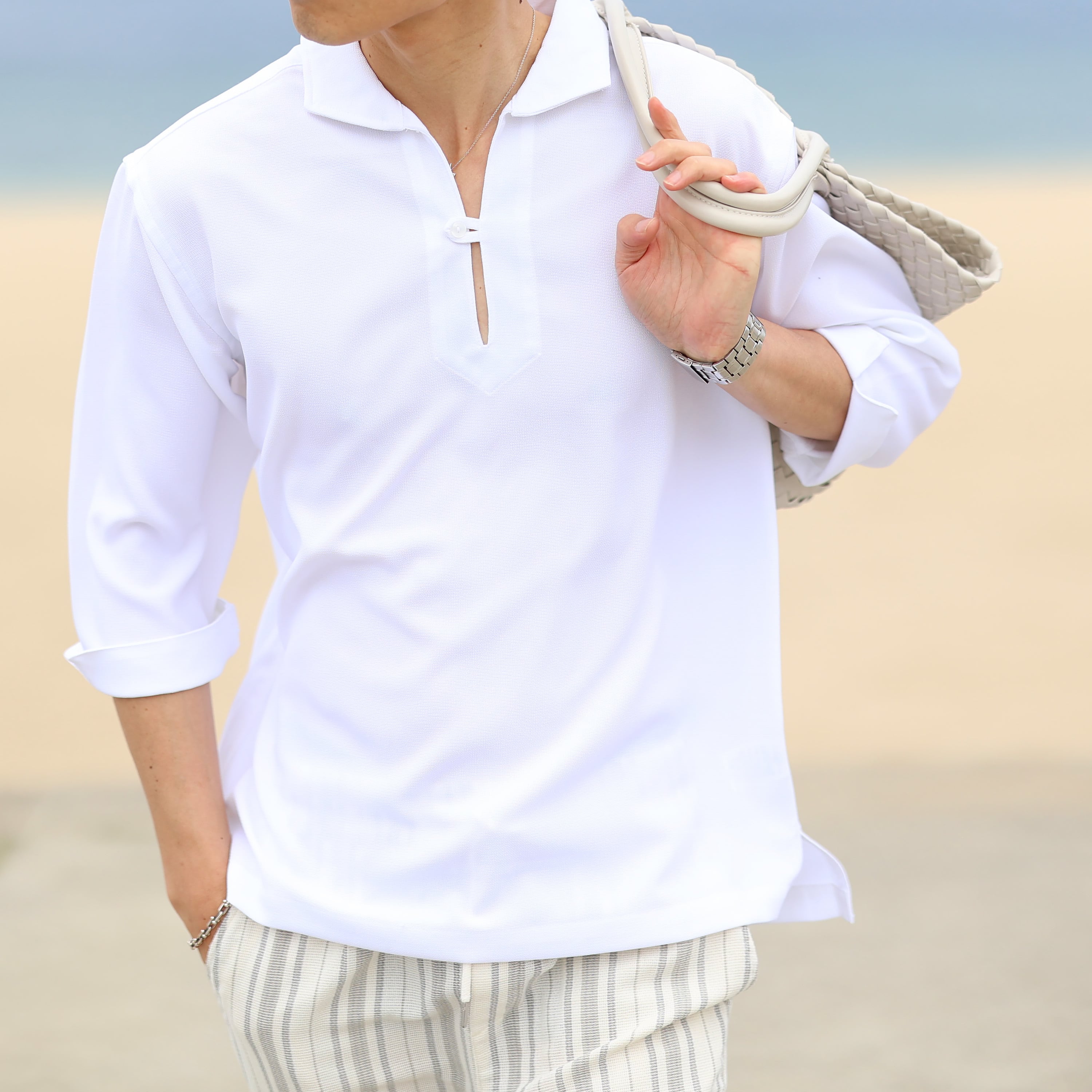 「接触冷感7分袖パナマカプリシャツ」が新登場!夏の暑さ対策にぴったりな素材で、一日中快適に着られます。天然素材のパナマ生地を使用し、高級感あるデザインも魅力的。普段使いから旅行、リゾートにもおすすめです。