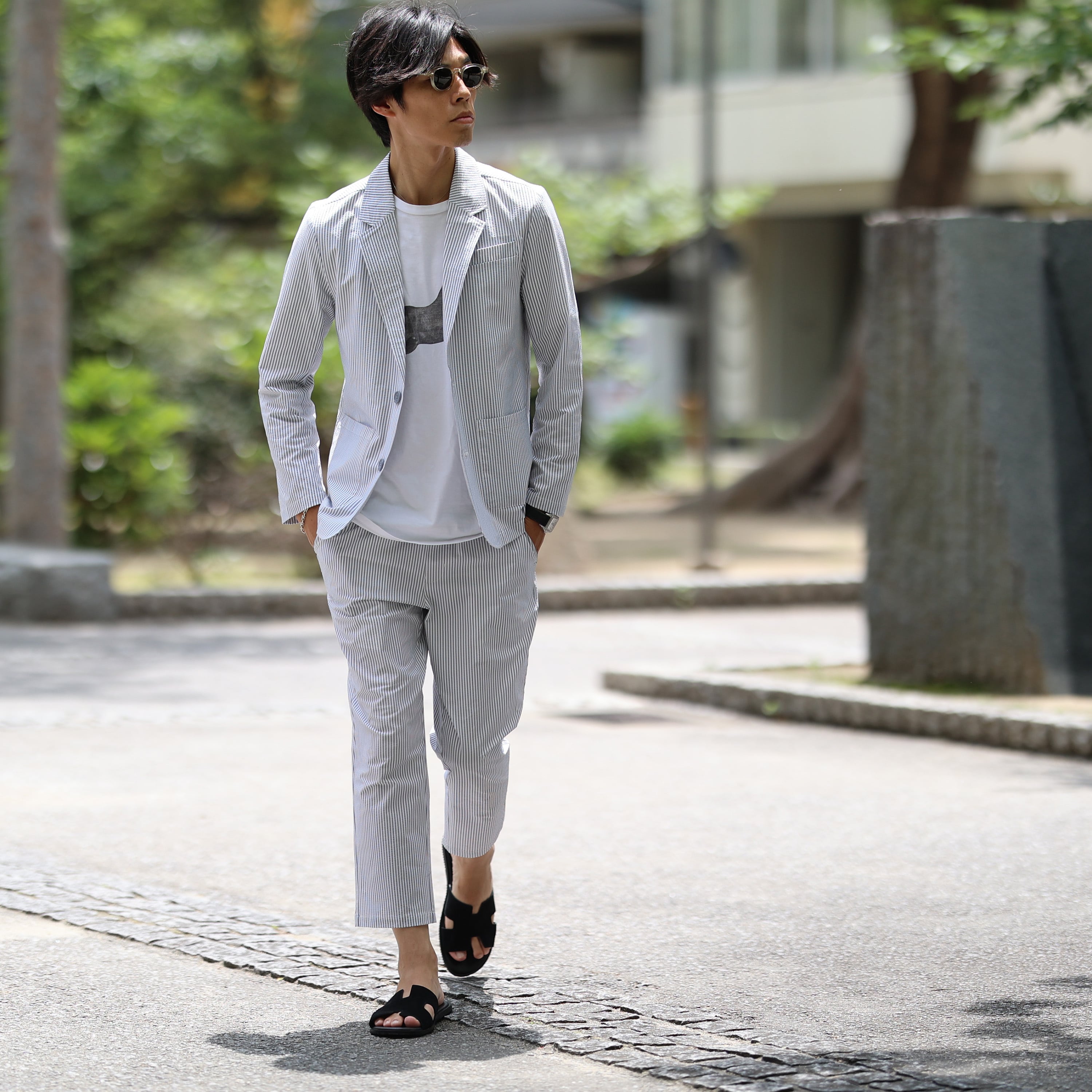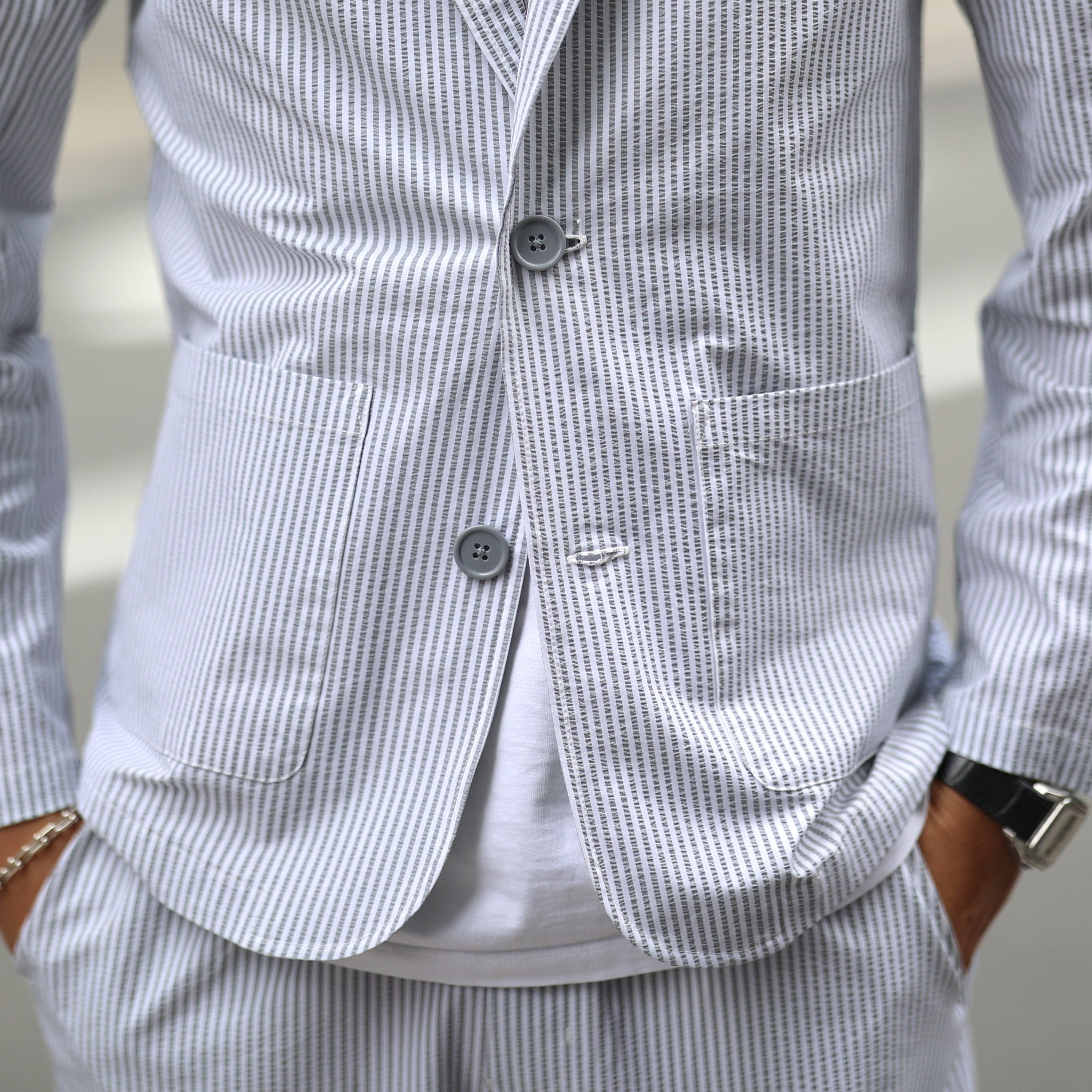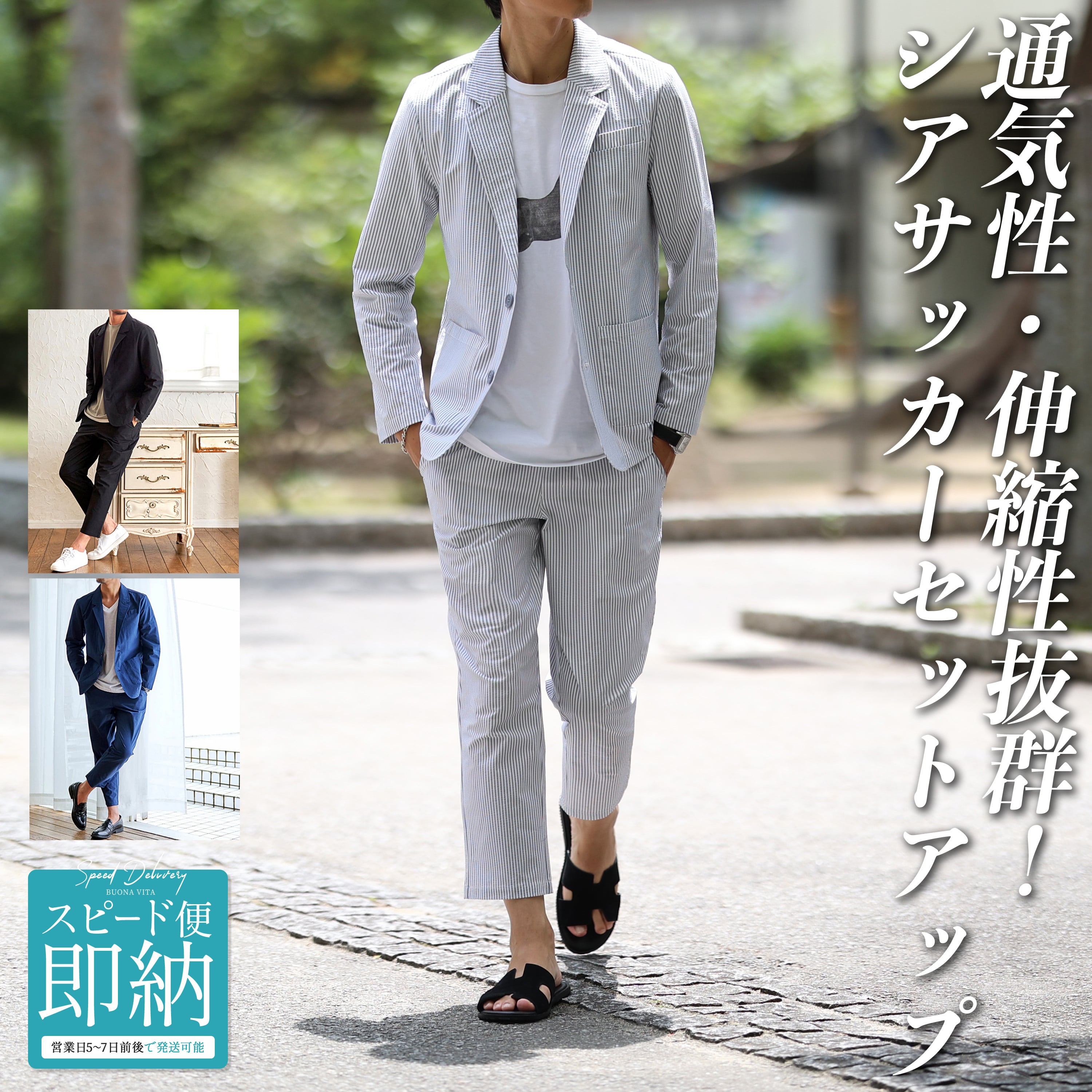 【グレーXL1点即納】(ストレッチ抜群!)シアサッカーシングルセットアップ