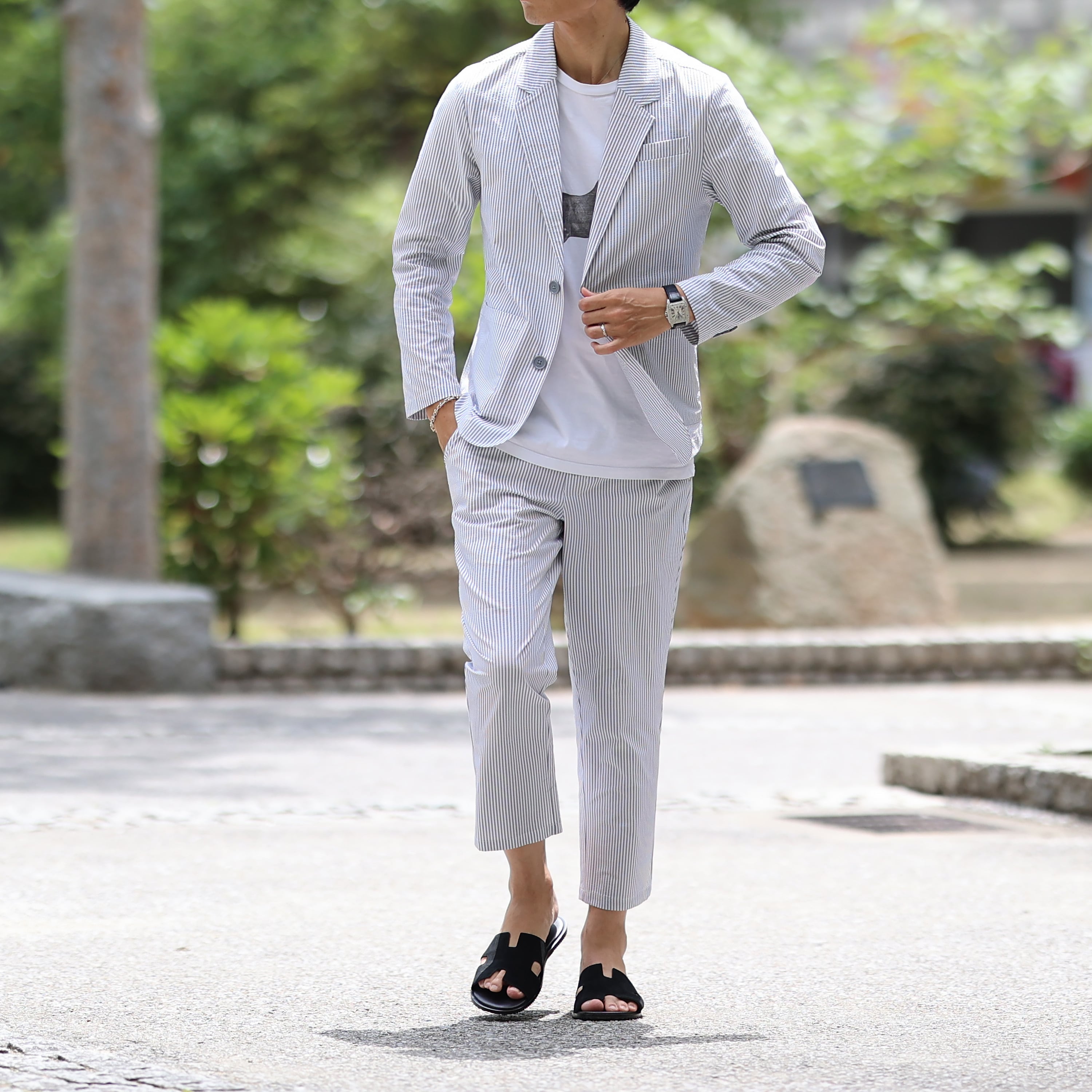 表面の凹凸が特徴的で通気性に優れたシアサッカー素材を採用。