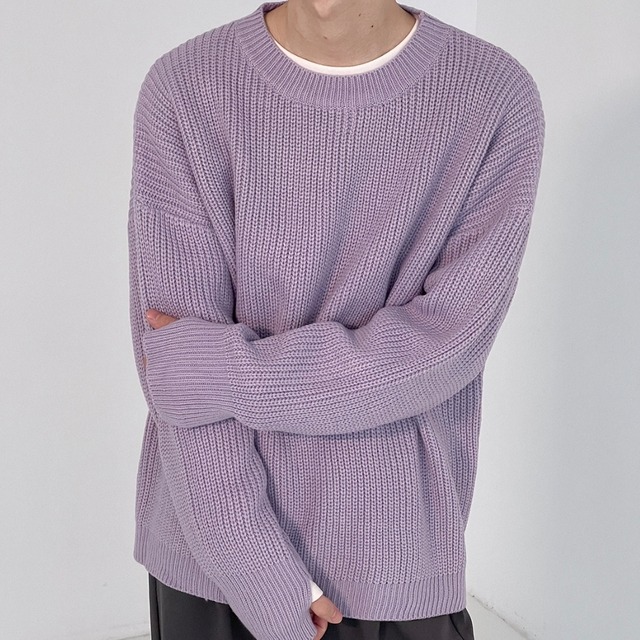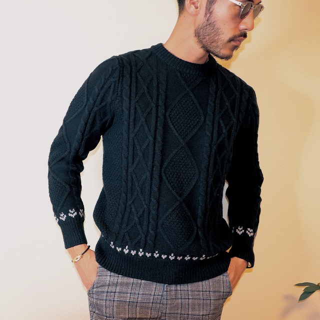 デザインケーブルラウンドネックニット 3色展開